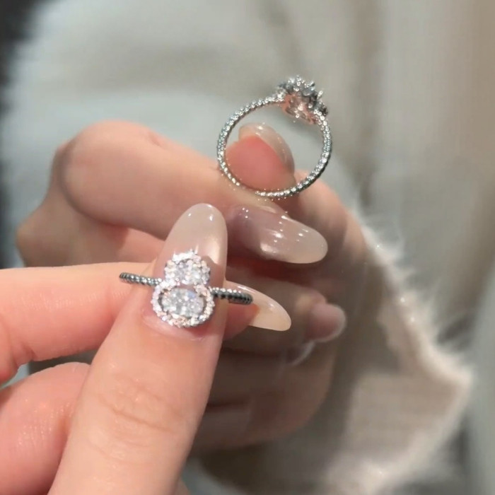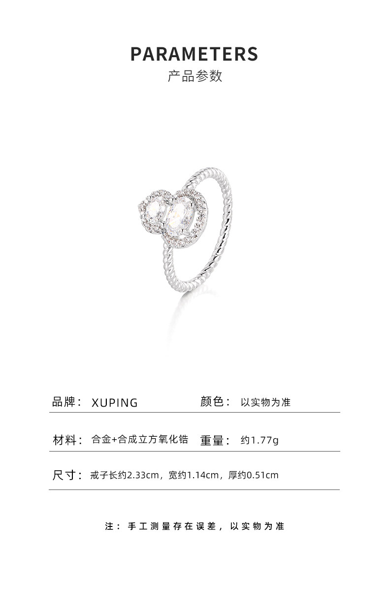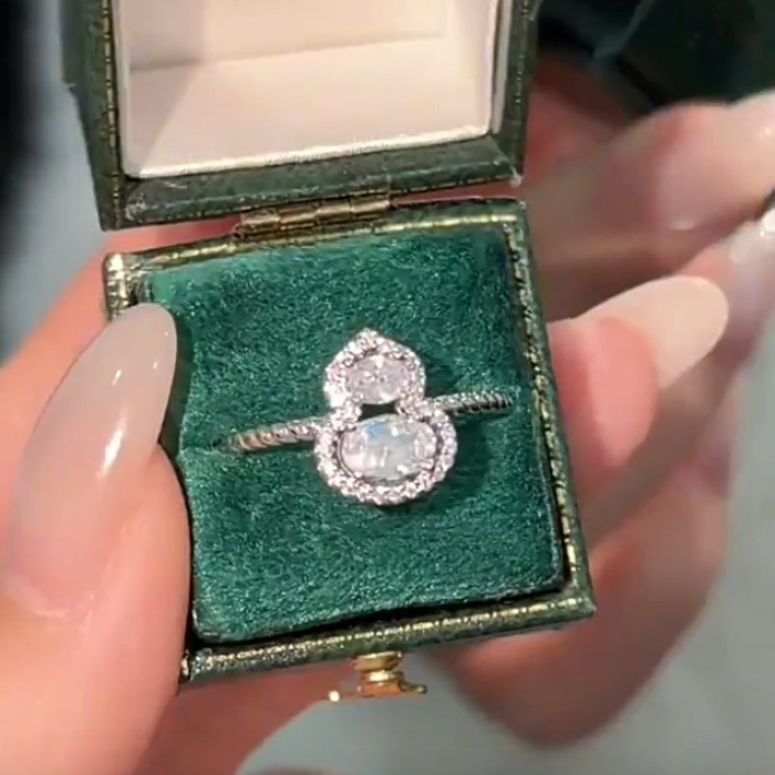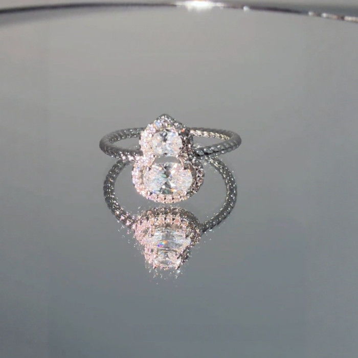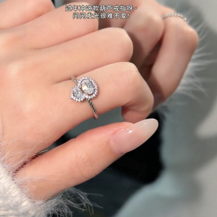 豔豔【清風徐來】葫蘆戒指新中式白色微鑲閃亮高級感氣質銀色戒子