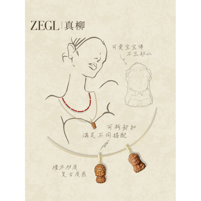 ZEGL寶寶彿系列檀木吊墜項鍊女秋冬長款毛衣鏈小衆復古曡戴鎖骨鍊