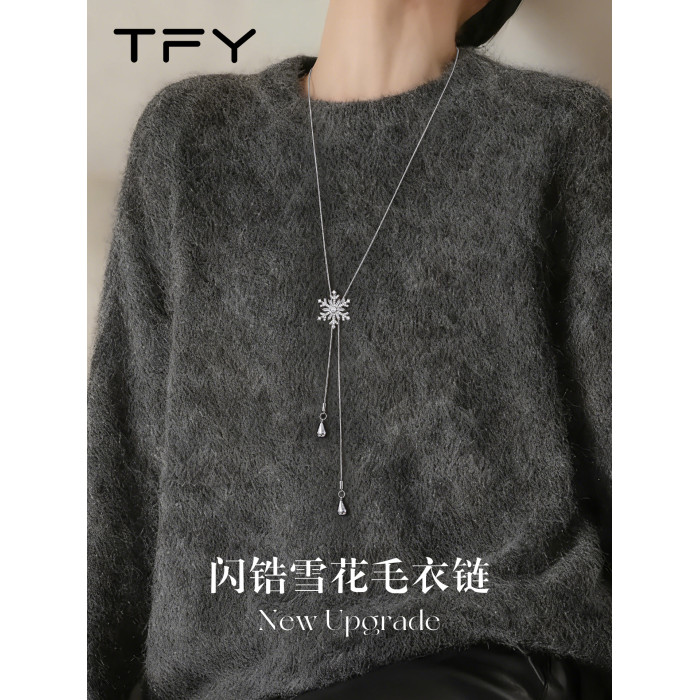 冬季雪花毛衣掛飾項鍊女輕奢精緻大氣高級感秋冬百搭不掉色毛衣鏈