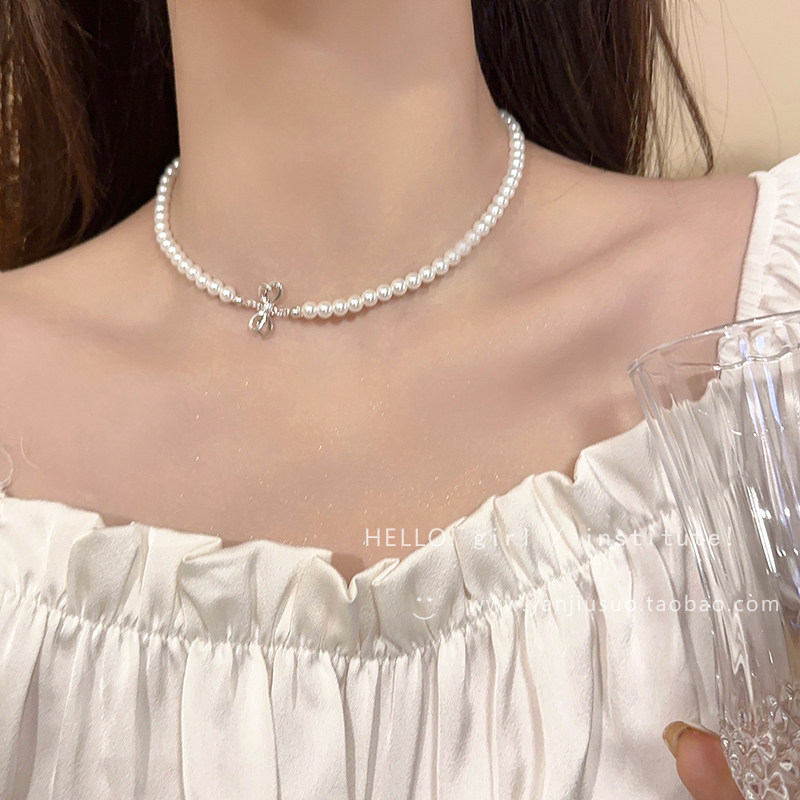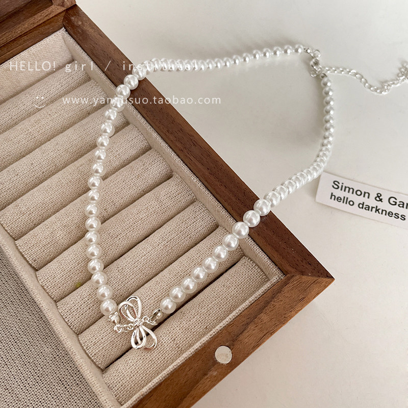 溫柔蝴蝶珍珠項鍊配裙子女輕奢小衆高級感鎖骨鍊2025新款頸鏈配飾