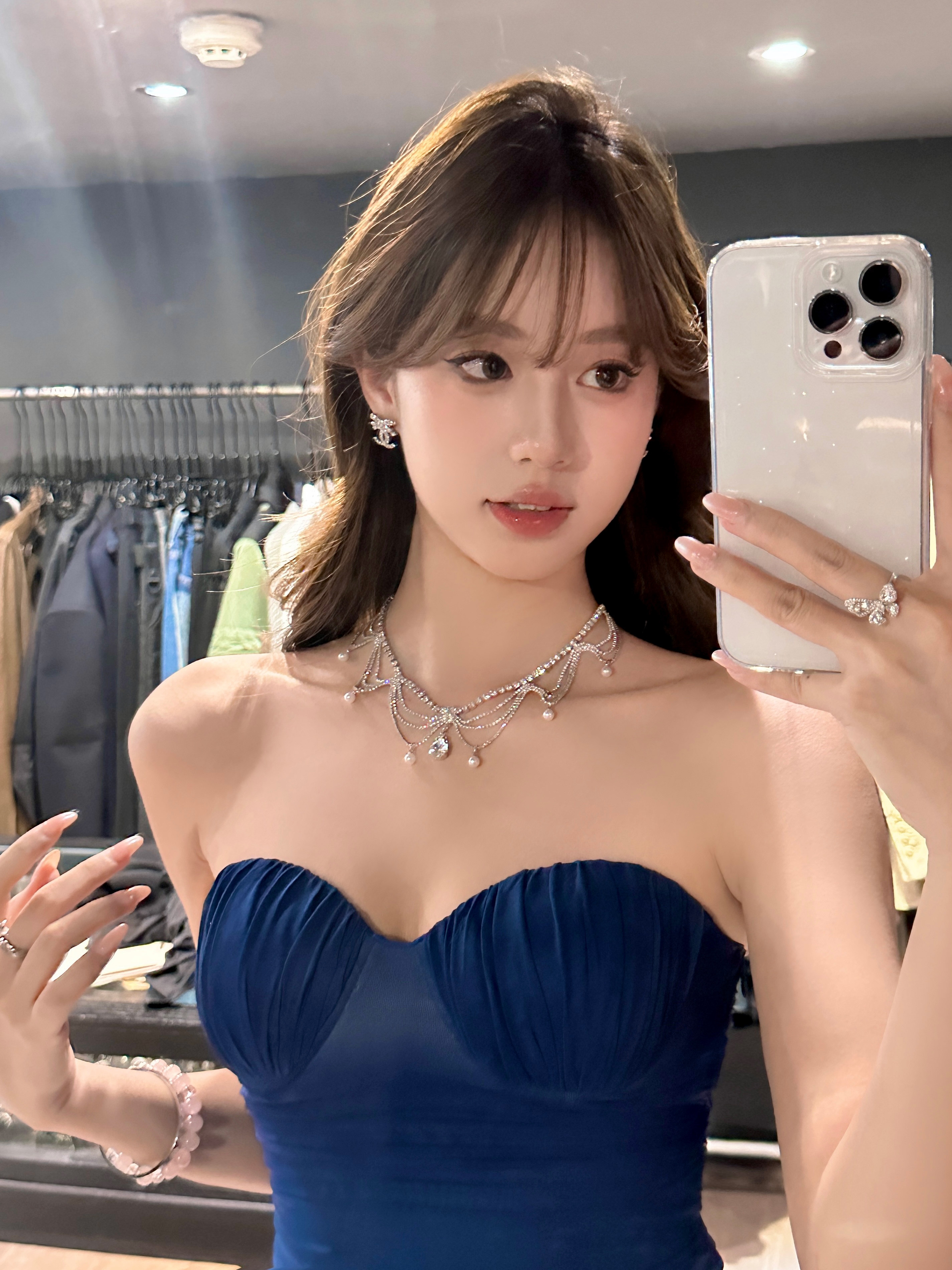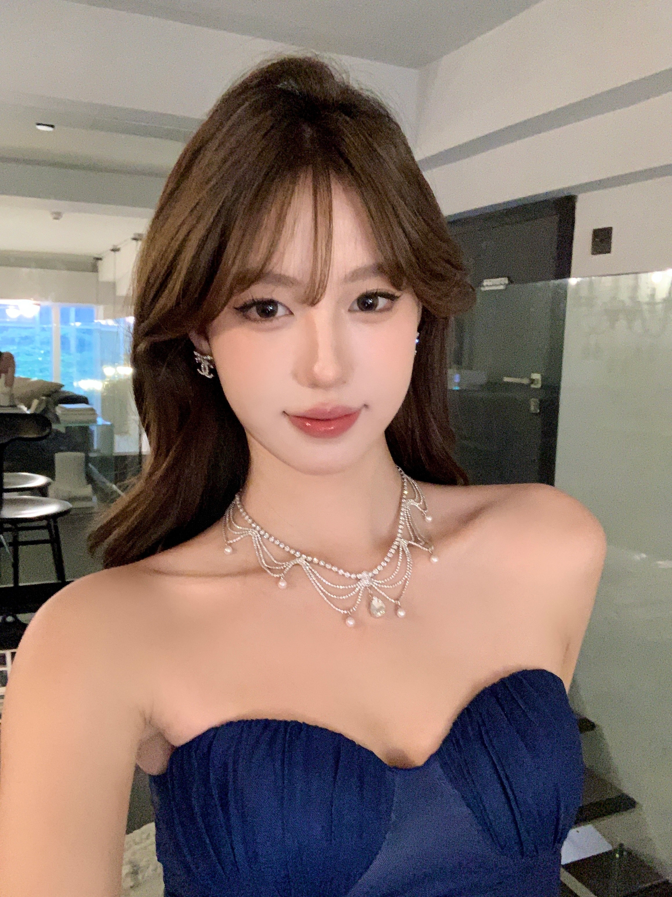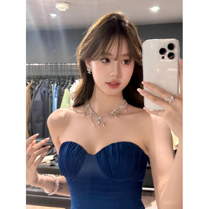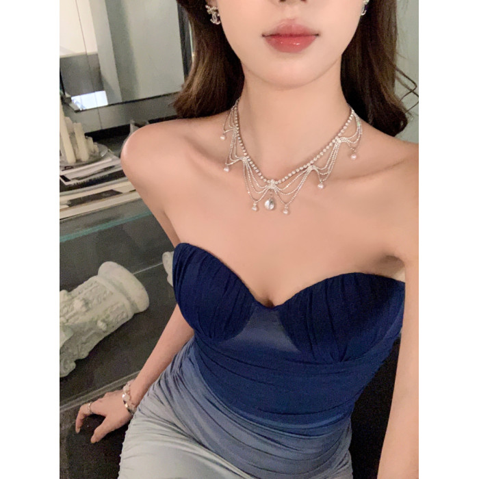 【蜜桃茶】晚宴公主 銀色水滴珍珠項鍊高級感宴會晚禮服頸鏈配飾