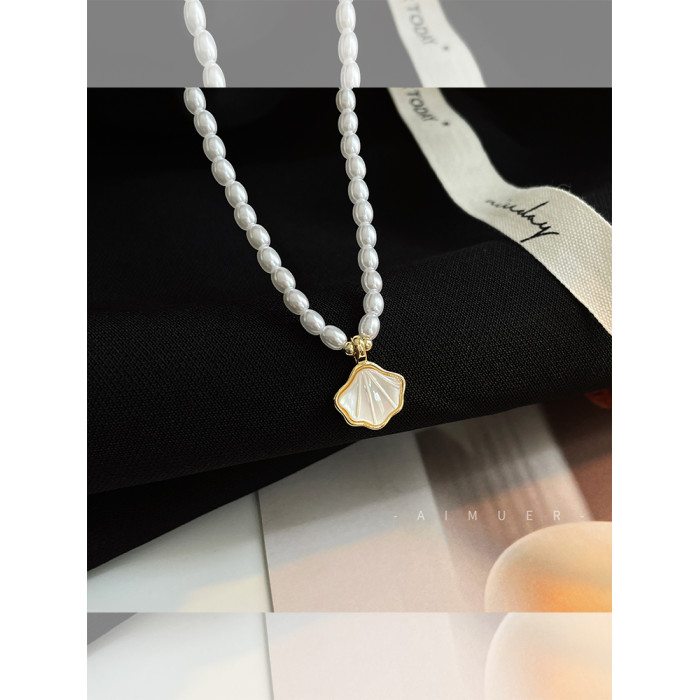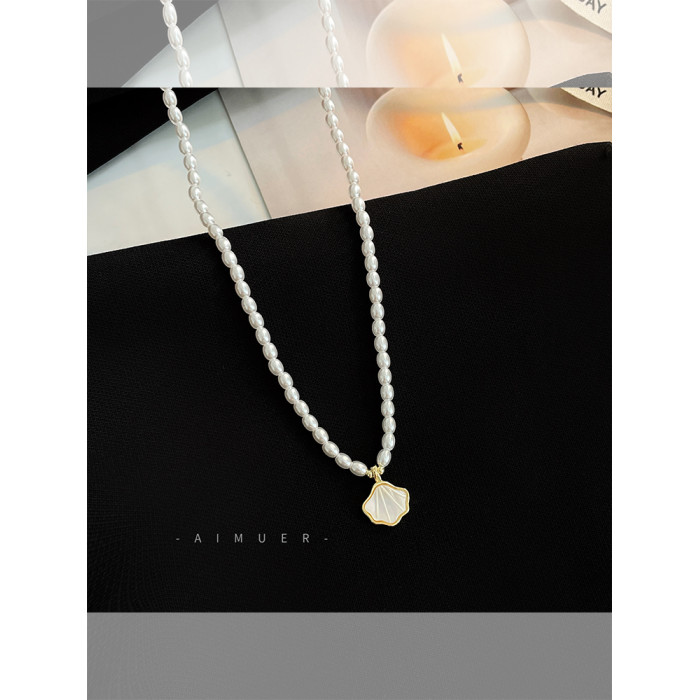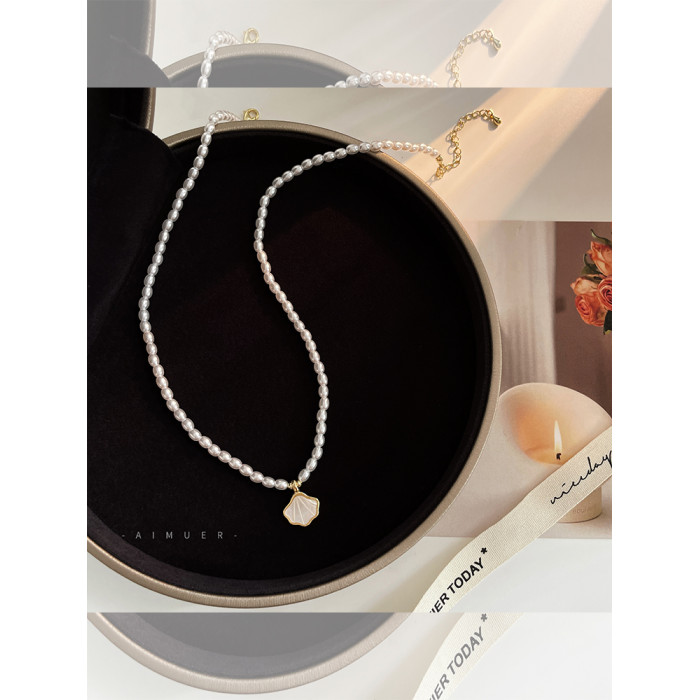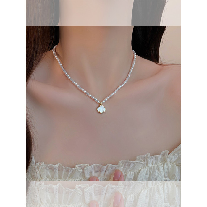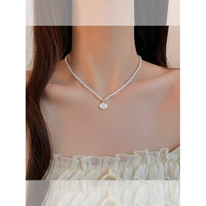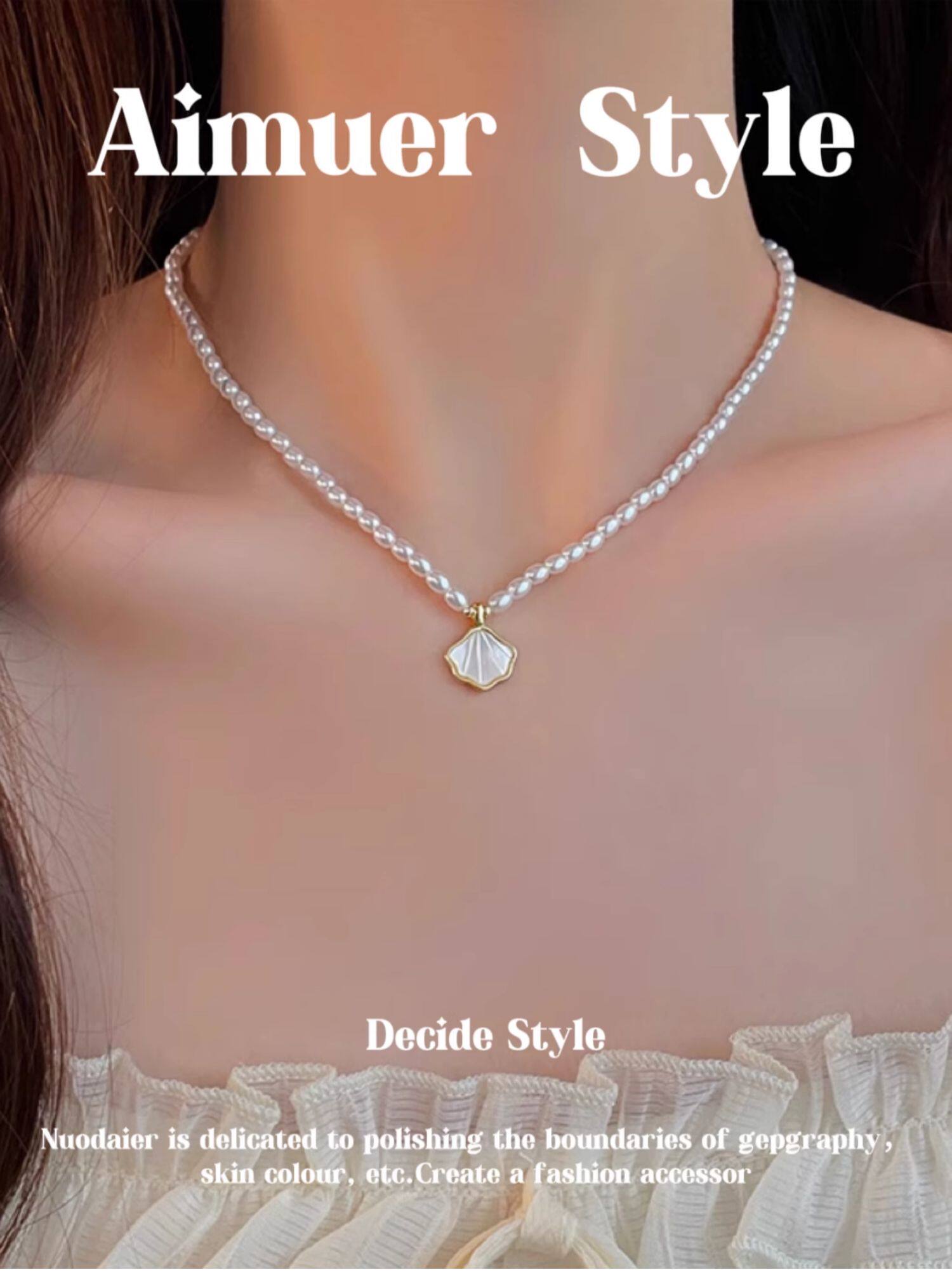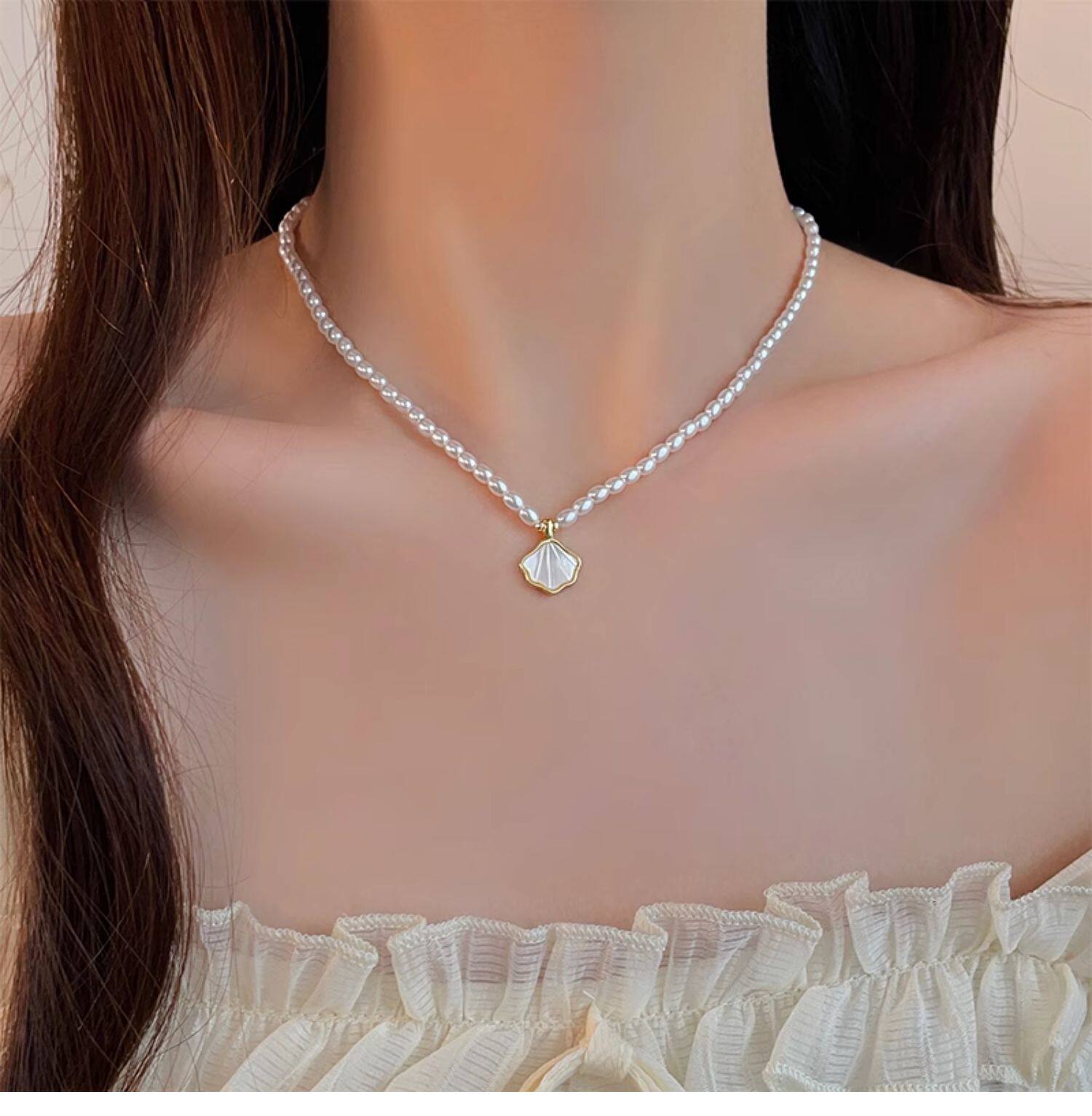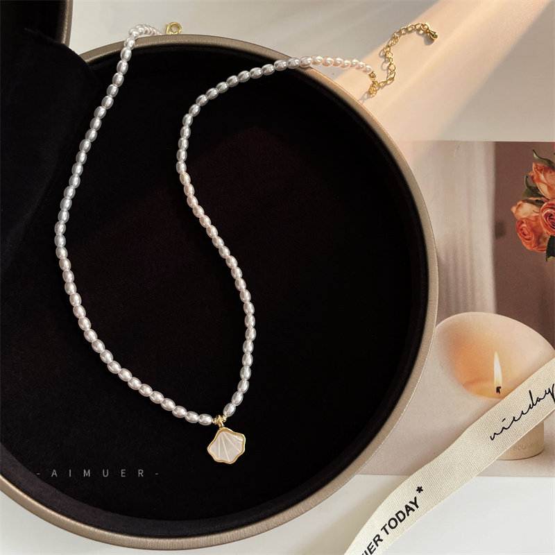 優雅氣質貝殼珍珠項鍊女百搭精緻溫柔風小米珠鎖骨鍊頸鏈新款配飾