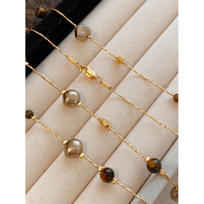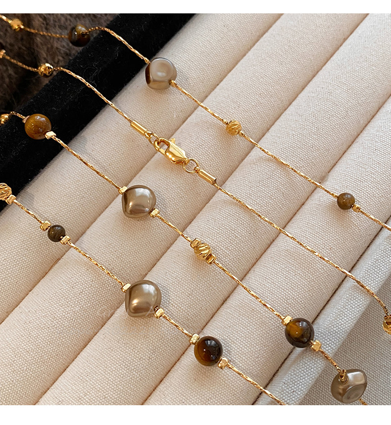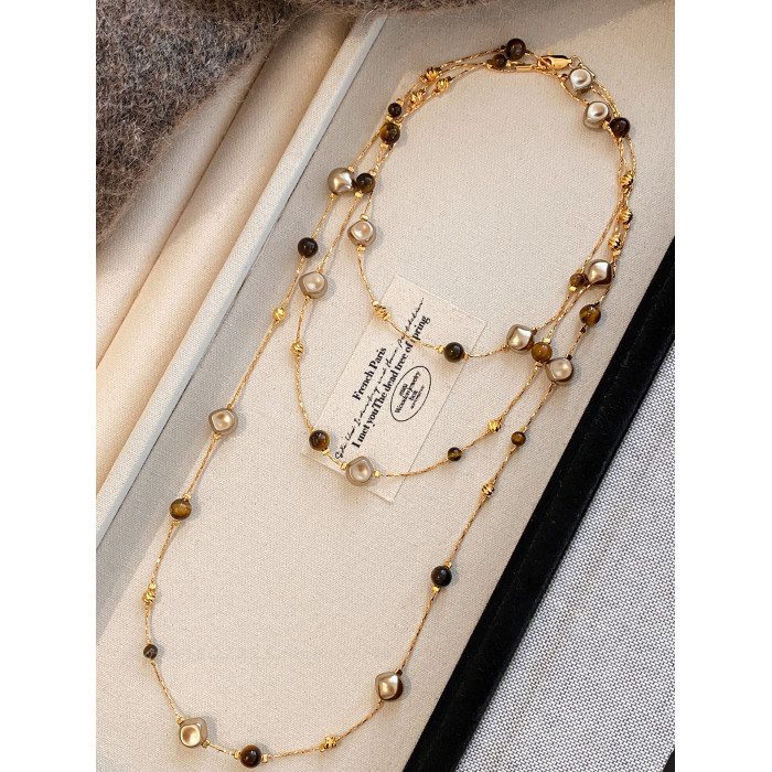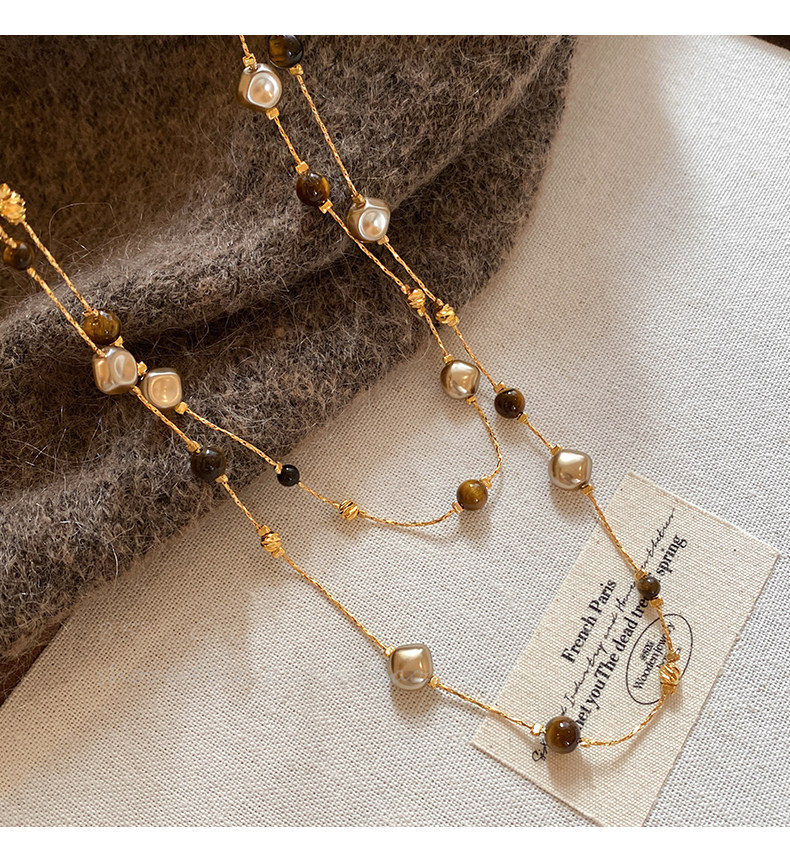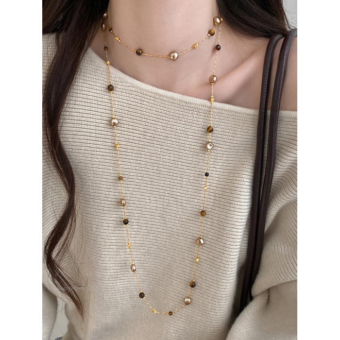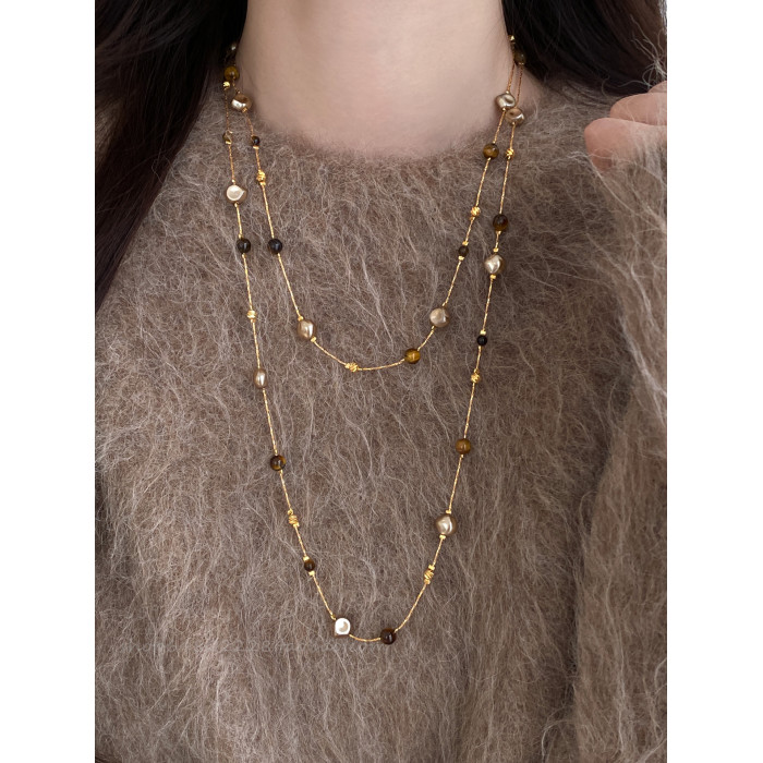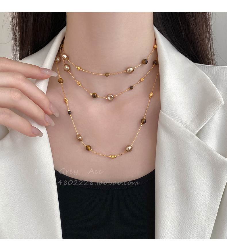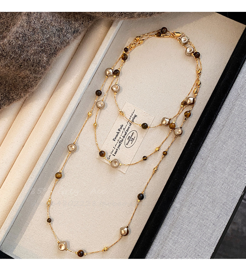美拉德虎眼石珍珠項鍊女秋冬季2025爆款百搭輕奢高級感長款毛衣鏈