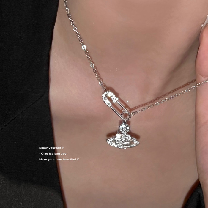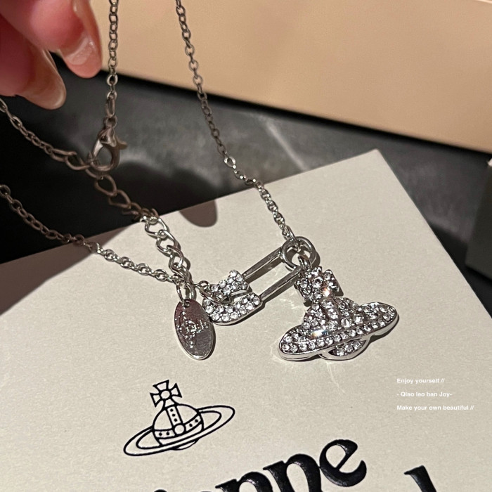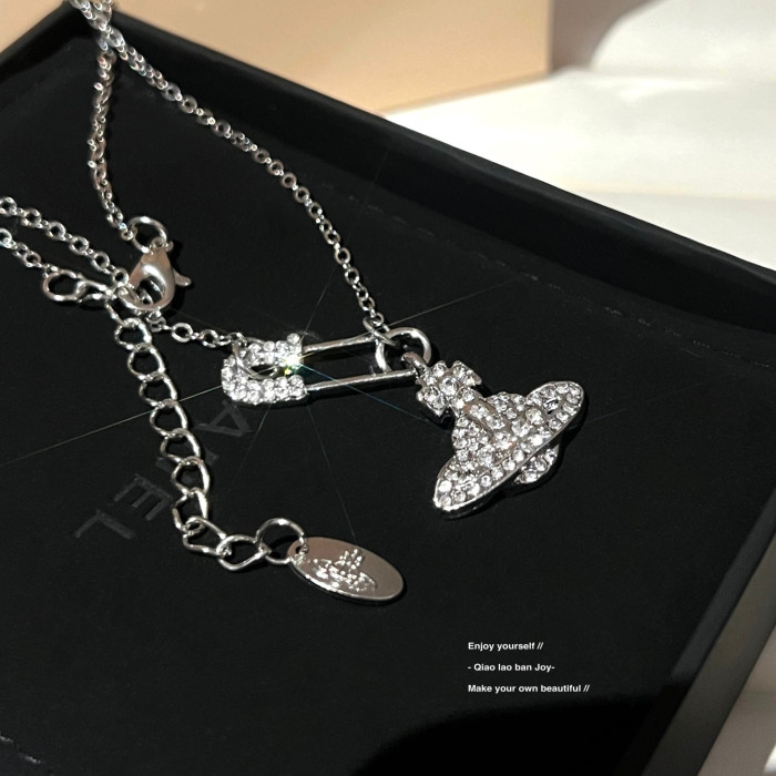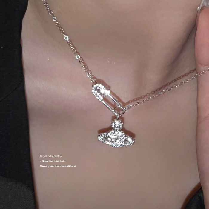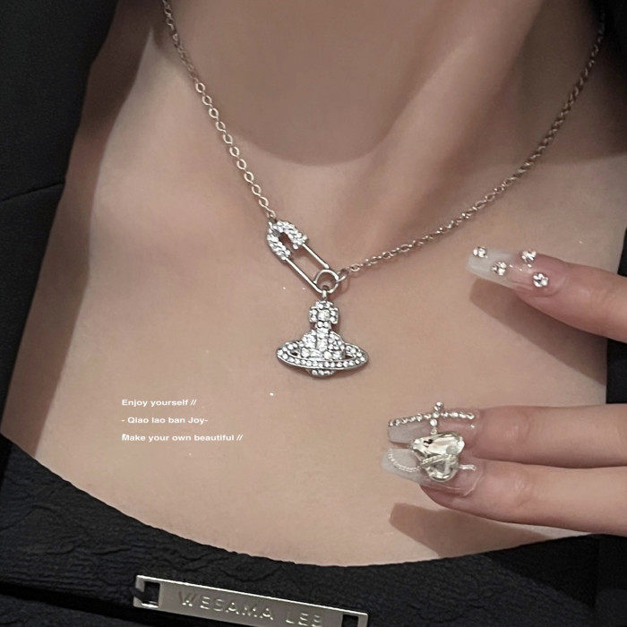 【喬老板Joy】土星別針項鍊銀色鎖骨西太後閃鑽甜酷小衆設計感潮