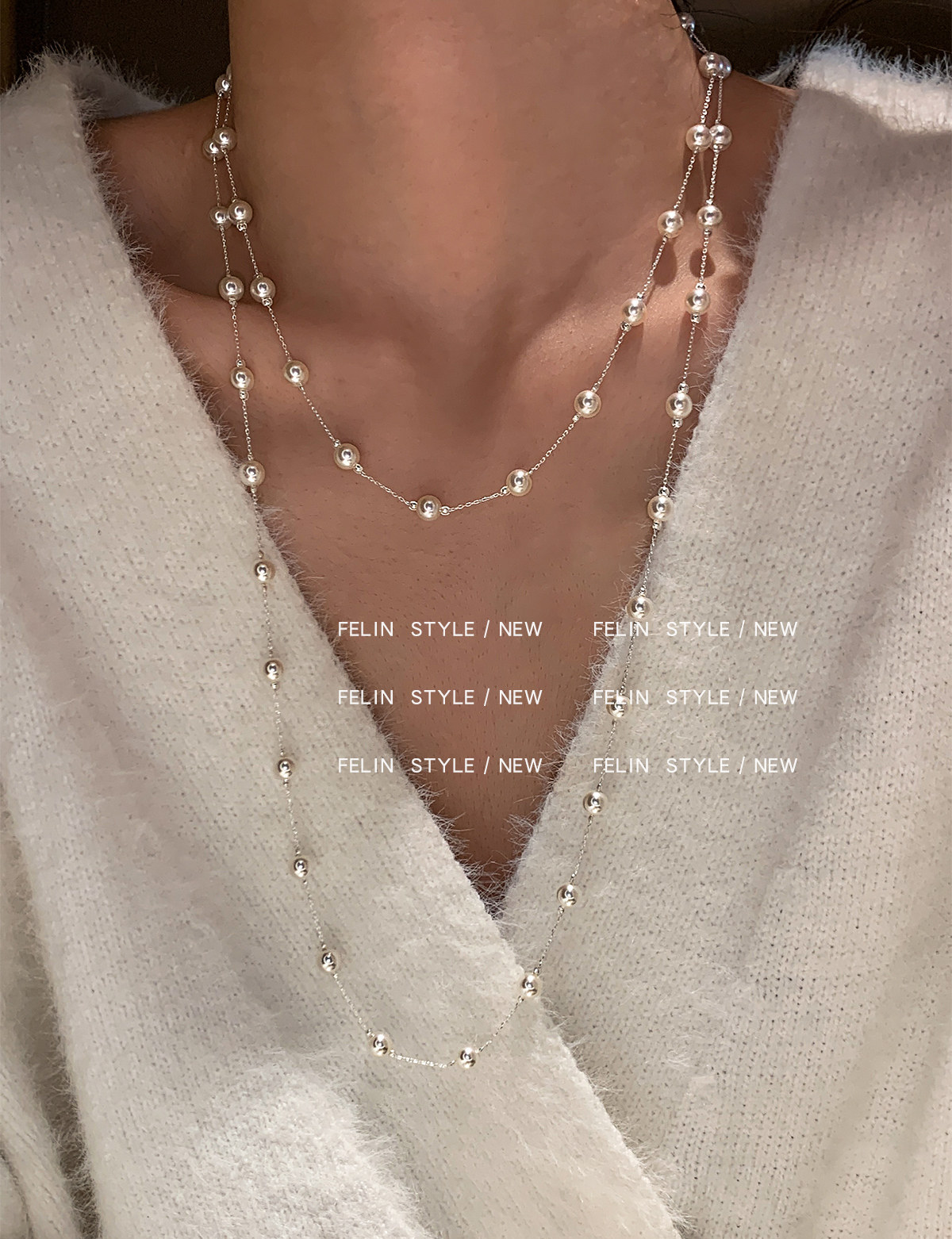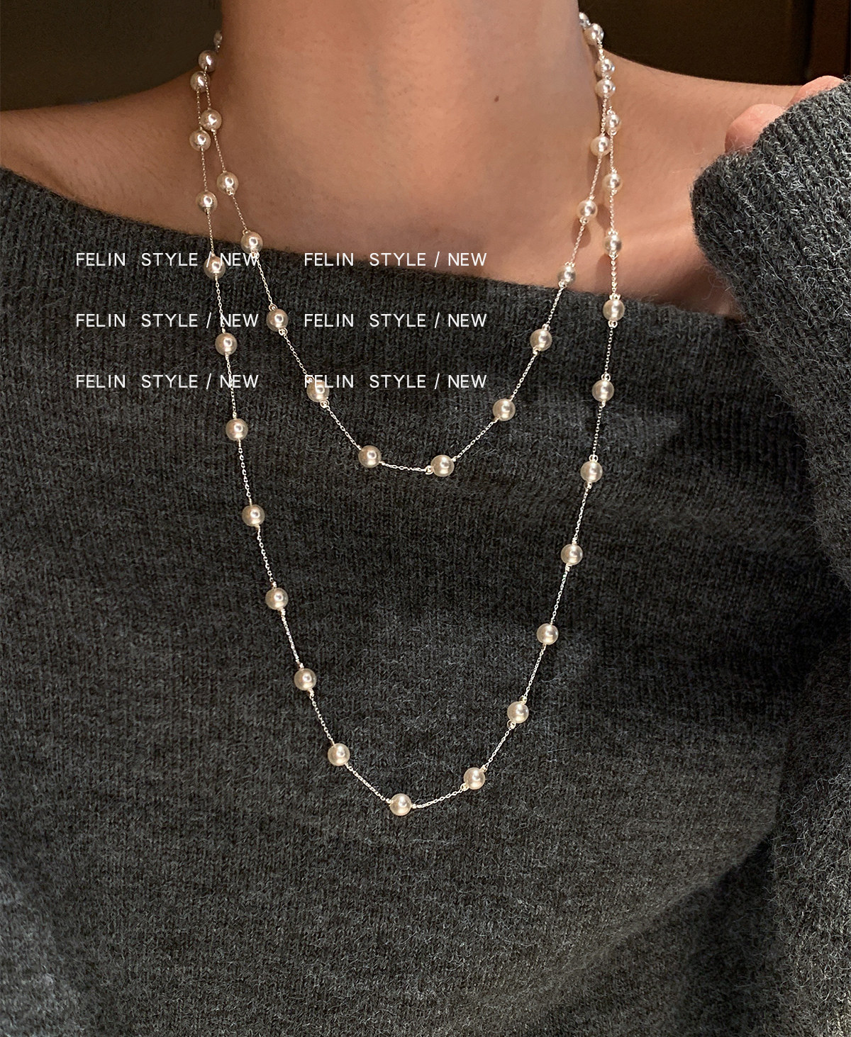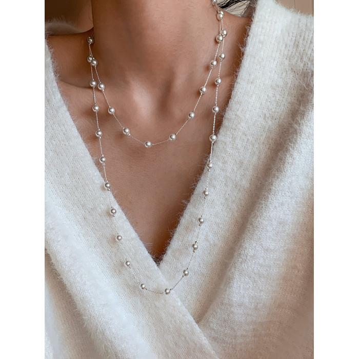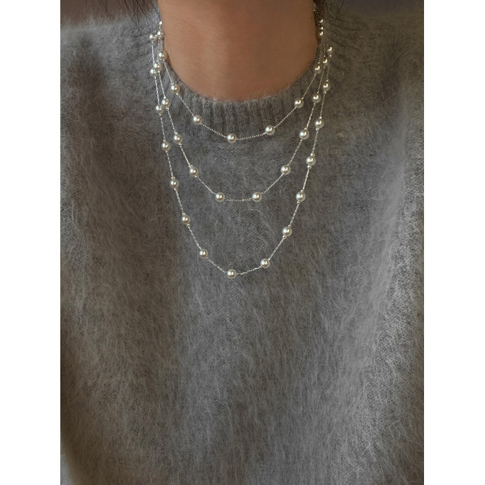 S家滿天星珍珠項鍊女頸鏈配飾長款曡戴高級感輕奢小衆絕美毛衣鏈