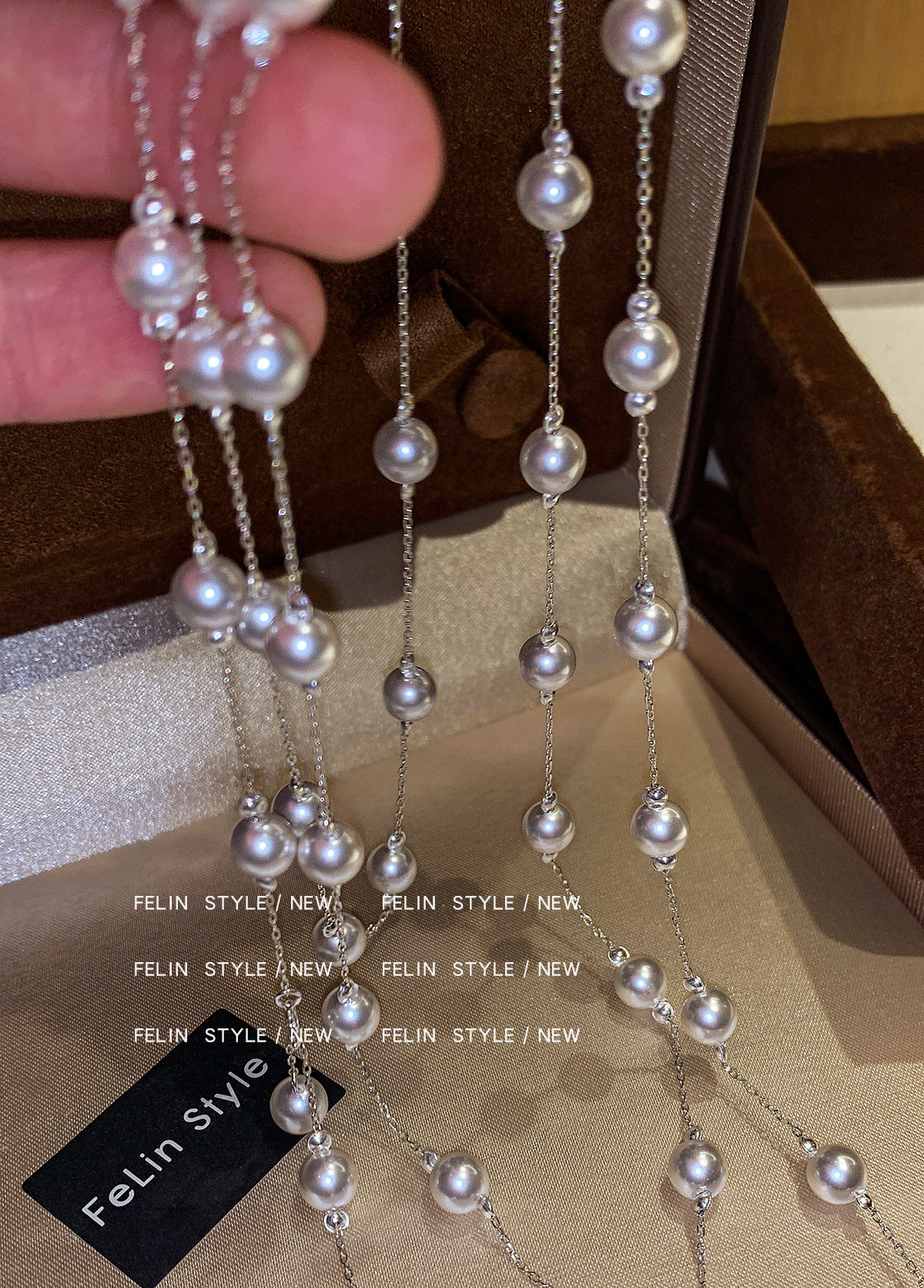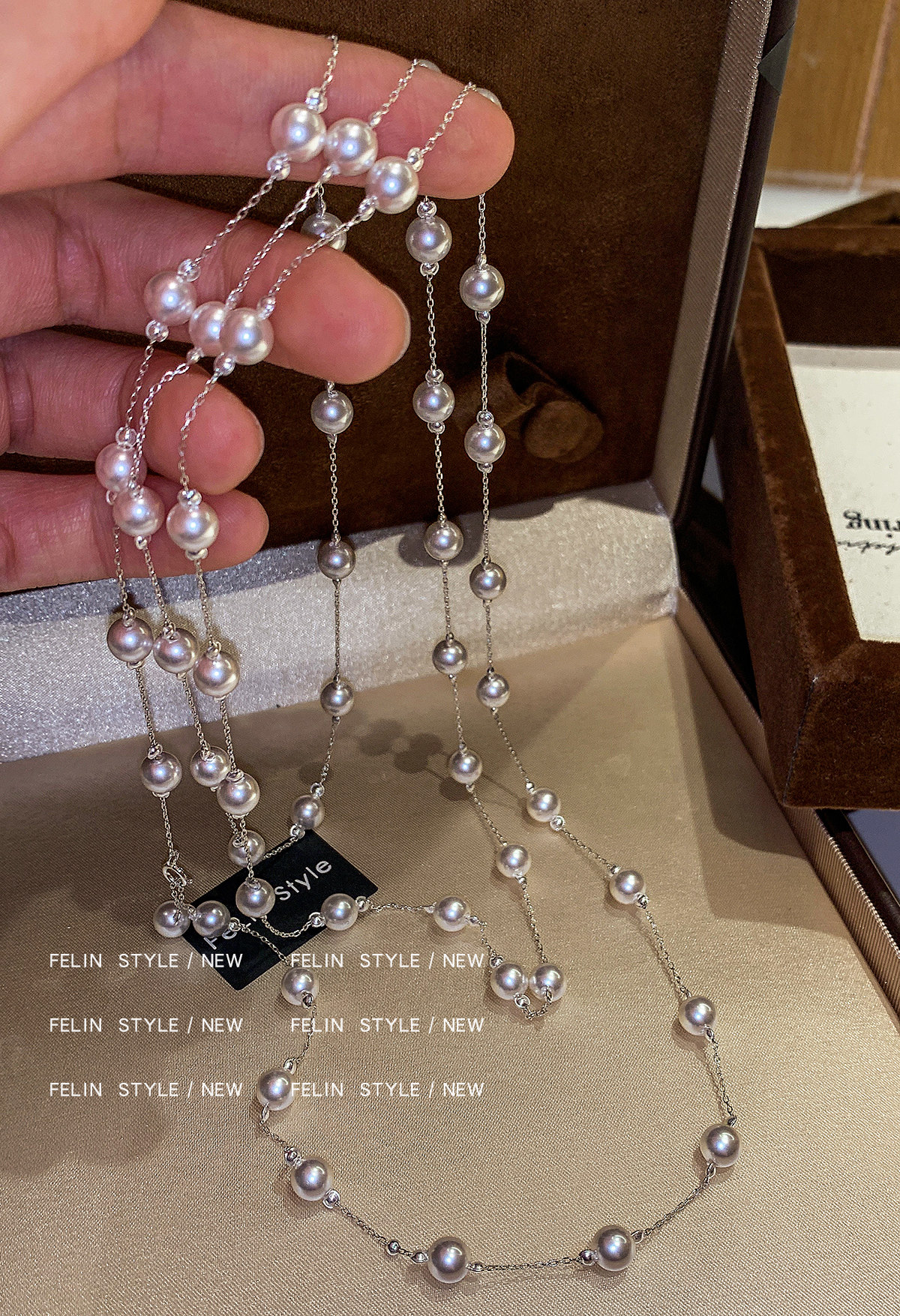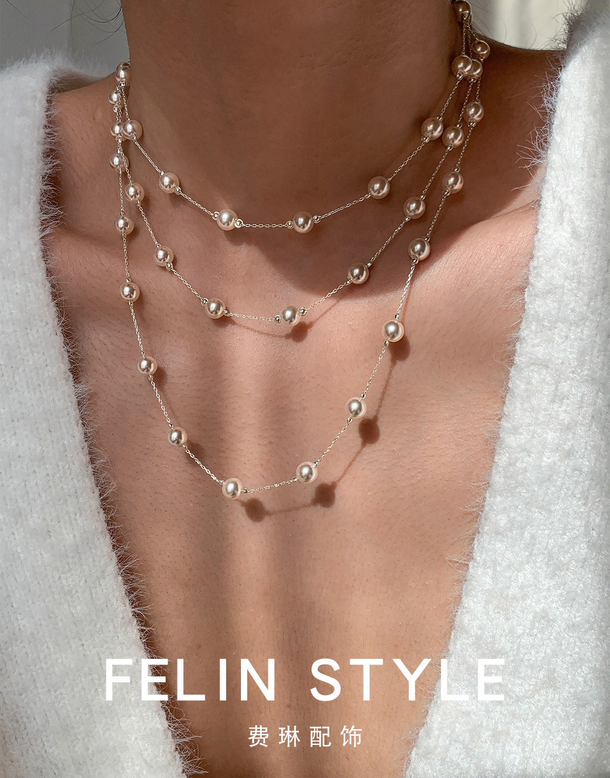 S家滿天星珍珠項鍊女頸鏈配飾長款曡戴高級感輕奢小衆絕美毛衣鏈