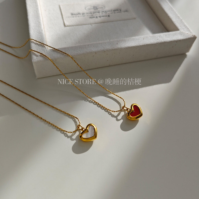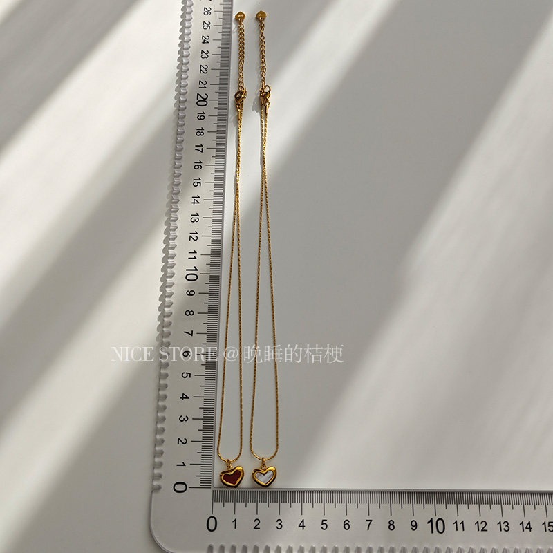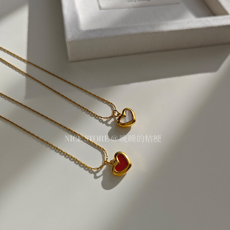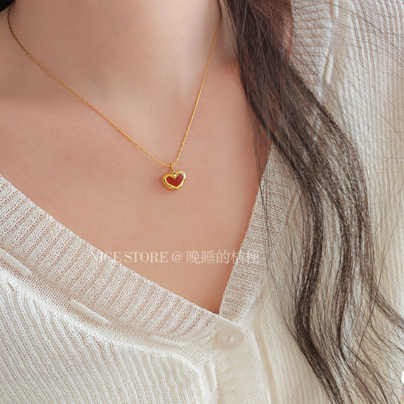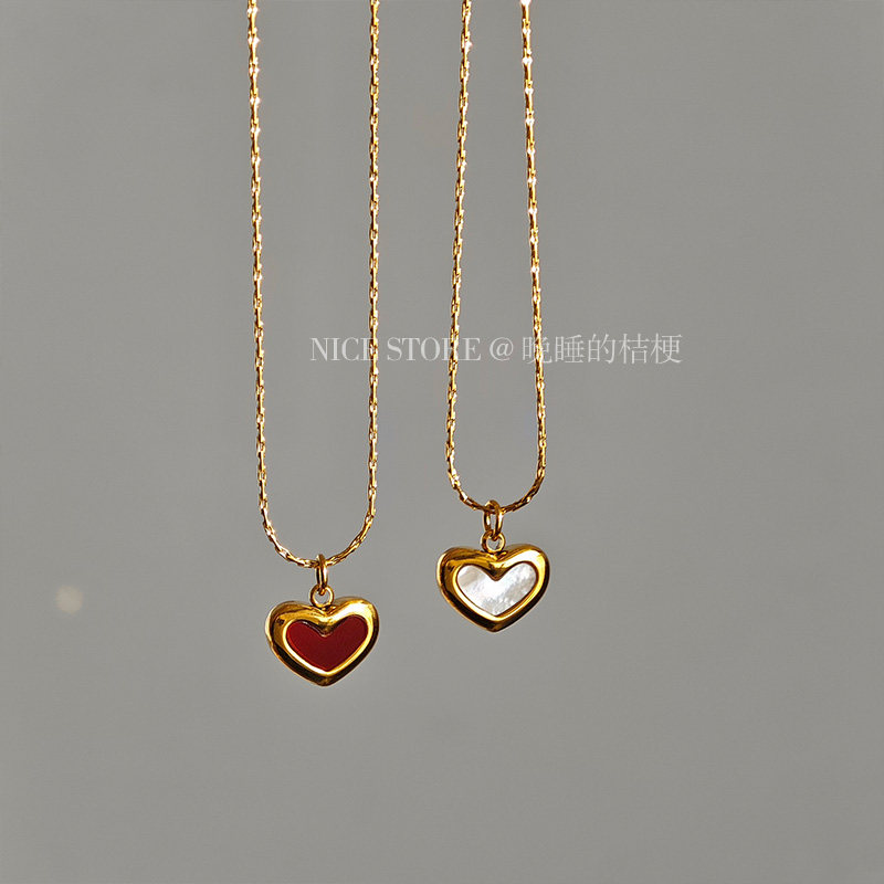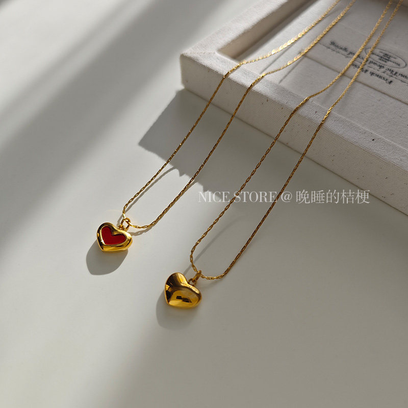 晚睡的桔梗「復興戀詩」日韓紅色愛心吊墜鈦鋼項鍊雙面桃心鎖骨鍊