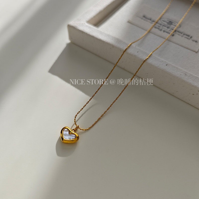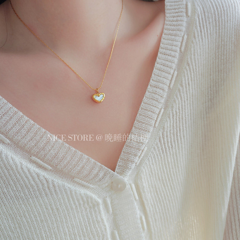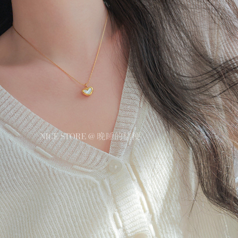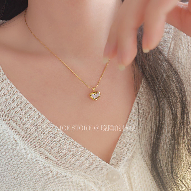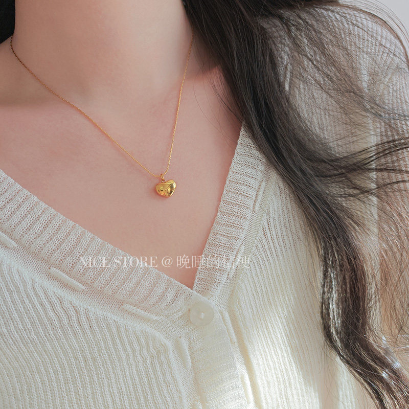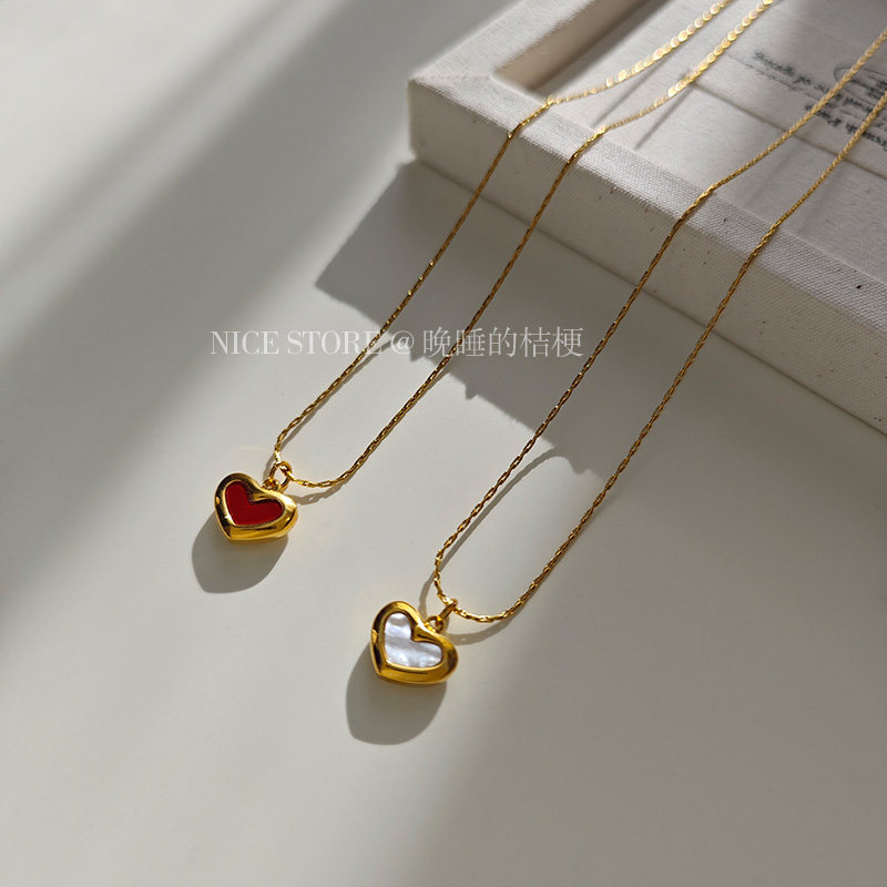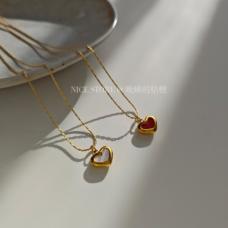 晚睡的桔梗「復興戀詩」日韓紅色愛心吊墜鈦鋼項鍊雙面桃心鎖骨鍊