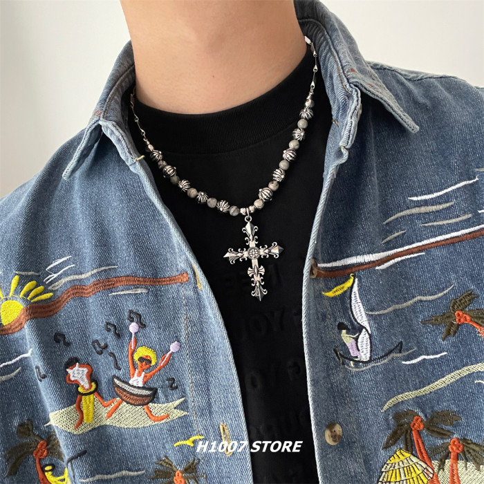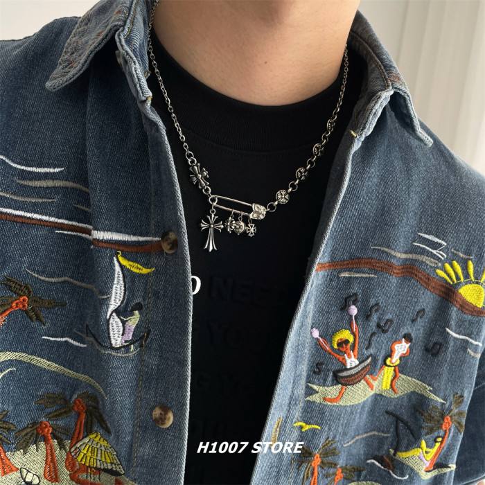 美式嘻哈風克克十字花男款項鍊女小衆設計鎖骨鍊高級感毛衣鏈配飾