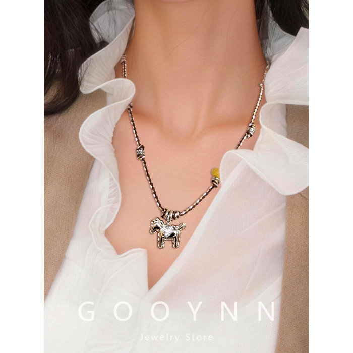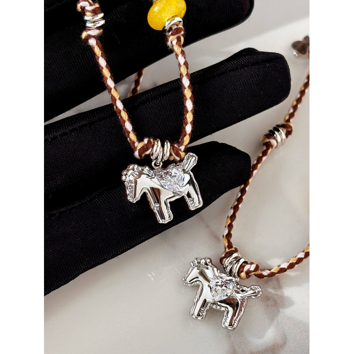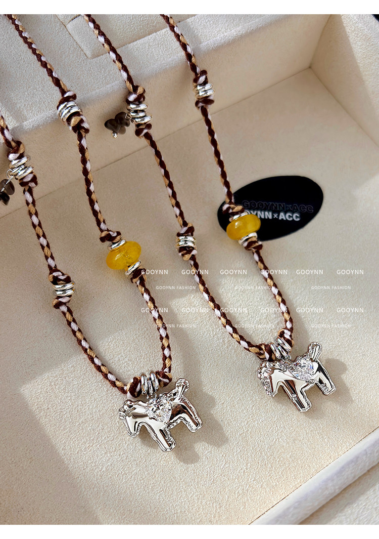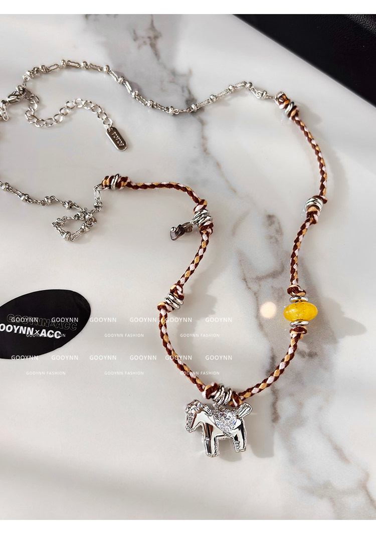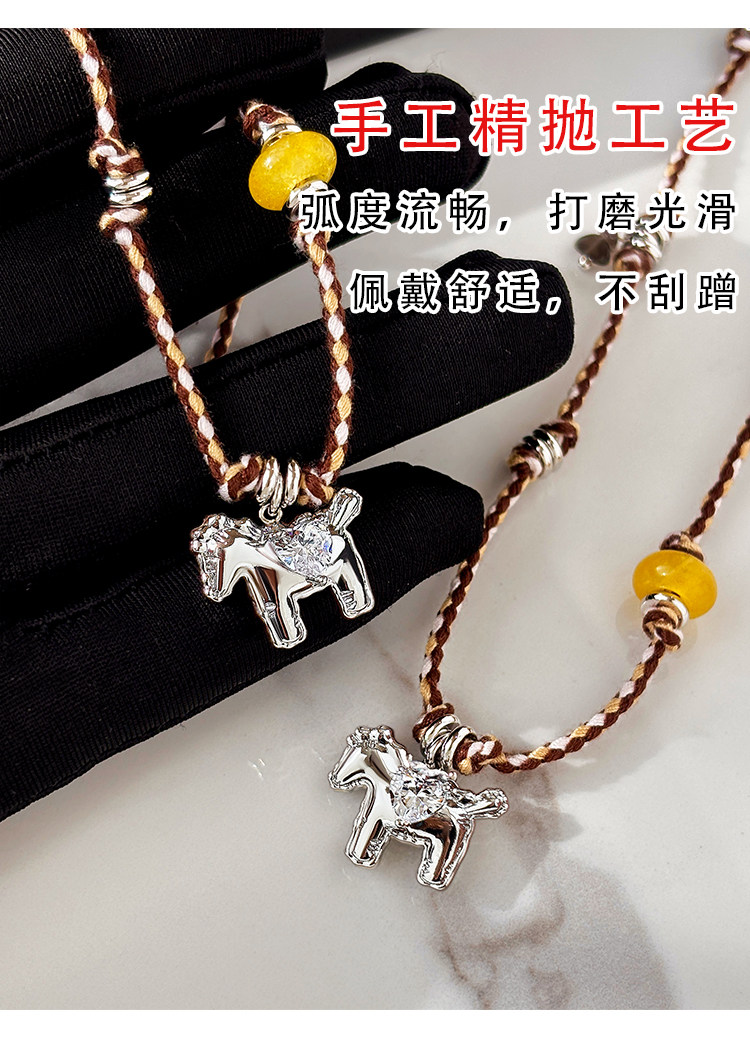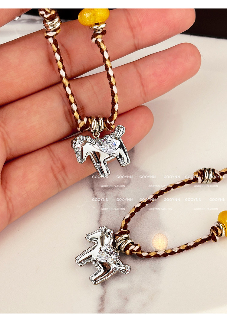 民族風復古編織繩小馬項鍊女款高級感輕奢小衆銀色吊墜鎖骨毛衣鏈