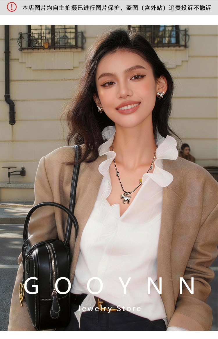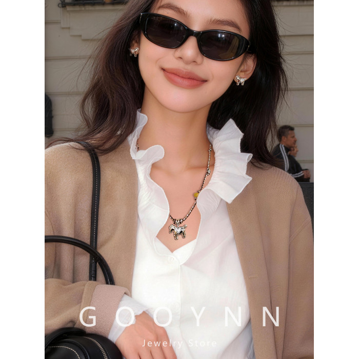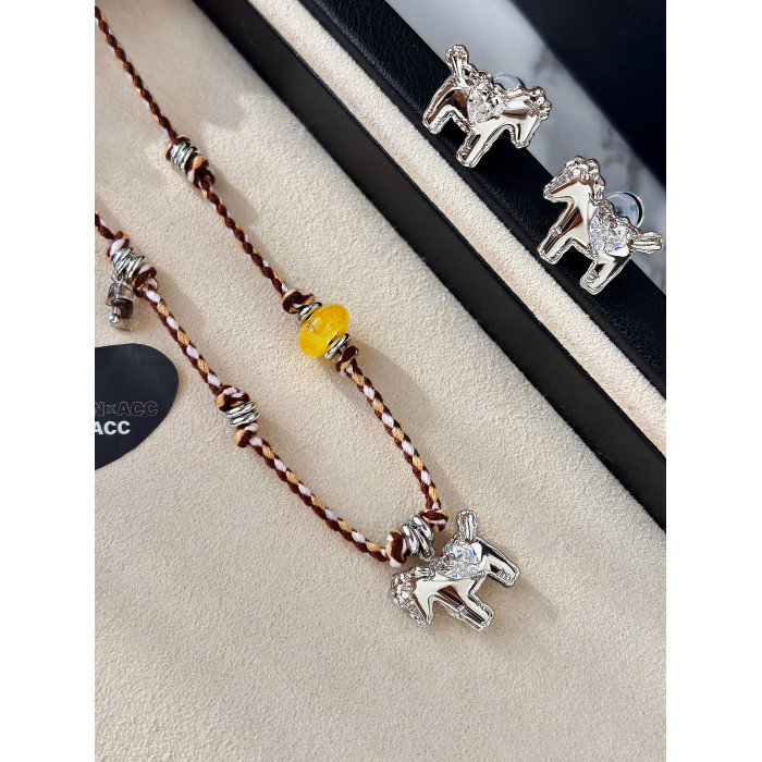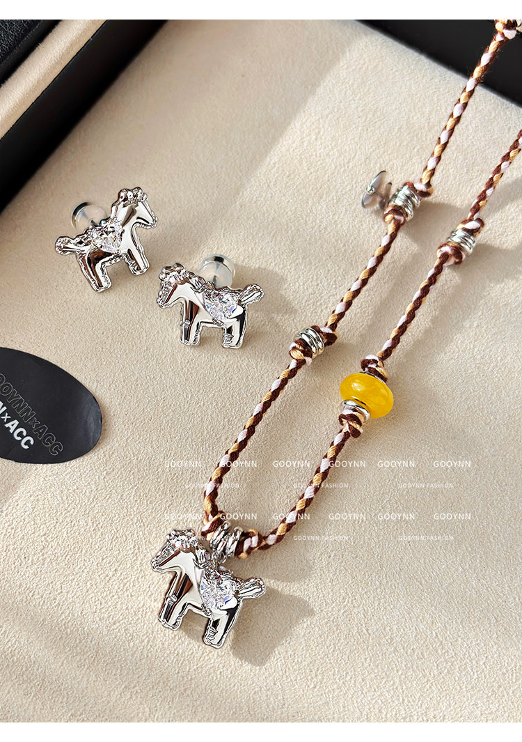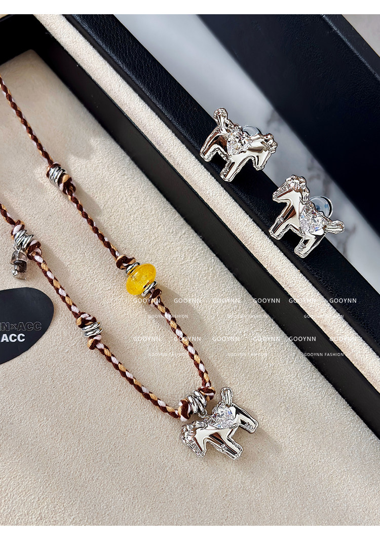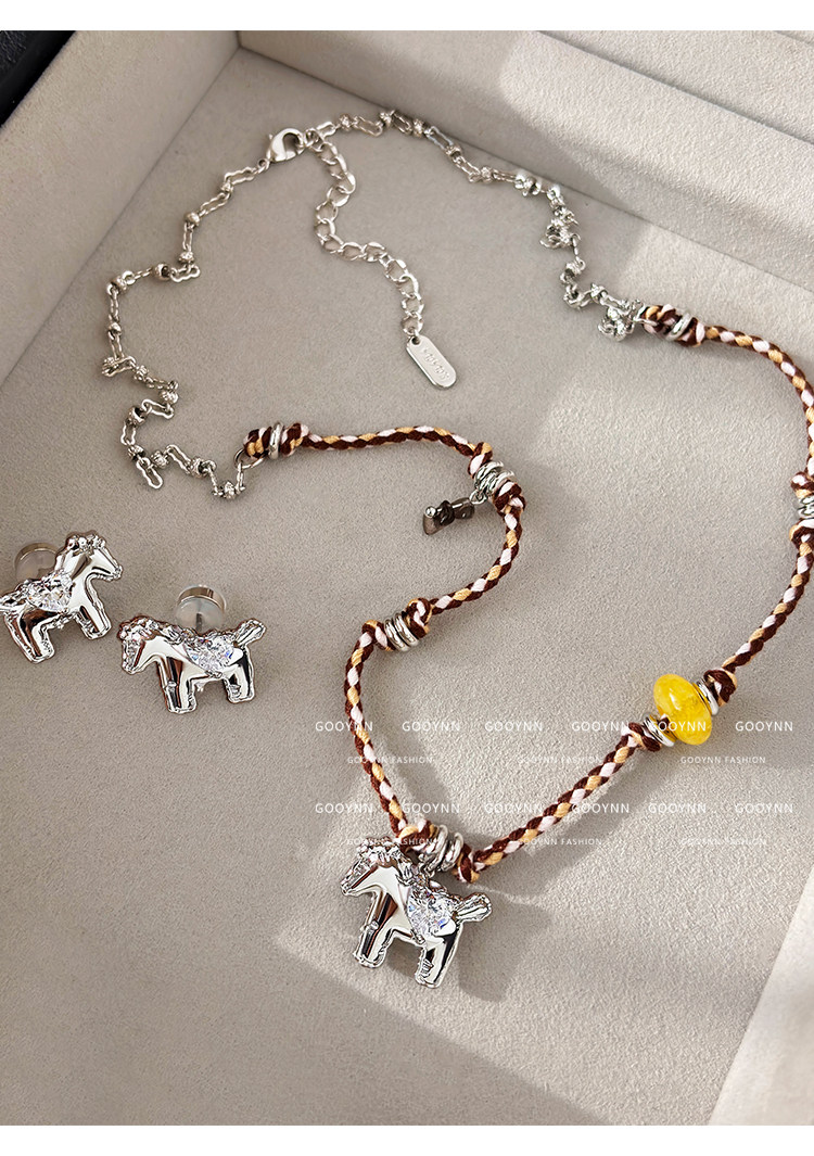 民族風復古編織繩小馬項鍊女款高級感輕奢小衆銀色吊墜鎖骨毛衣鏈