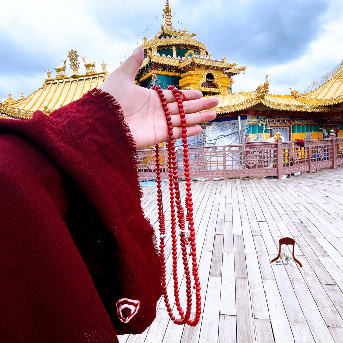色達學院出已流程懷業珠108顆圓滿祝福懷業紅唸珠五明彿珠手鏈
