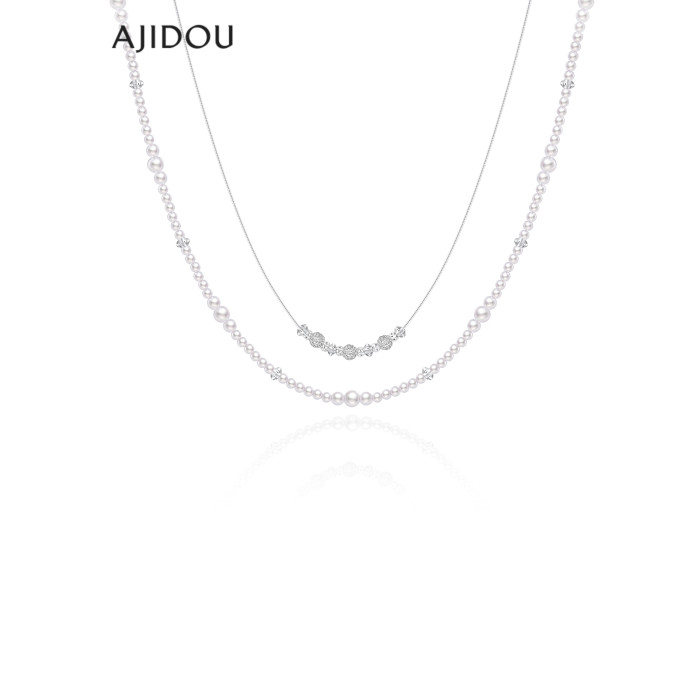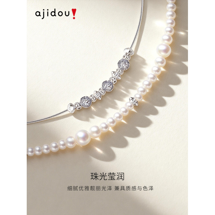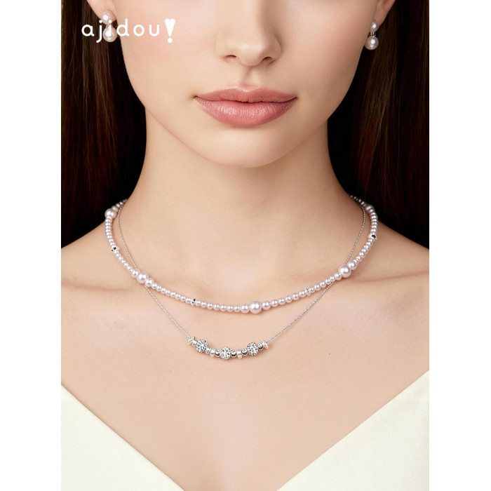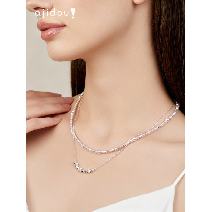 AJIDOU阿吉豆項鍊女氣泡珍珠雙層小衆輕奢設計感短鏈鎖骨鍊毛衣鏈