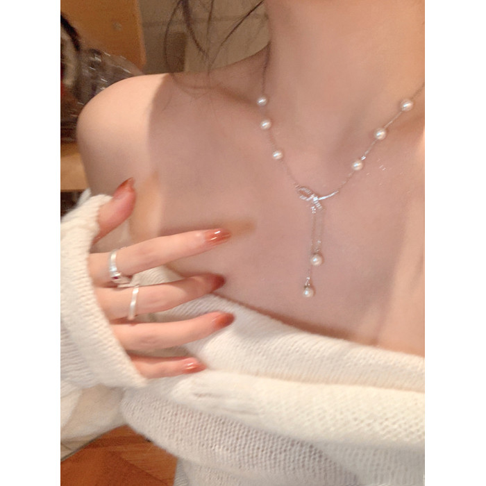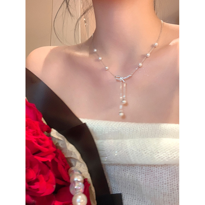 浪漫情書!!蝴蝶結珍珠流蘇項鍊女輕奢小衆頸鏈設計感高級鎖骨鍊