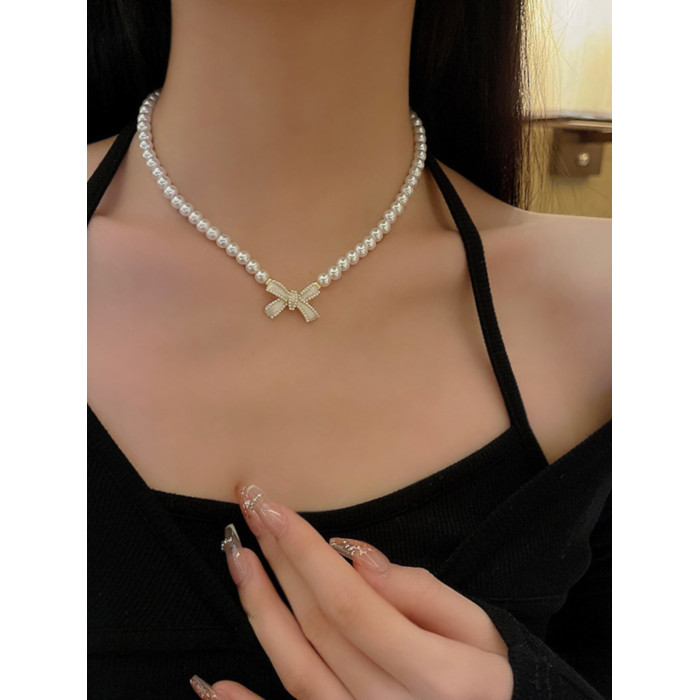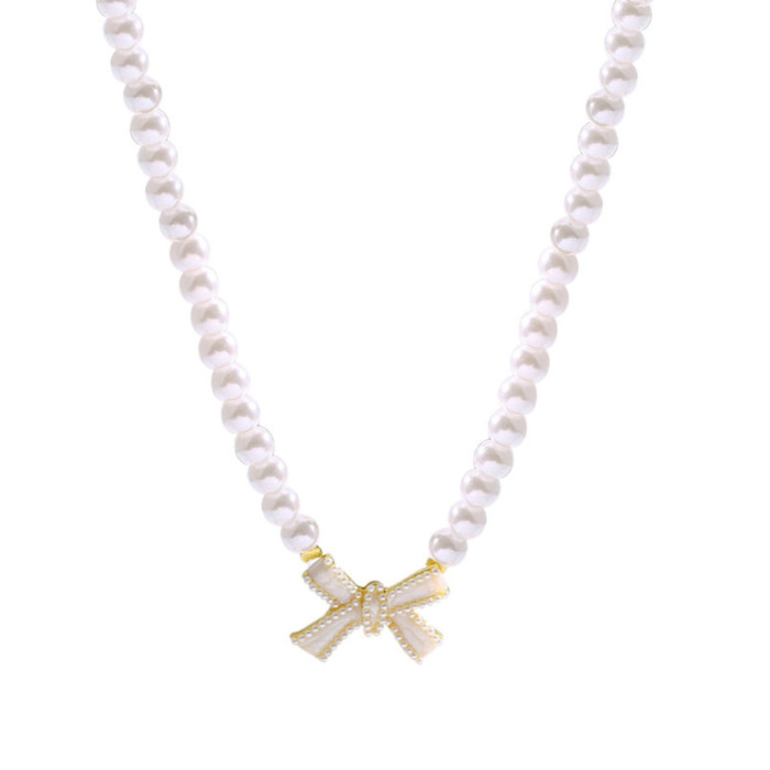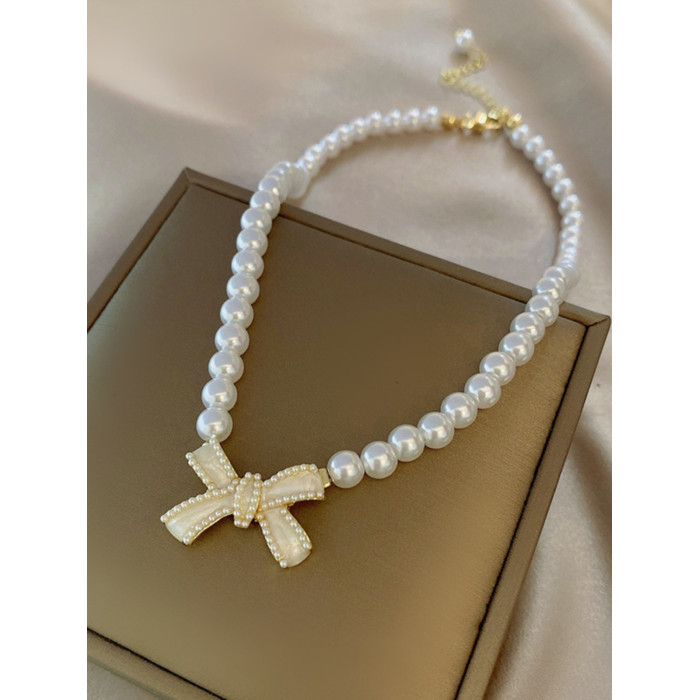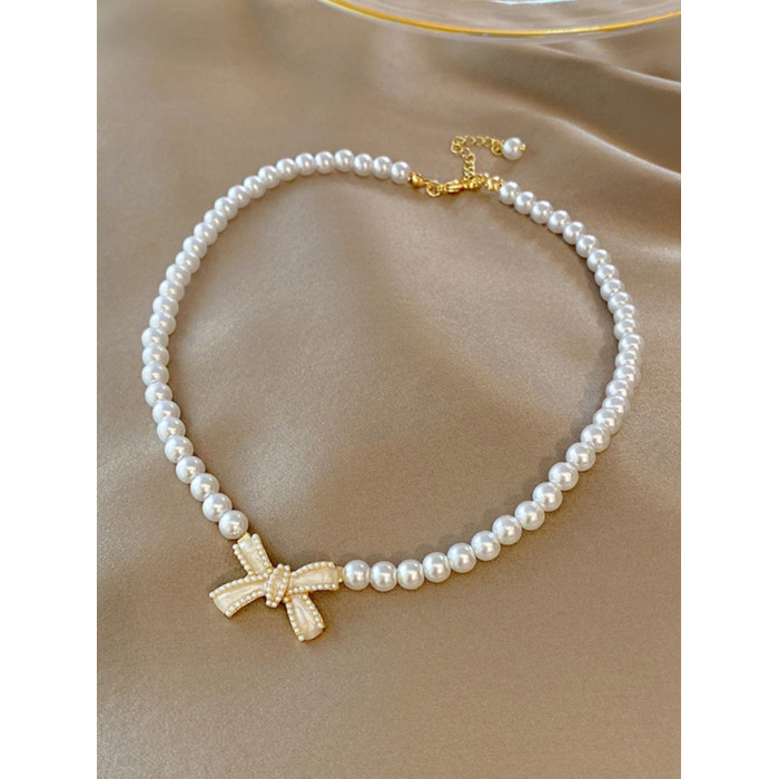 蝴蝶結仿仿珍珠項鍊女頸鏈高級輕奢小衆設計感2026年新款鎖骨鍊飾