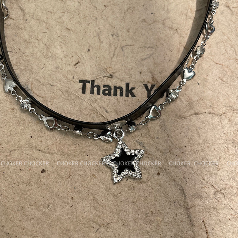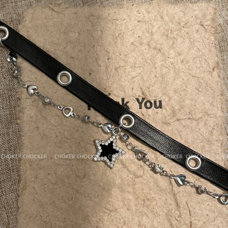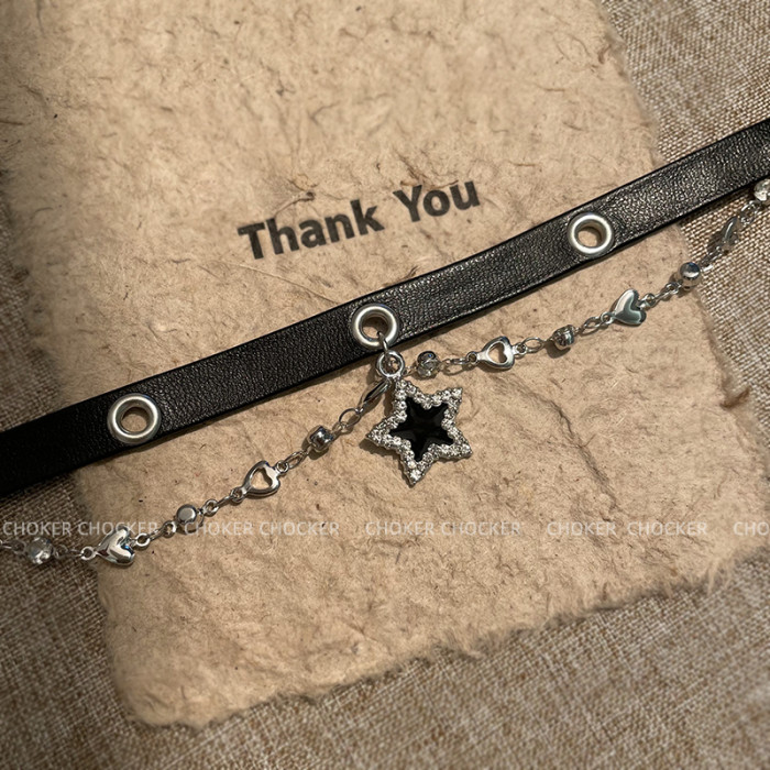 黑色星星choker脖頸鏈皮質項圈女甜酷辣妹鎖骨鍊項鍊女款2025新款