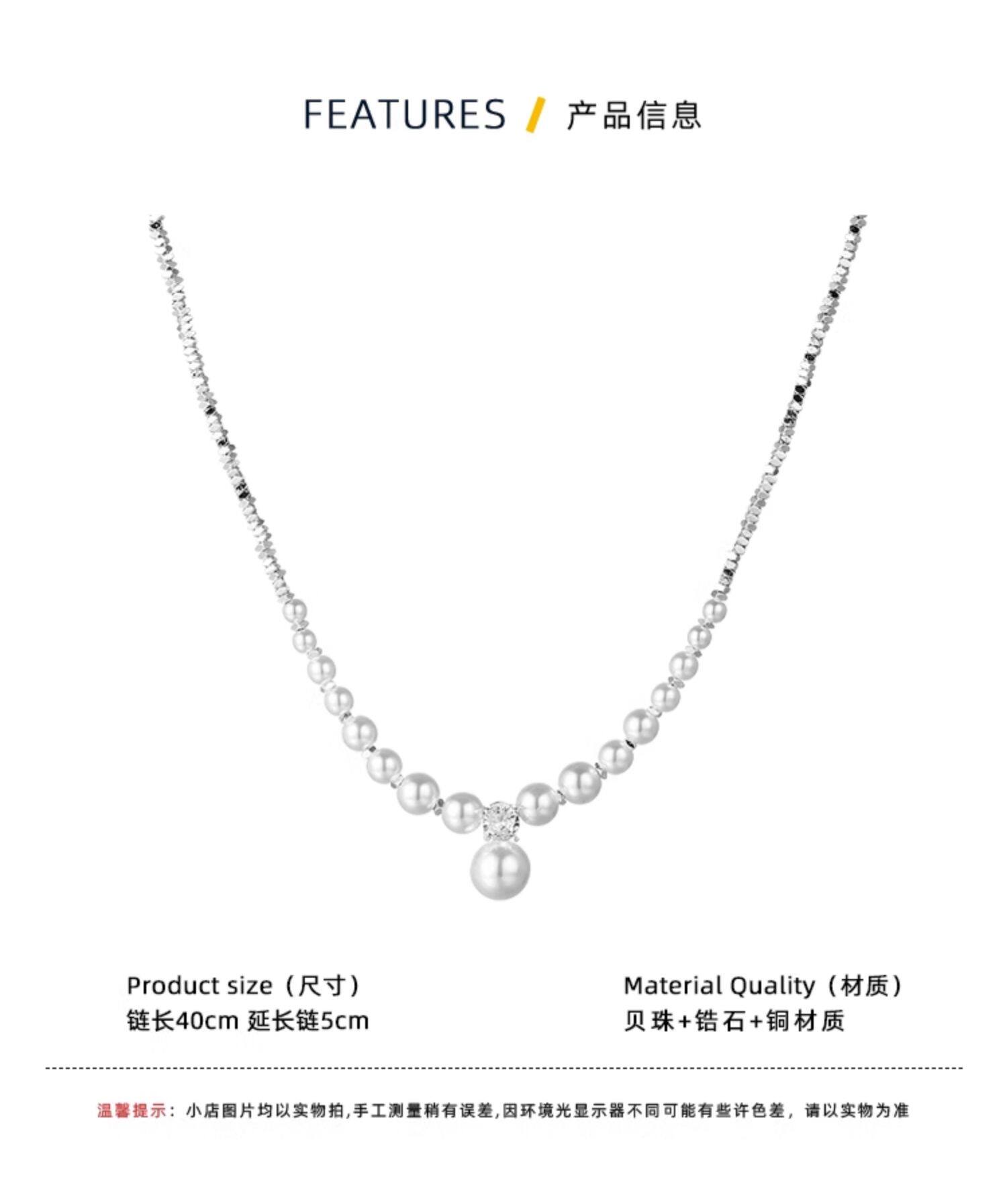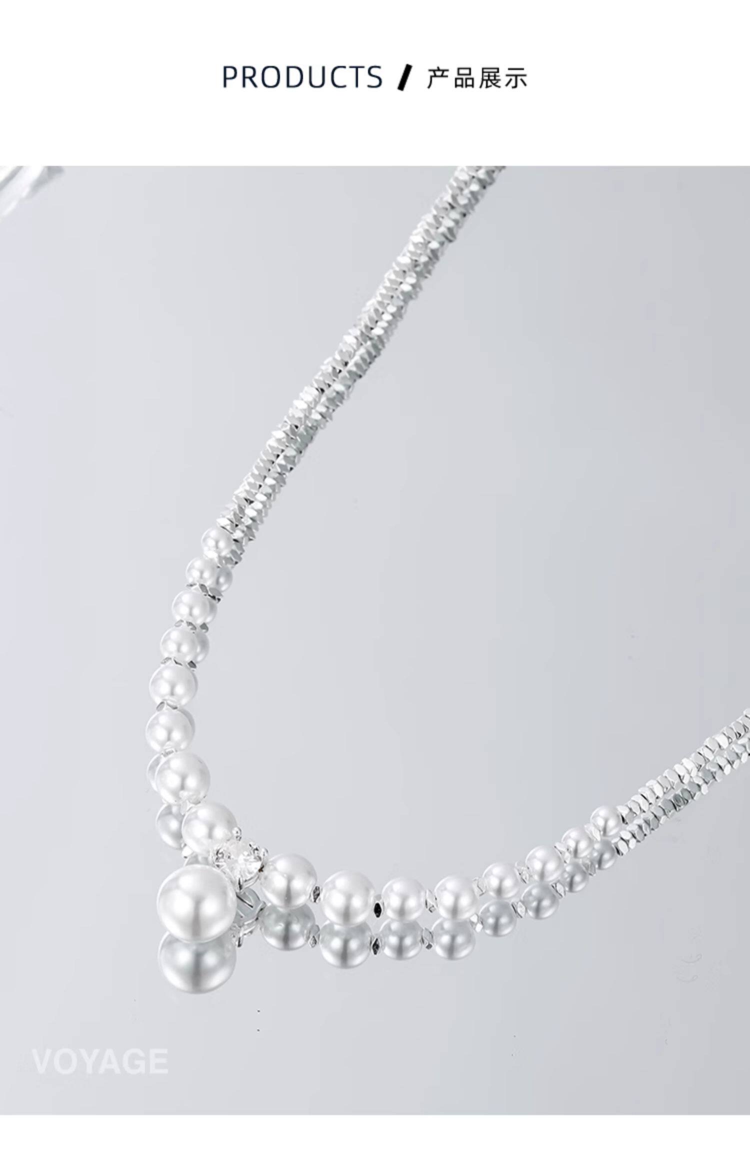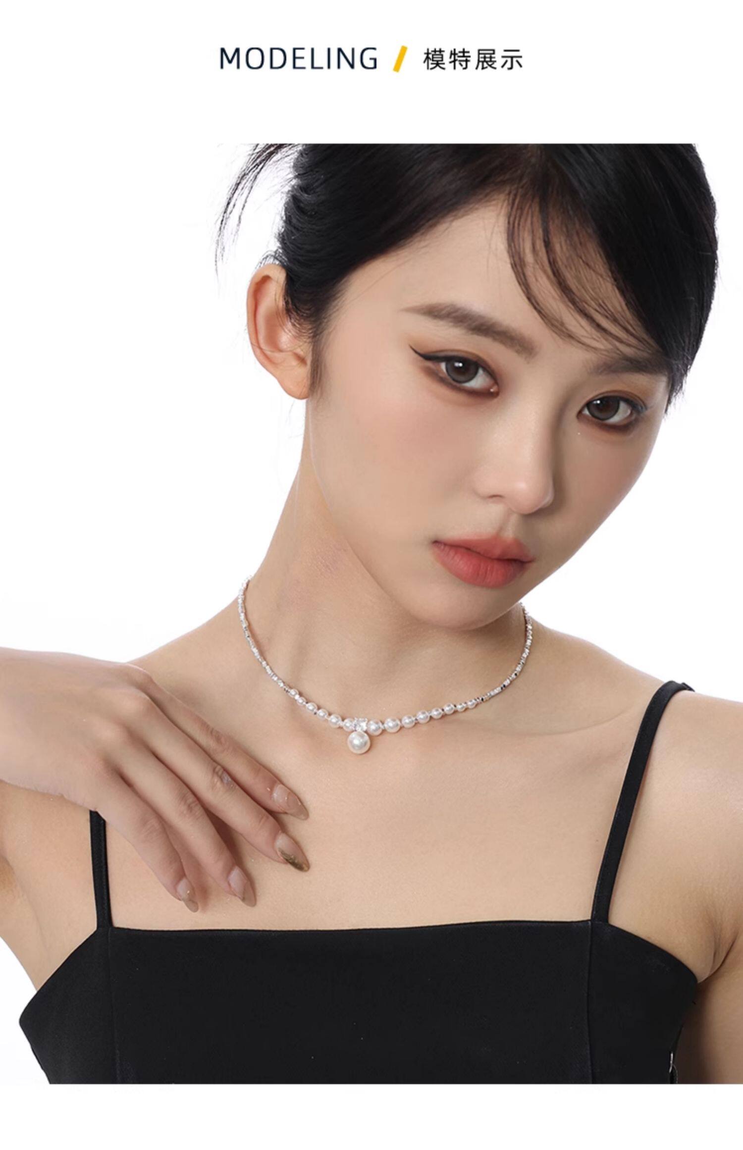 法式碎銀子珍珠款吊墜項鍊秋冬配飾女毛衣鏈輕奢小衆高級感鎖骨鍊