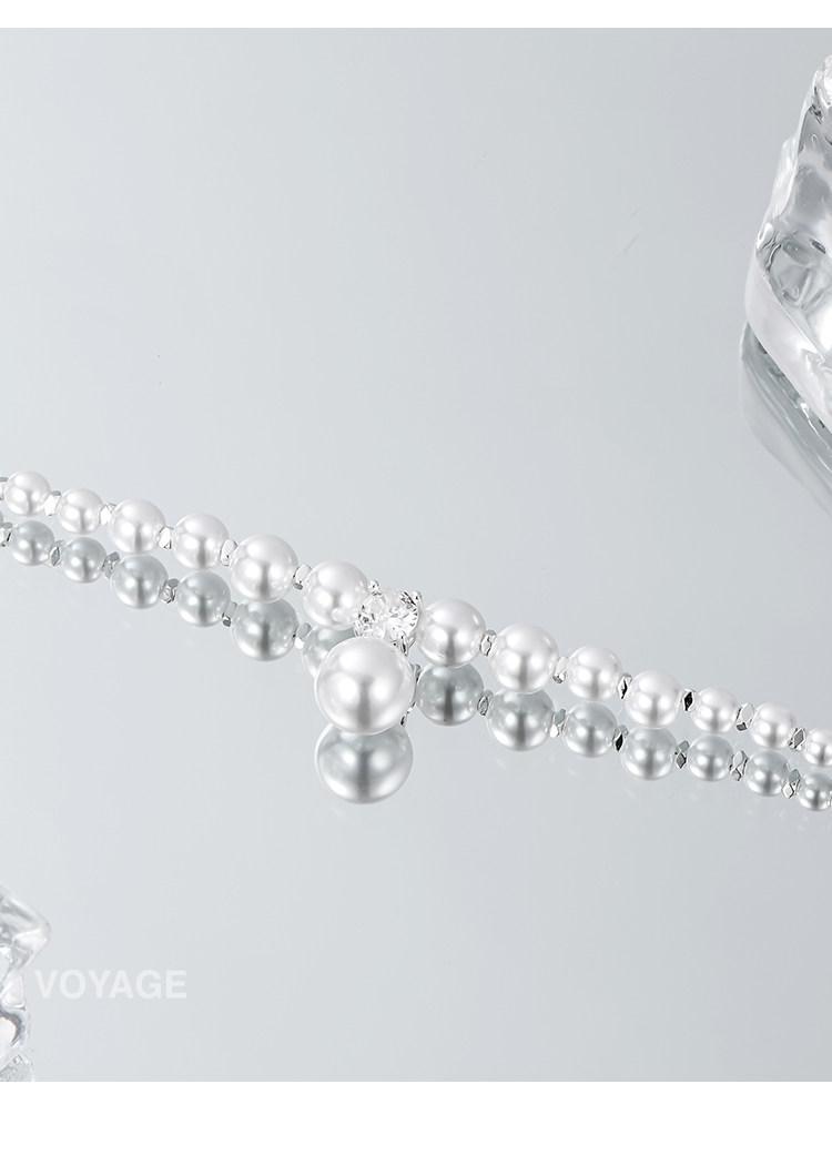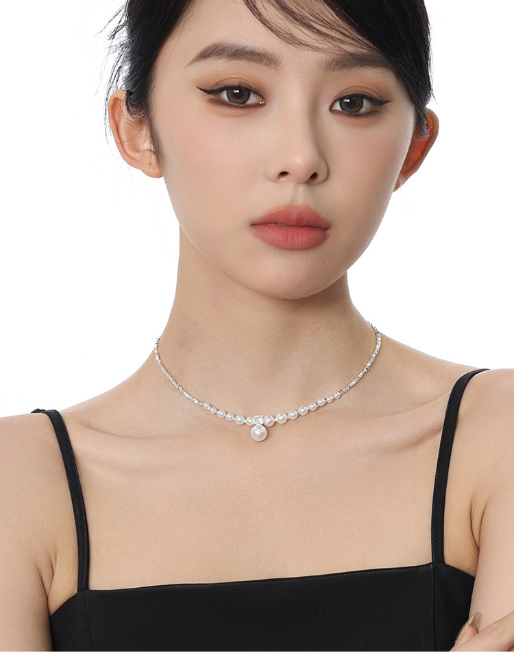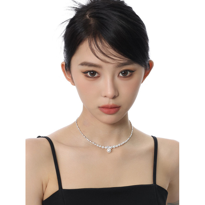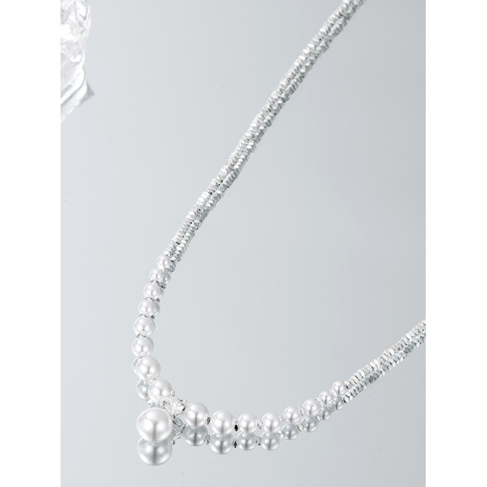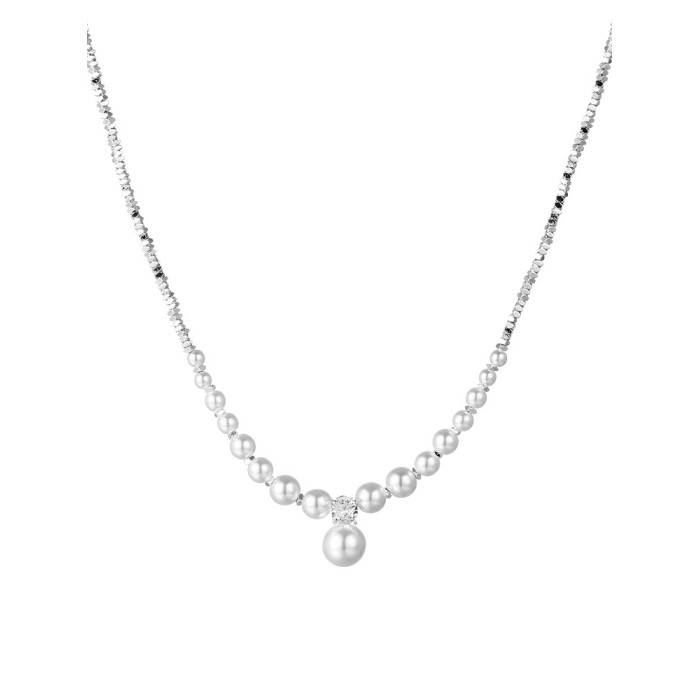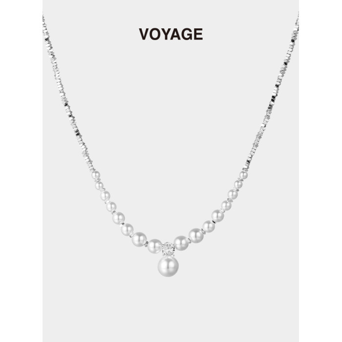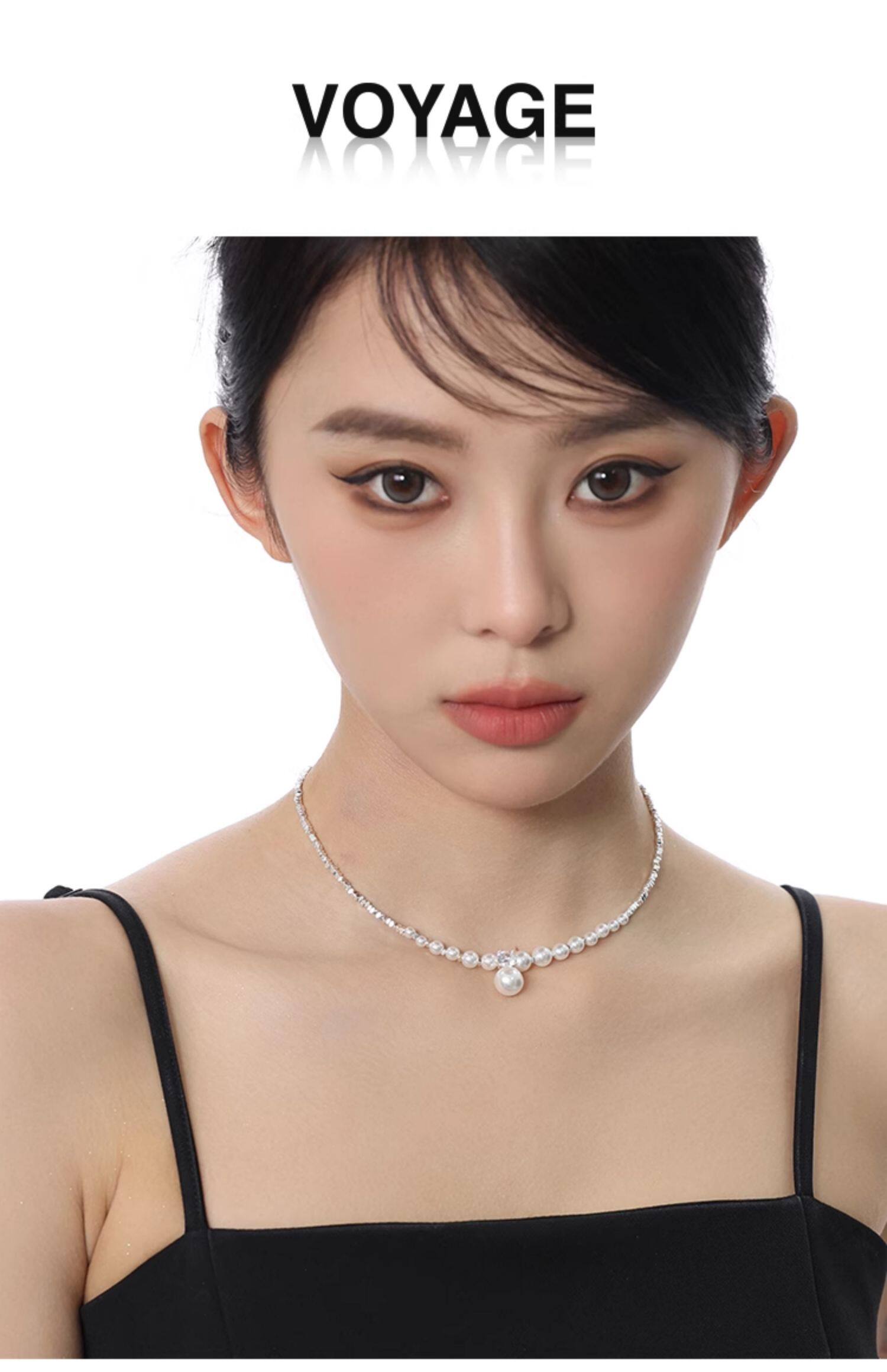 法式碎銀子珍珠款吊墜項鍊秋冬配飾女毛衣鏈輕奢小衆高級感鎖骨鍊