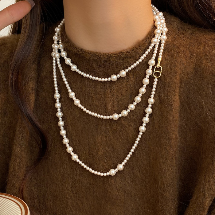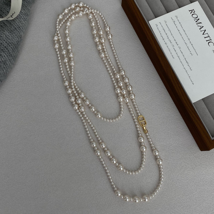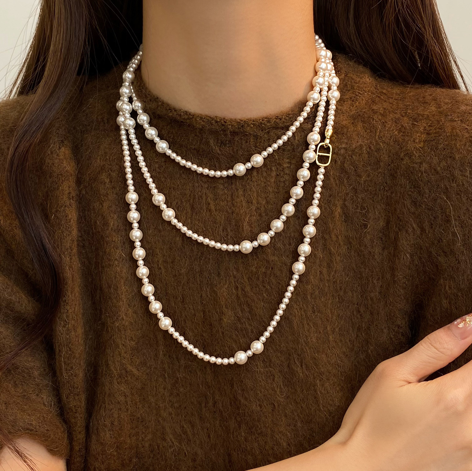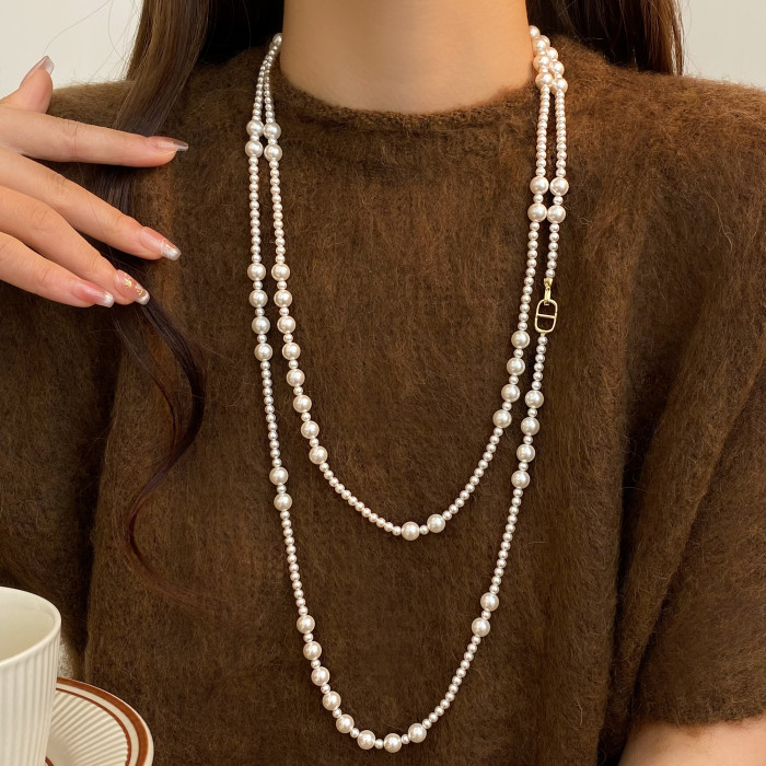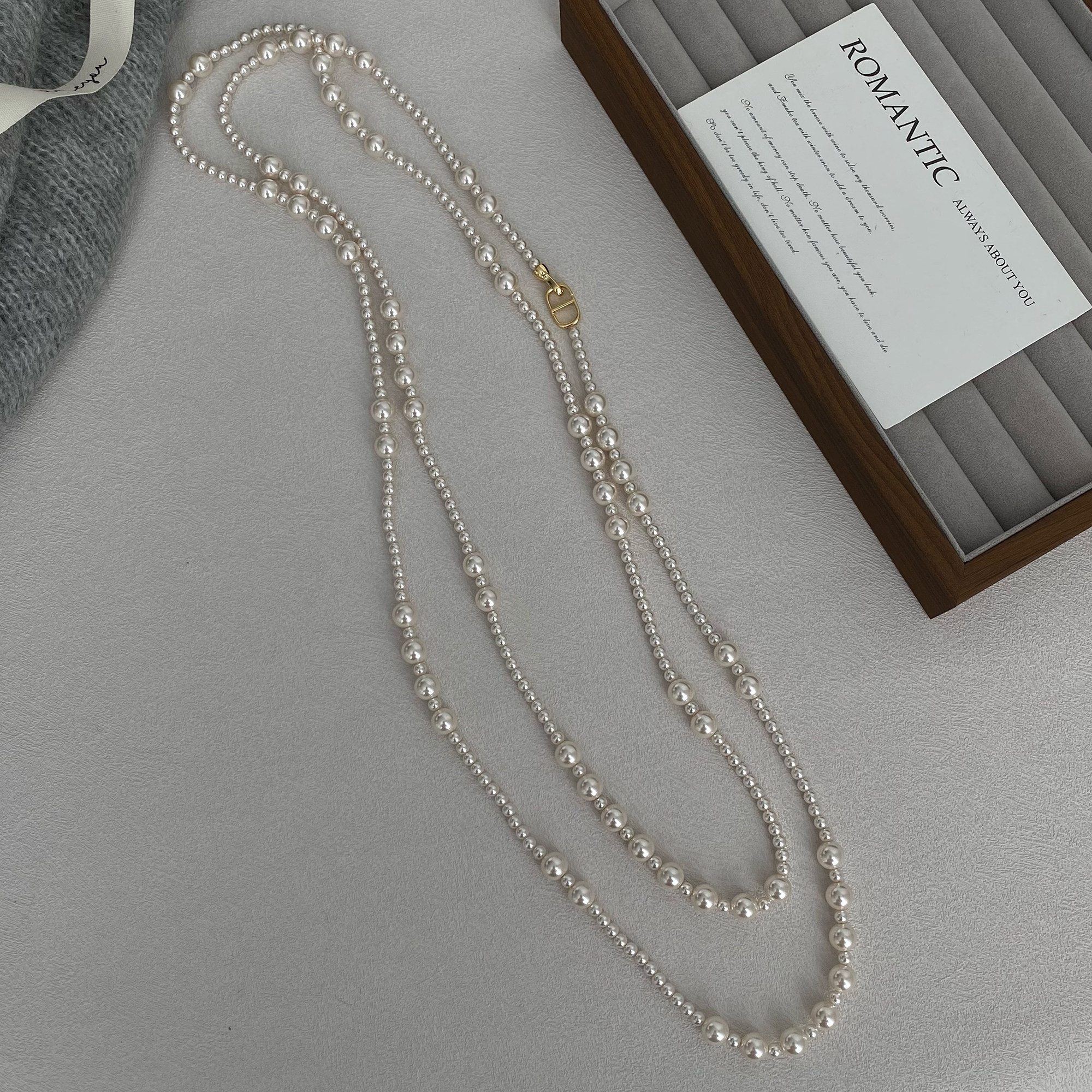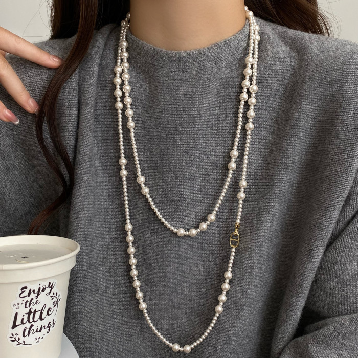 豬鼻子輕奢多層珍珠毛衣項鍊2026新款爆款曡戴秋冬毛衣鏈女媽媽款