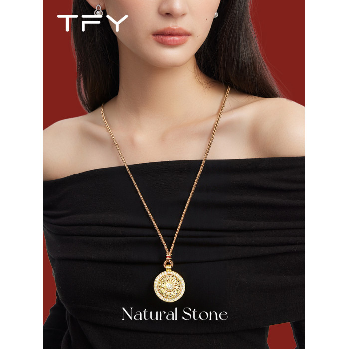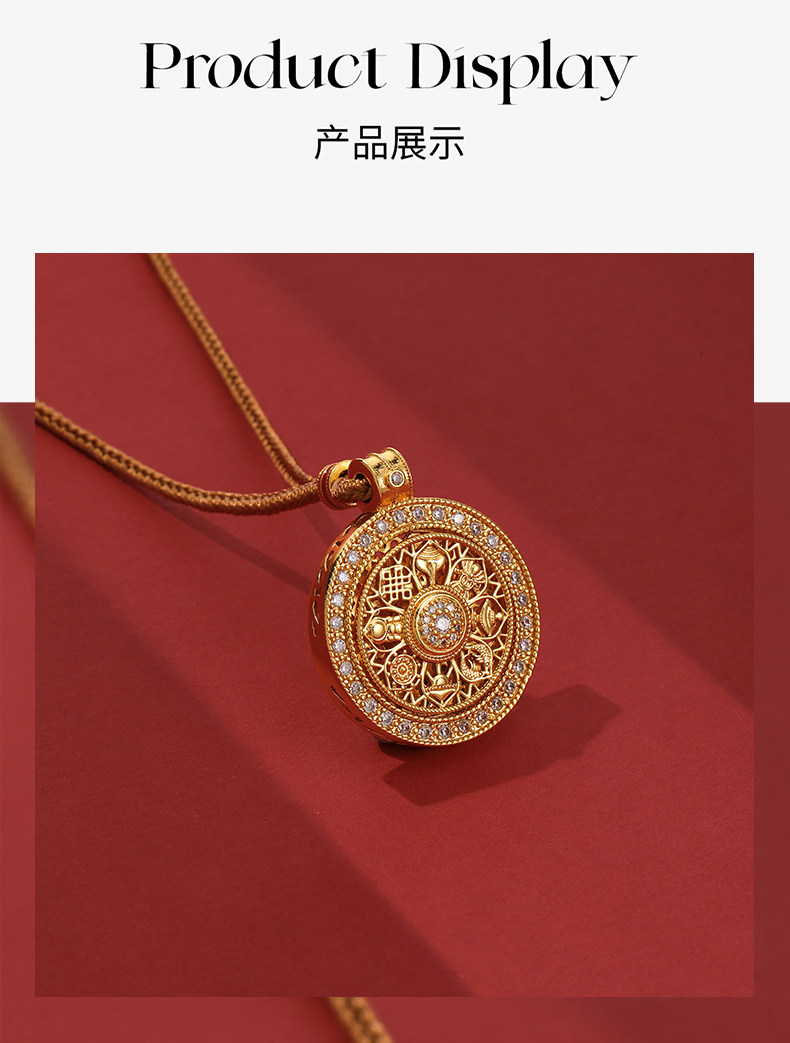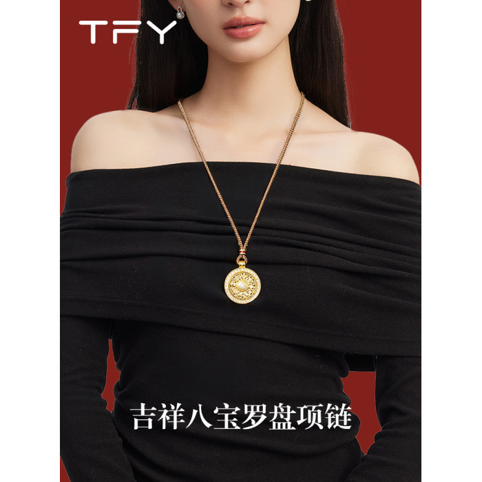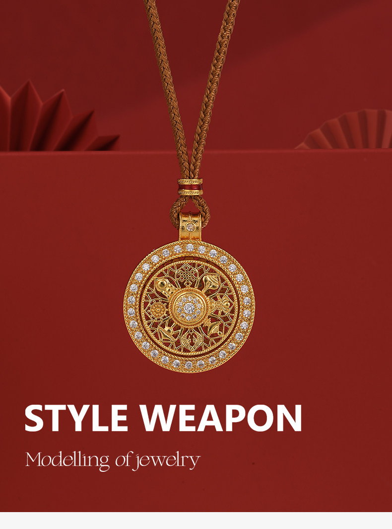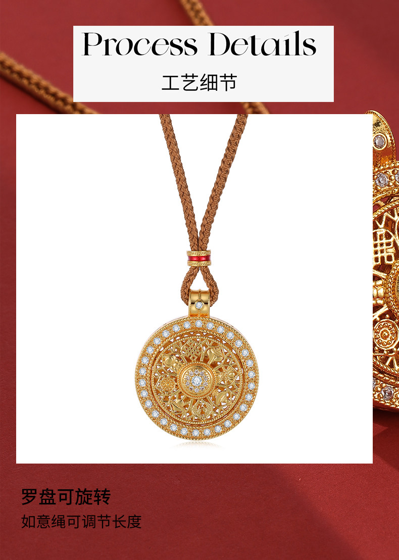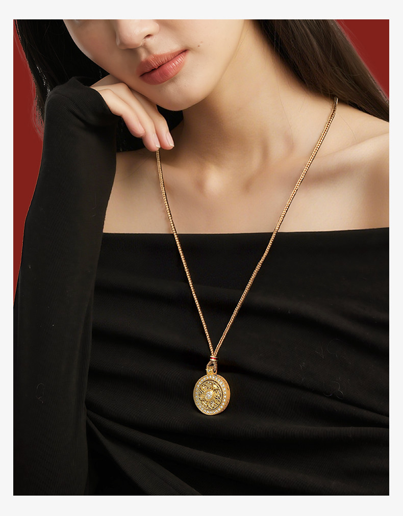 韋雪同款八寶羅盤沙金項鍊新中式長款編繩配飾女高級感秋冬毛衣鏈