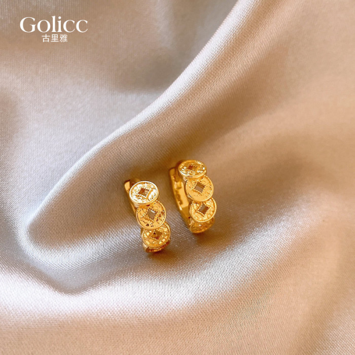 金色錢幣玄學旺財耳釦耳環女2026新款爆款高級感耳釘耳飾獨特漂亮
