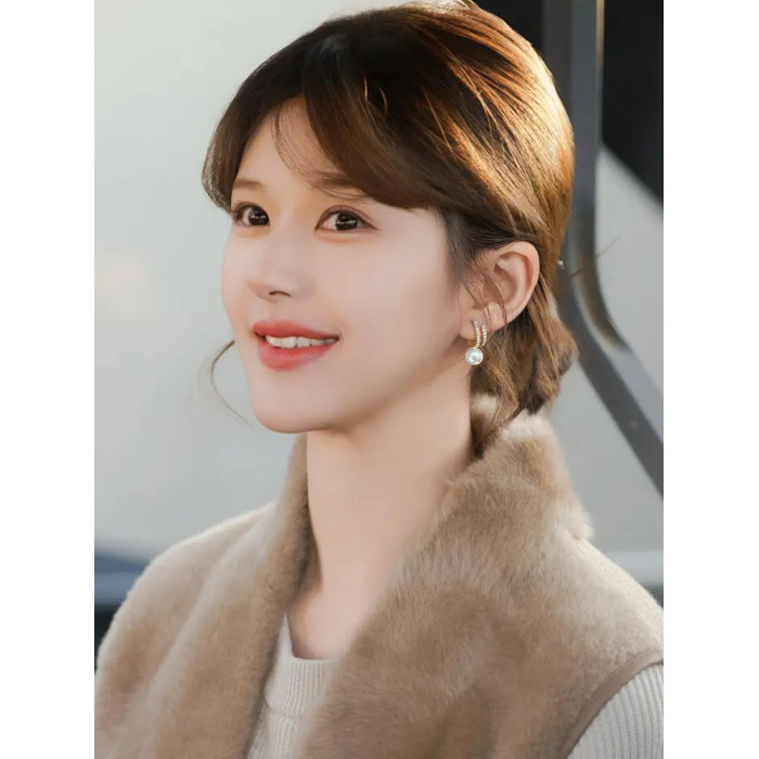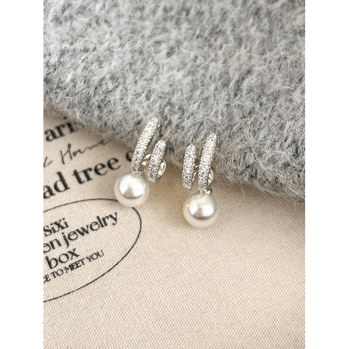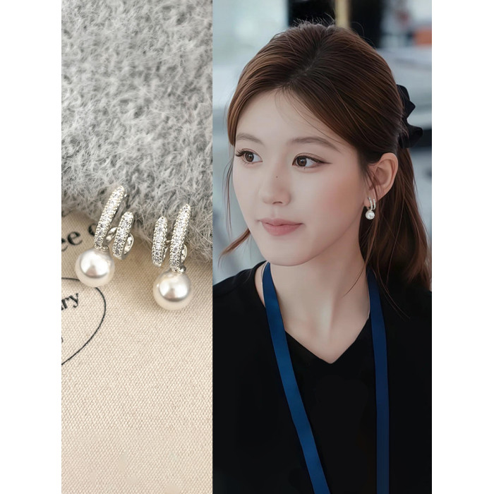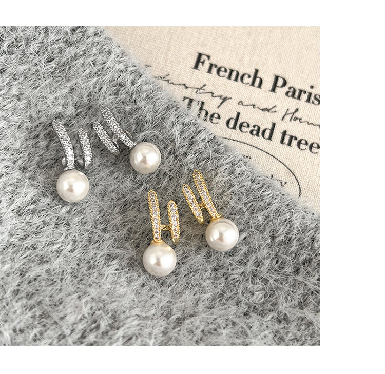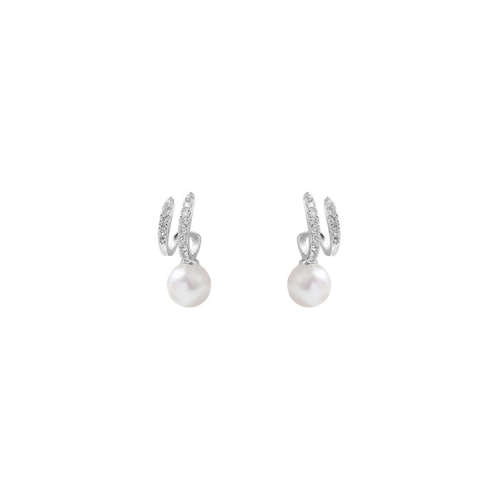 高級感輕奢銀色蚊香盤耳夾無耳洞女新款珍珠款小衆氣質藝術生耳飾