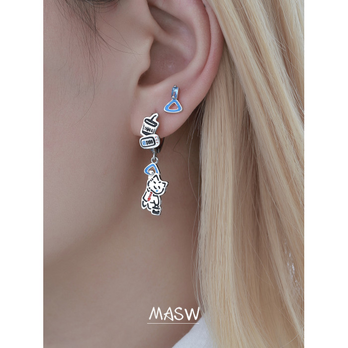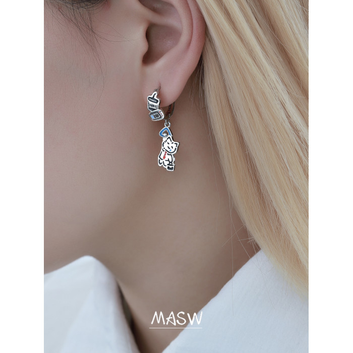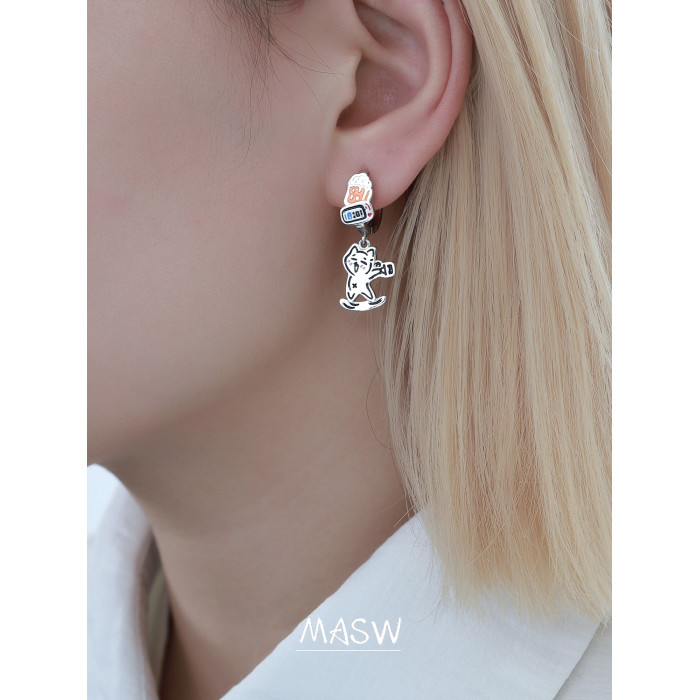 MASW麻秀原創設計喵系列創意牛馬打工喵耳釘卡通可愛貓貓耳圈耳飾