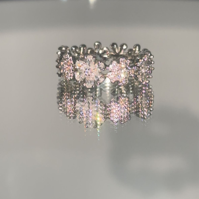 旭平溫柔花事繁花戒指女精緻氛圍個性滿鑲花型輕奢甜美氣質食指戒