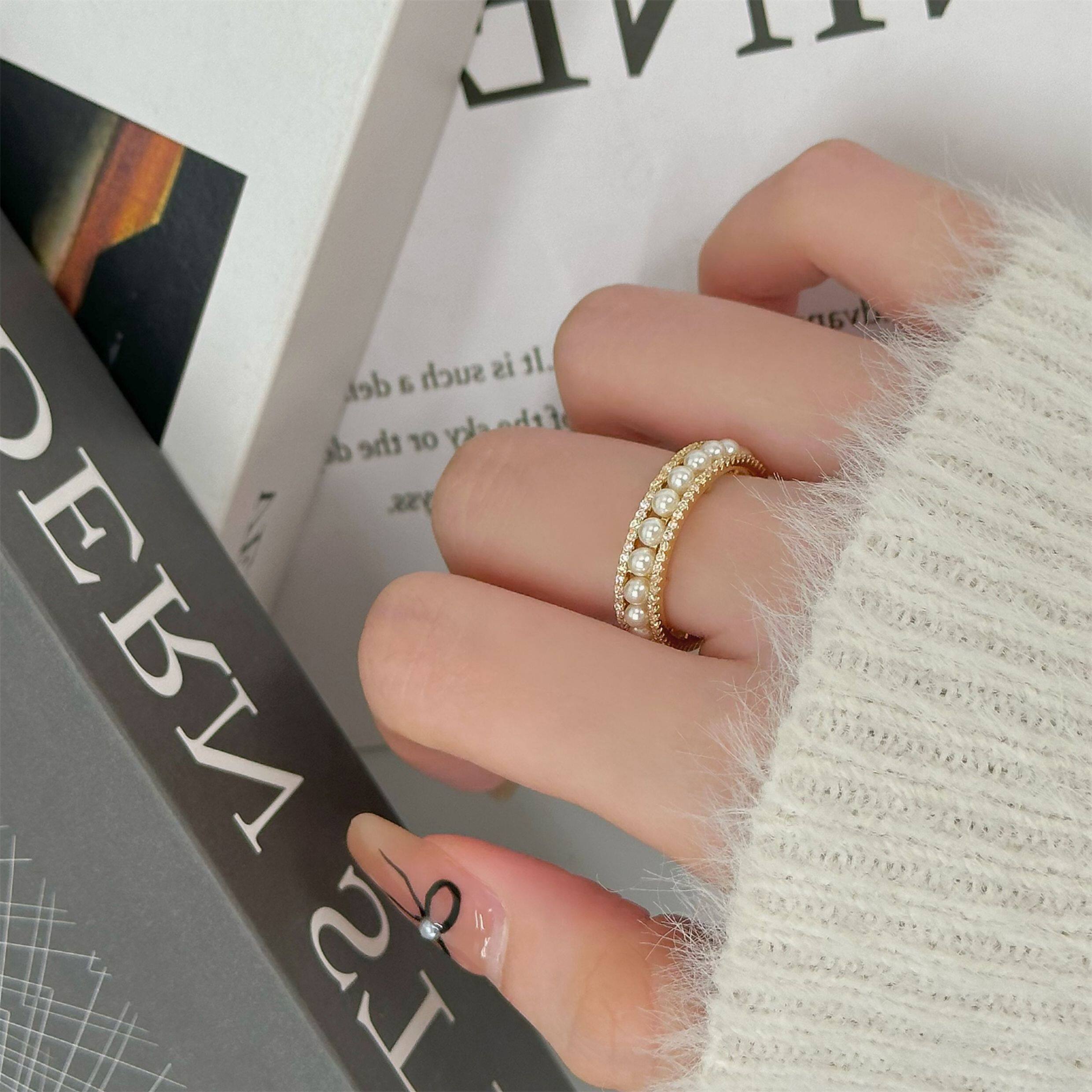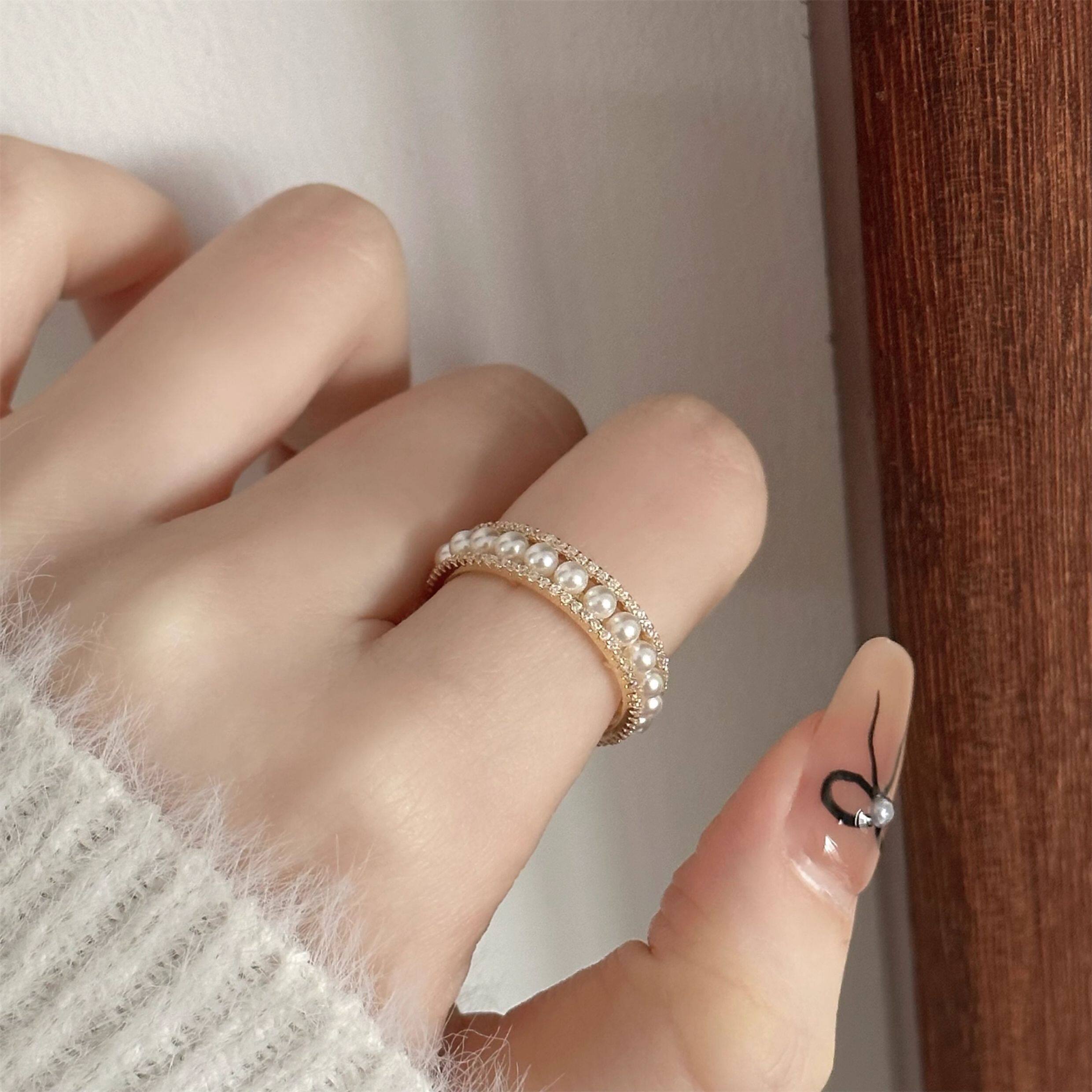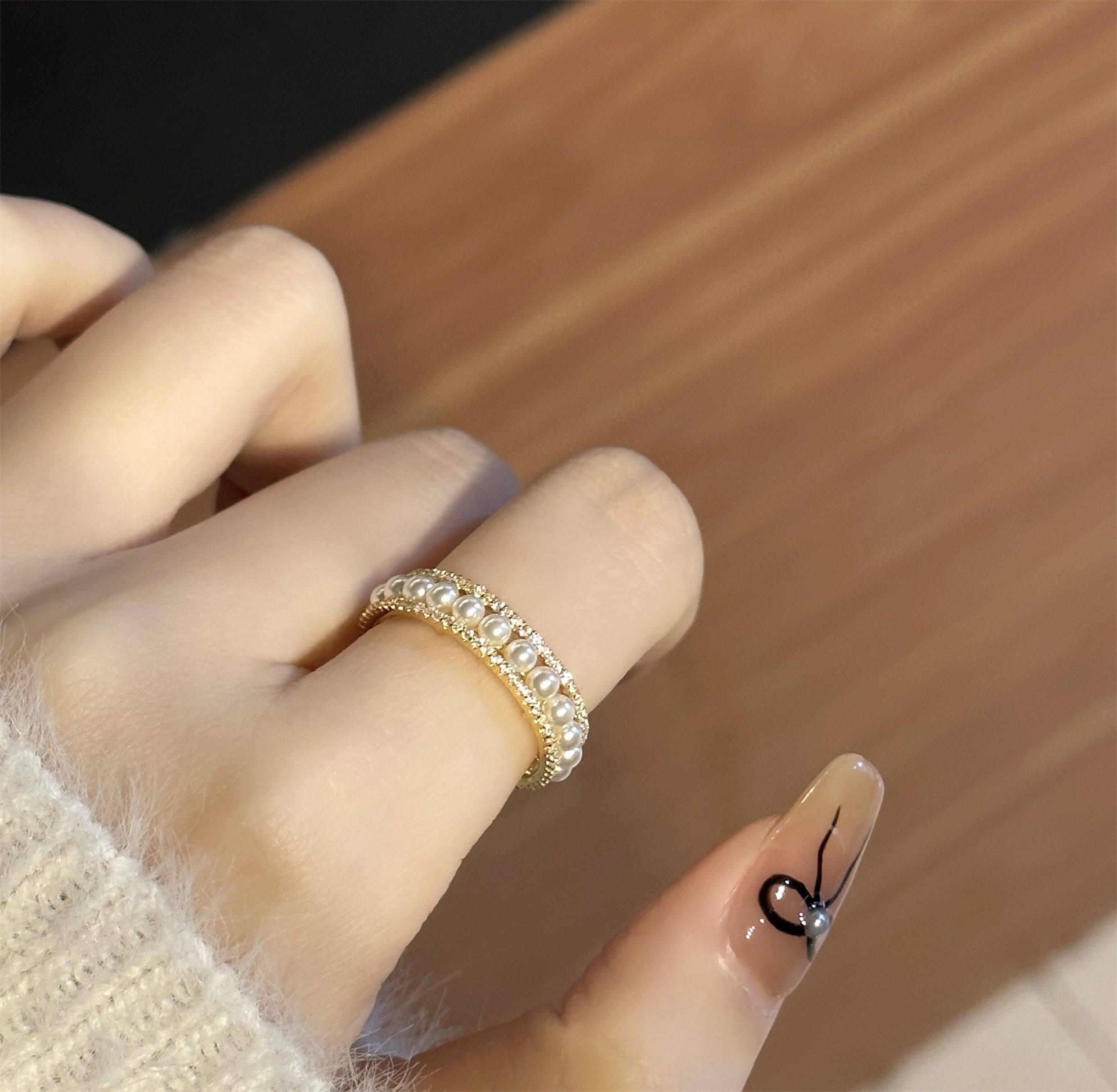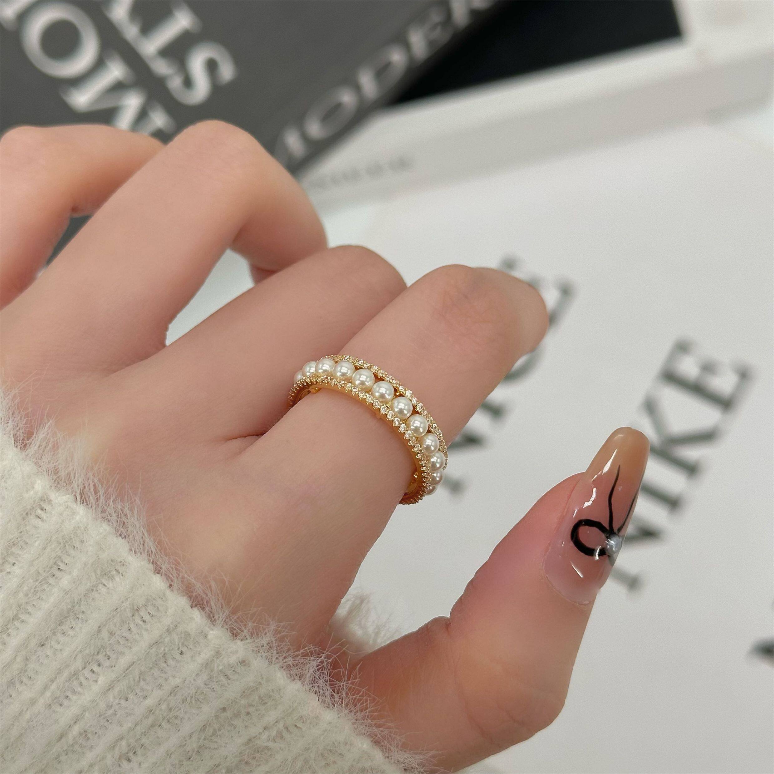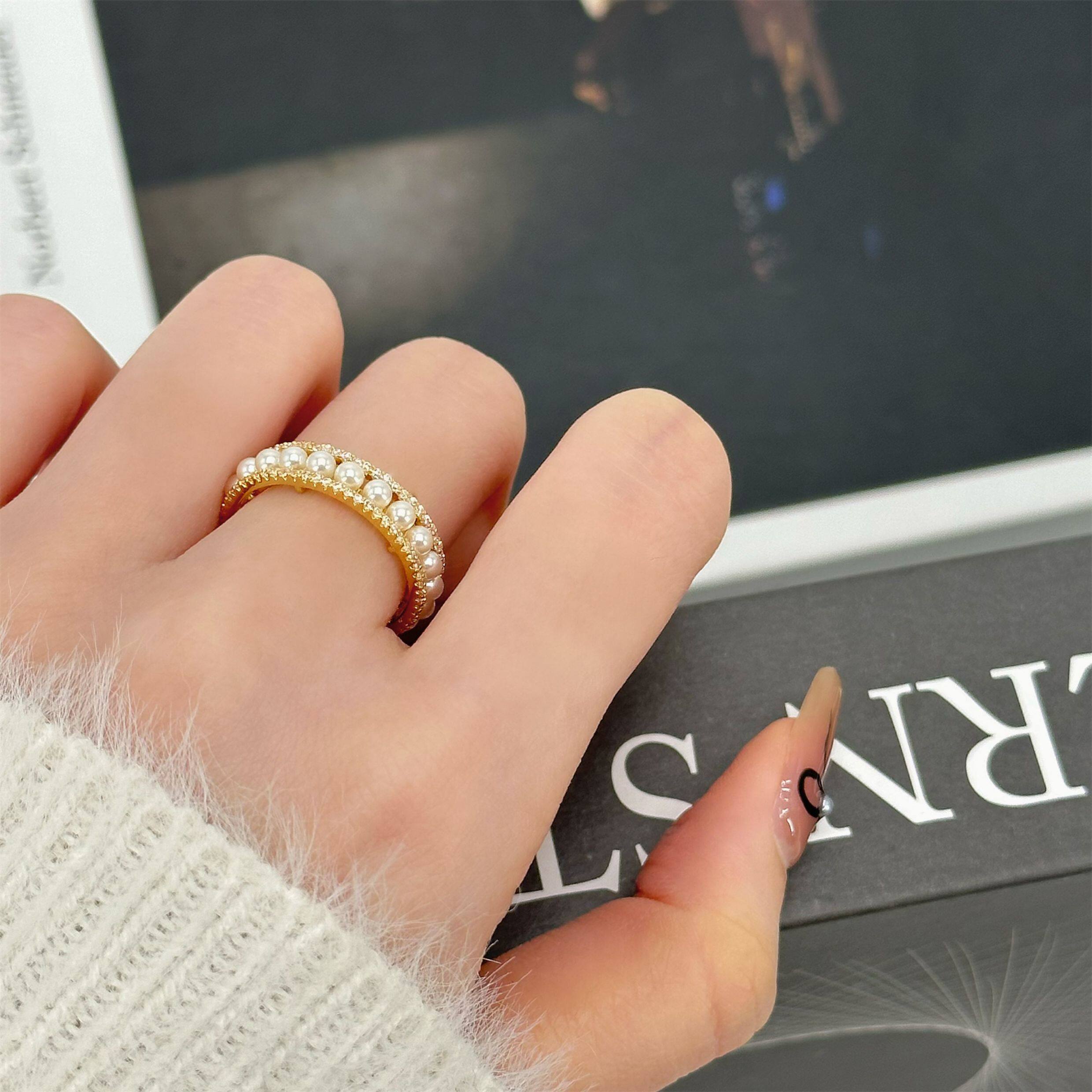 因缺斯汀「法式浪漫」溫婉珍珠相間戒指開口可調節指環女小衆