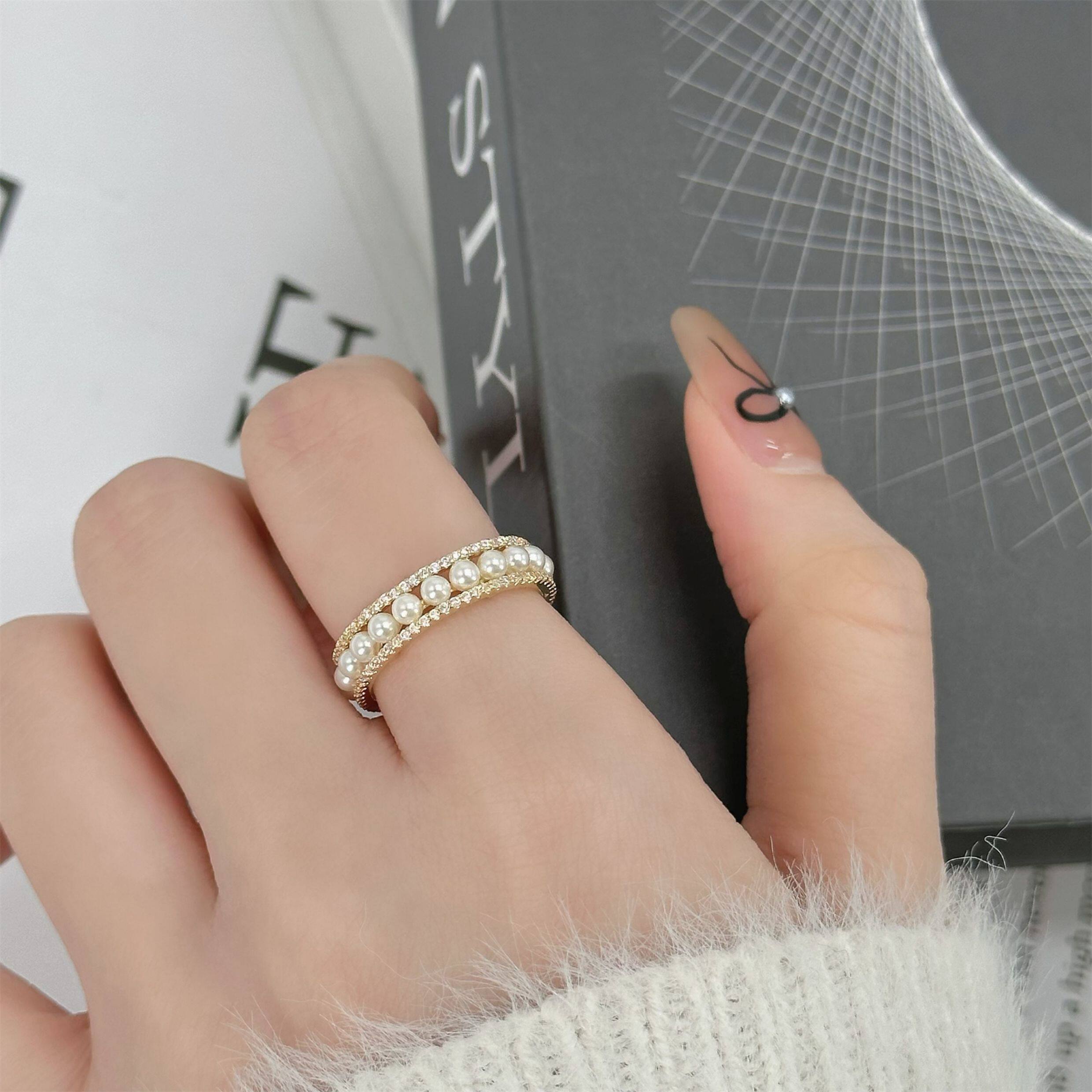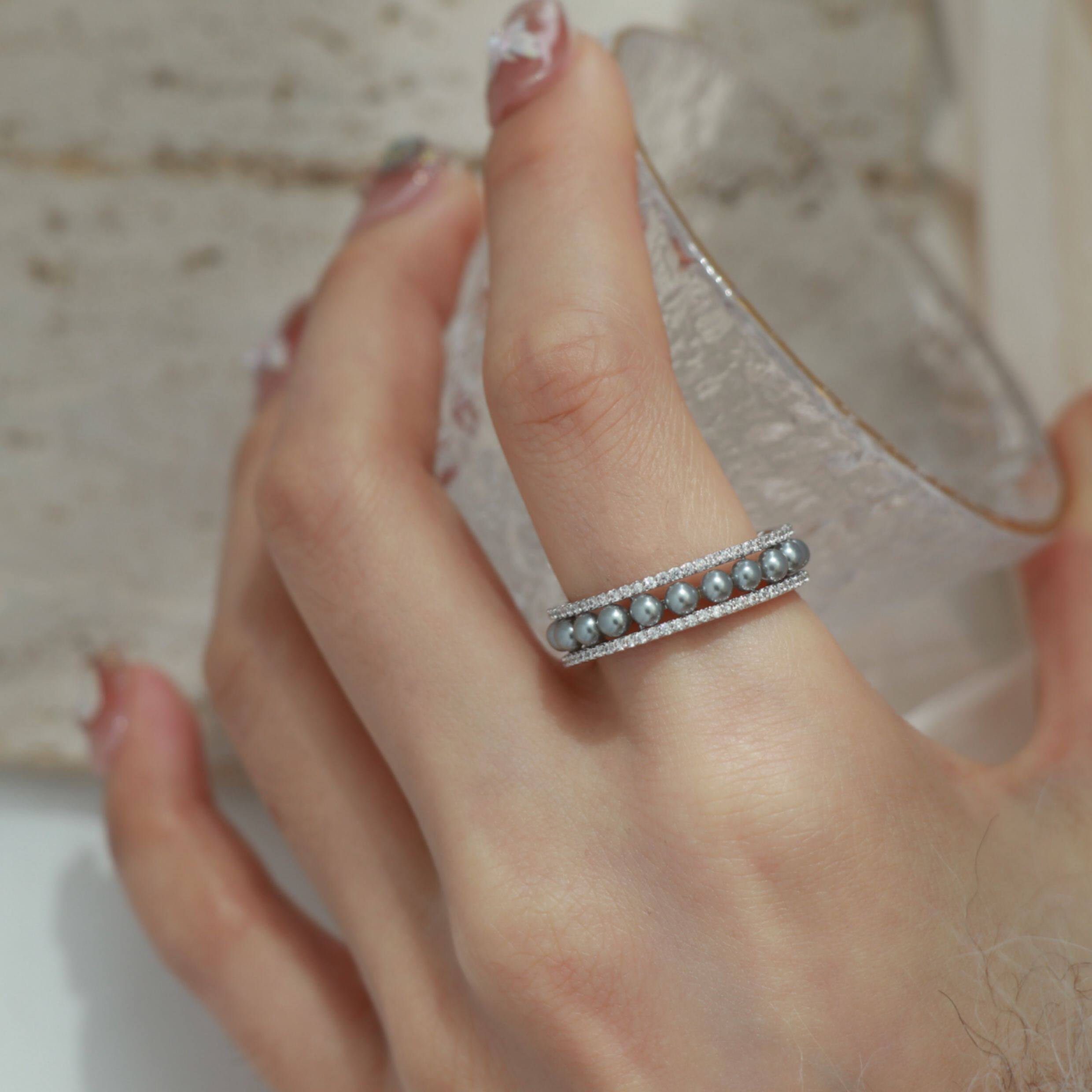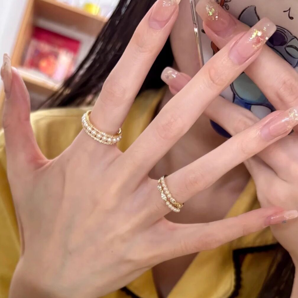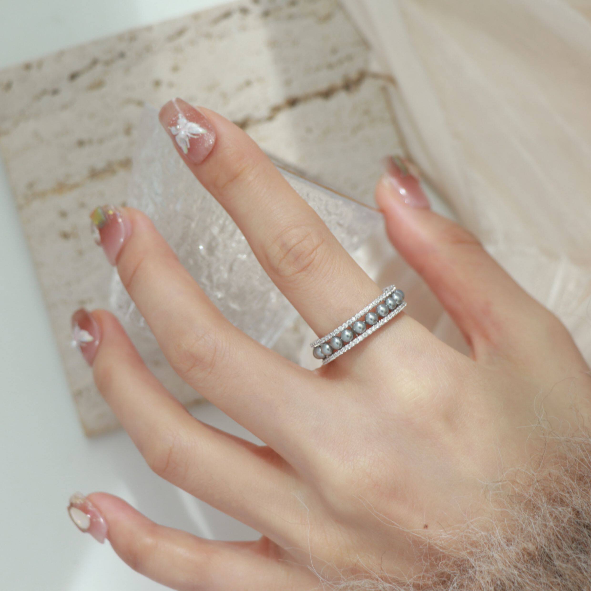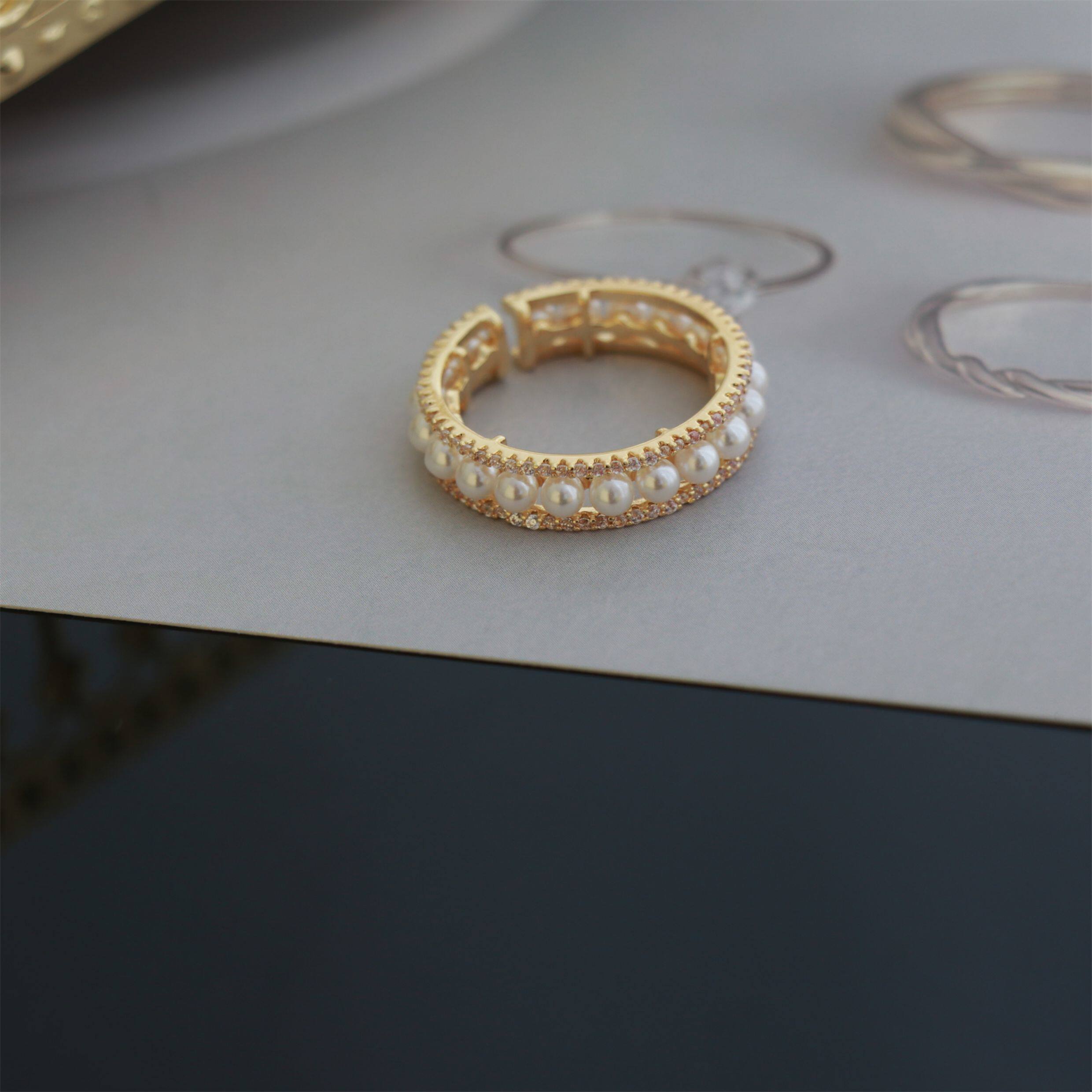 因缺斯汀「法式浪漫」溫婉珍珠相間戒指開口可調節指環女小衆