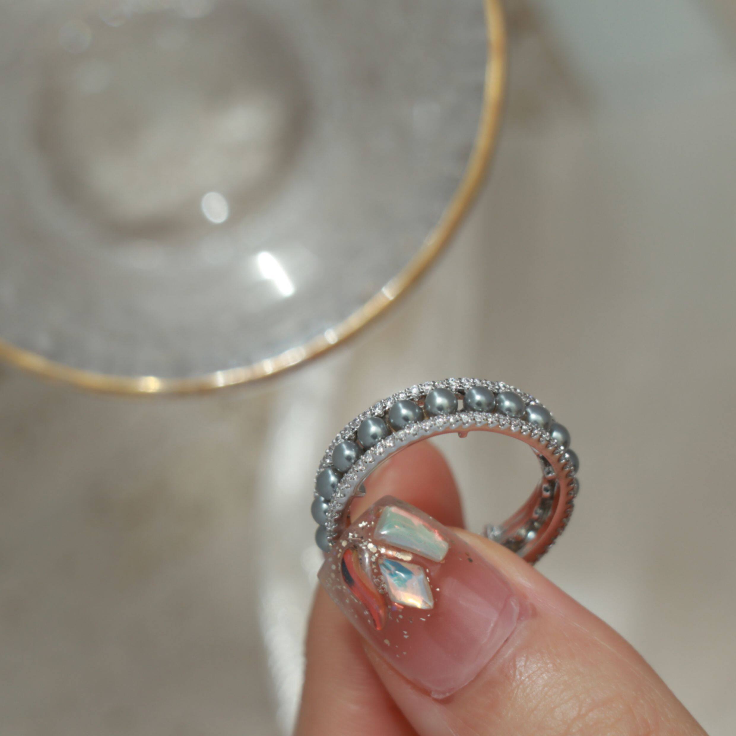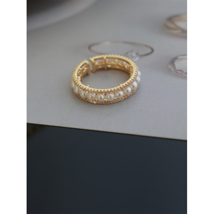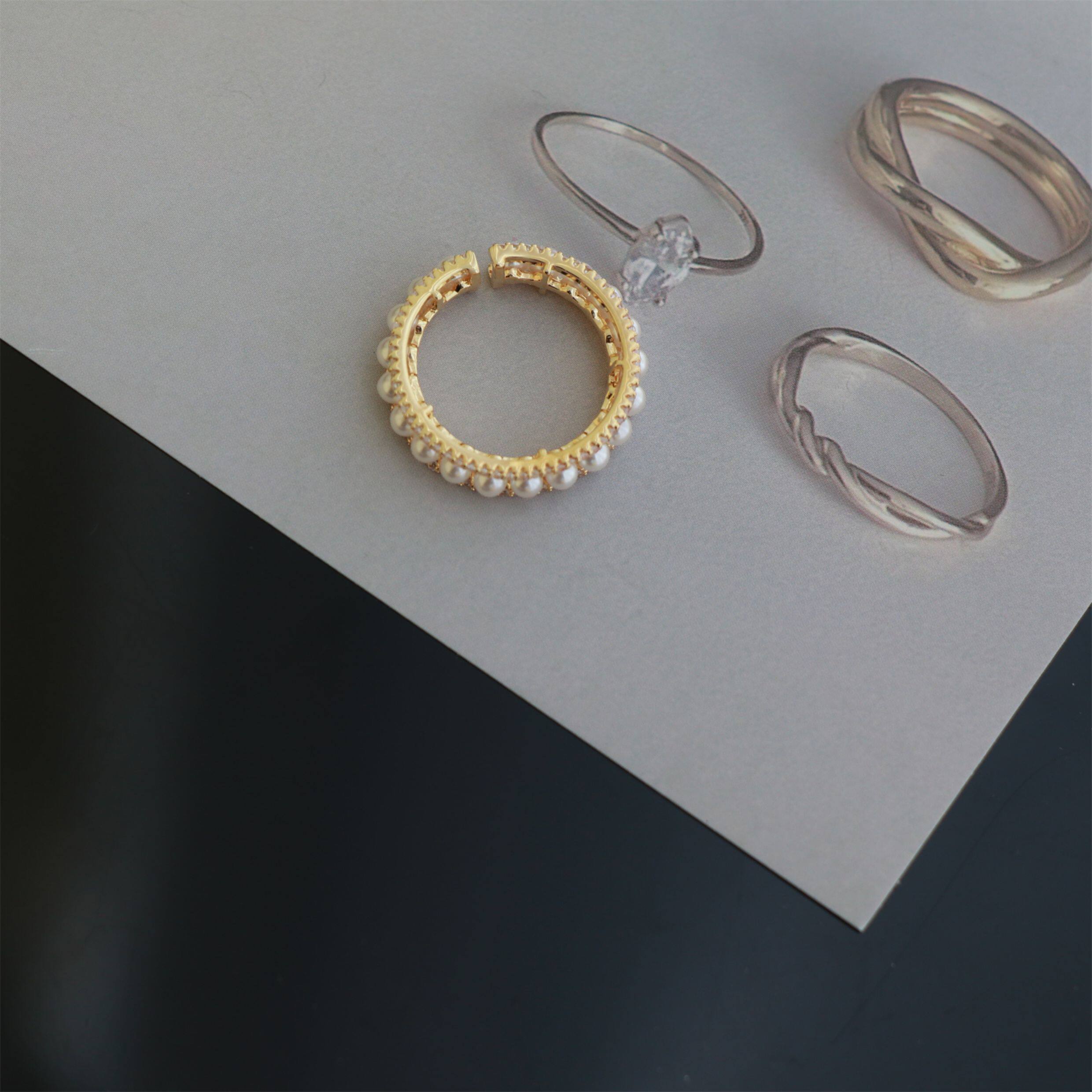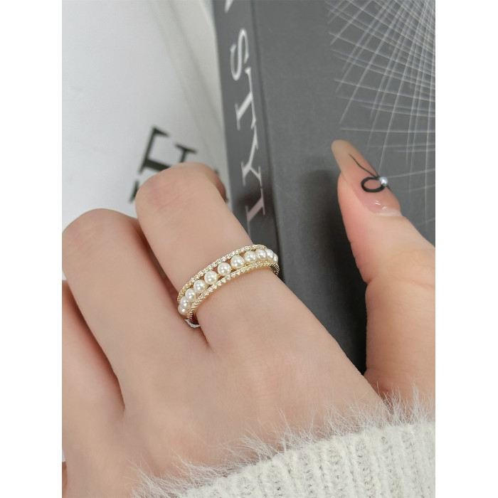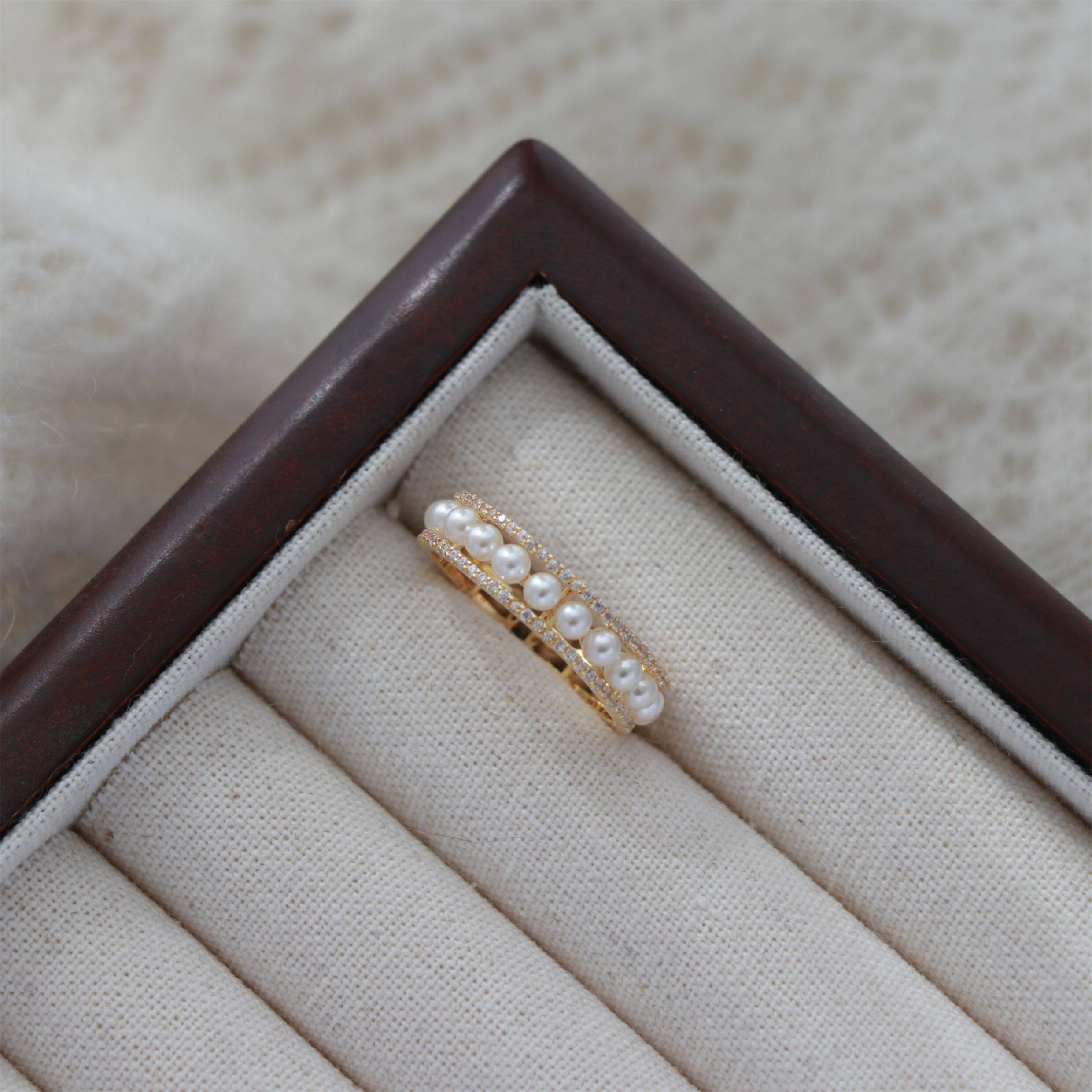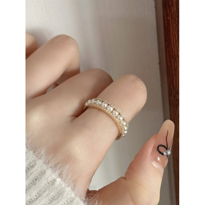 因缺斯汀「法式浪漫」溫婉珍珠相間戒指開口可調節指環女小衆