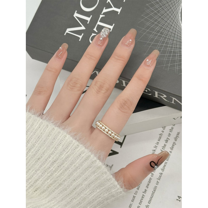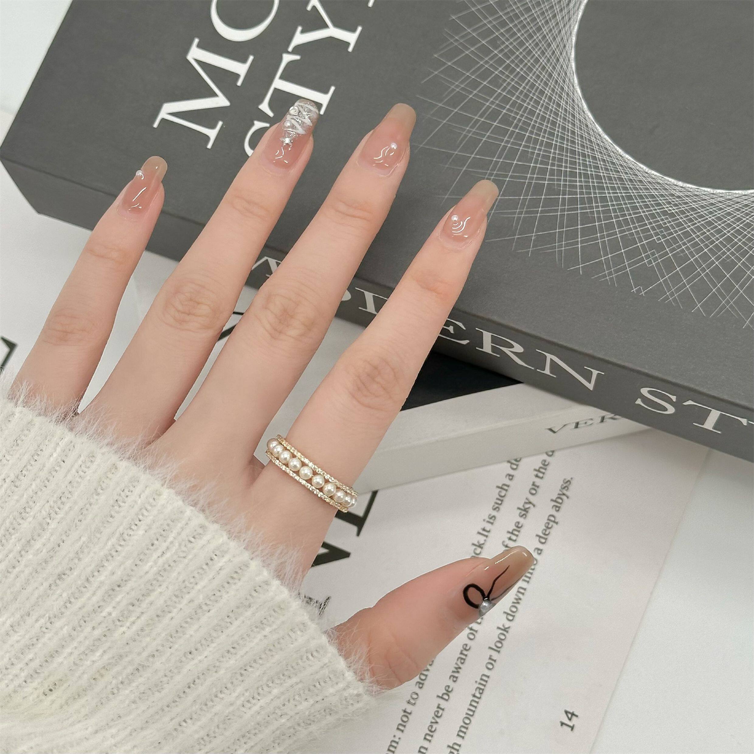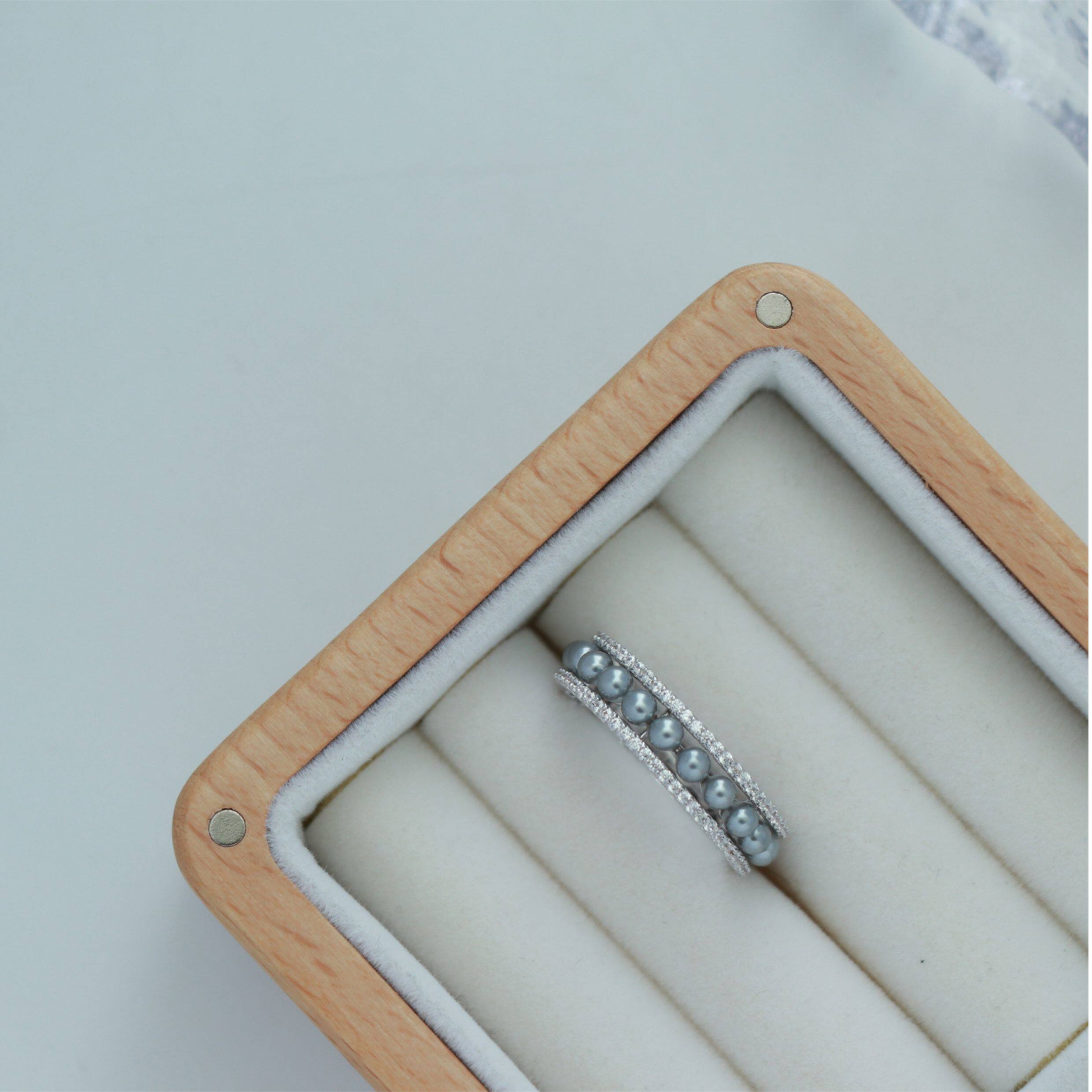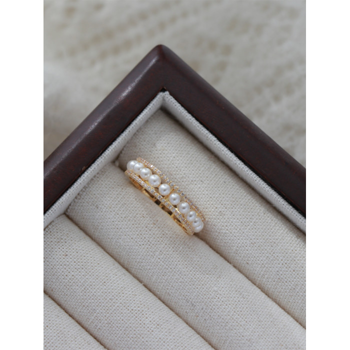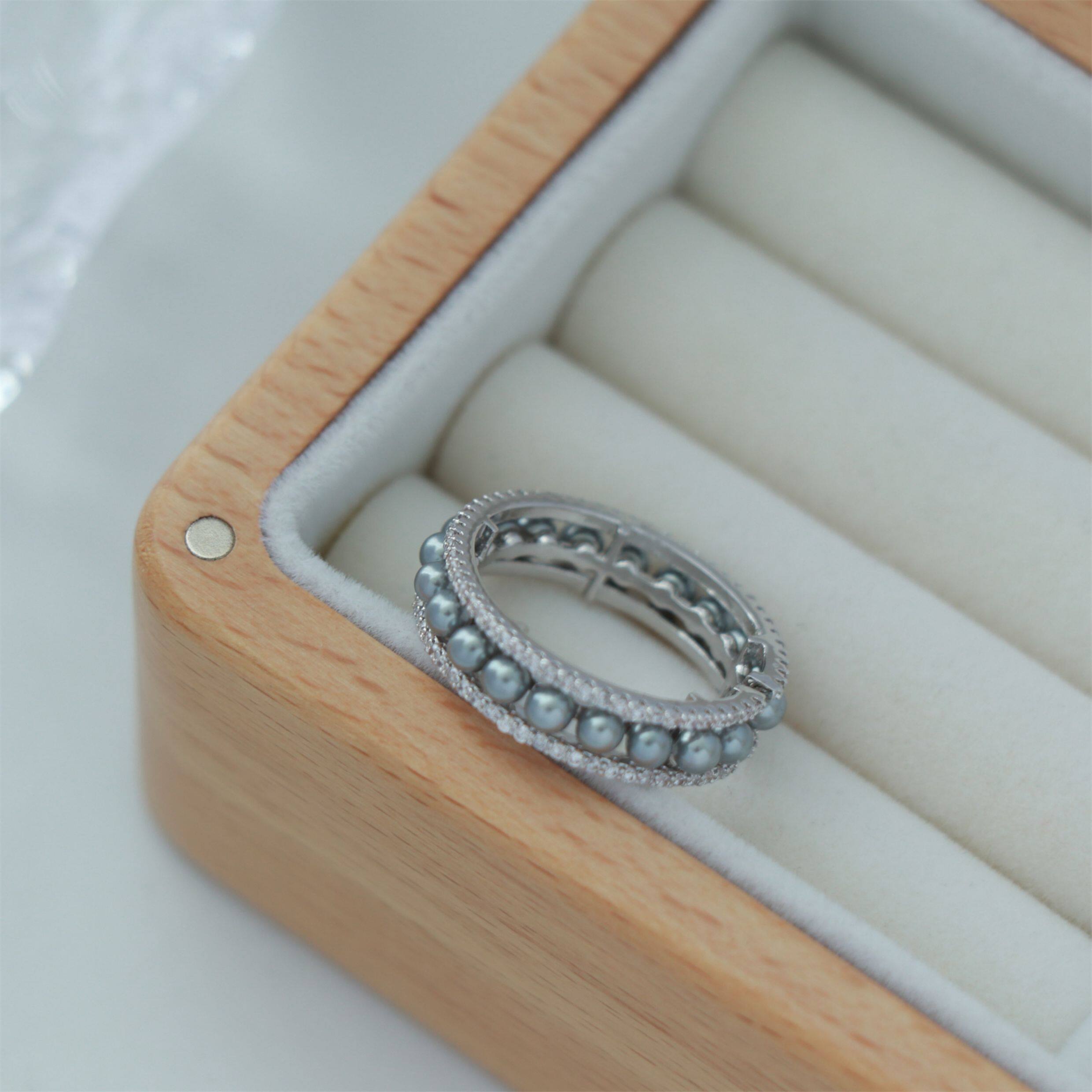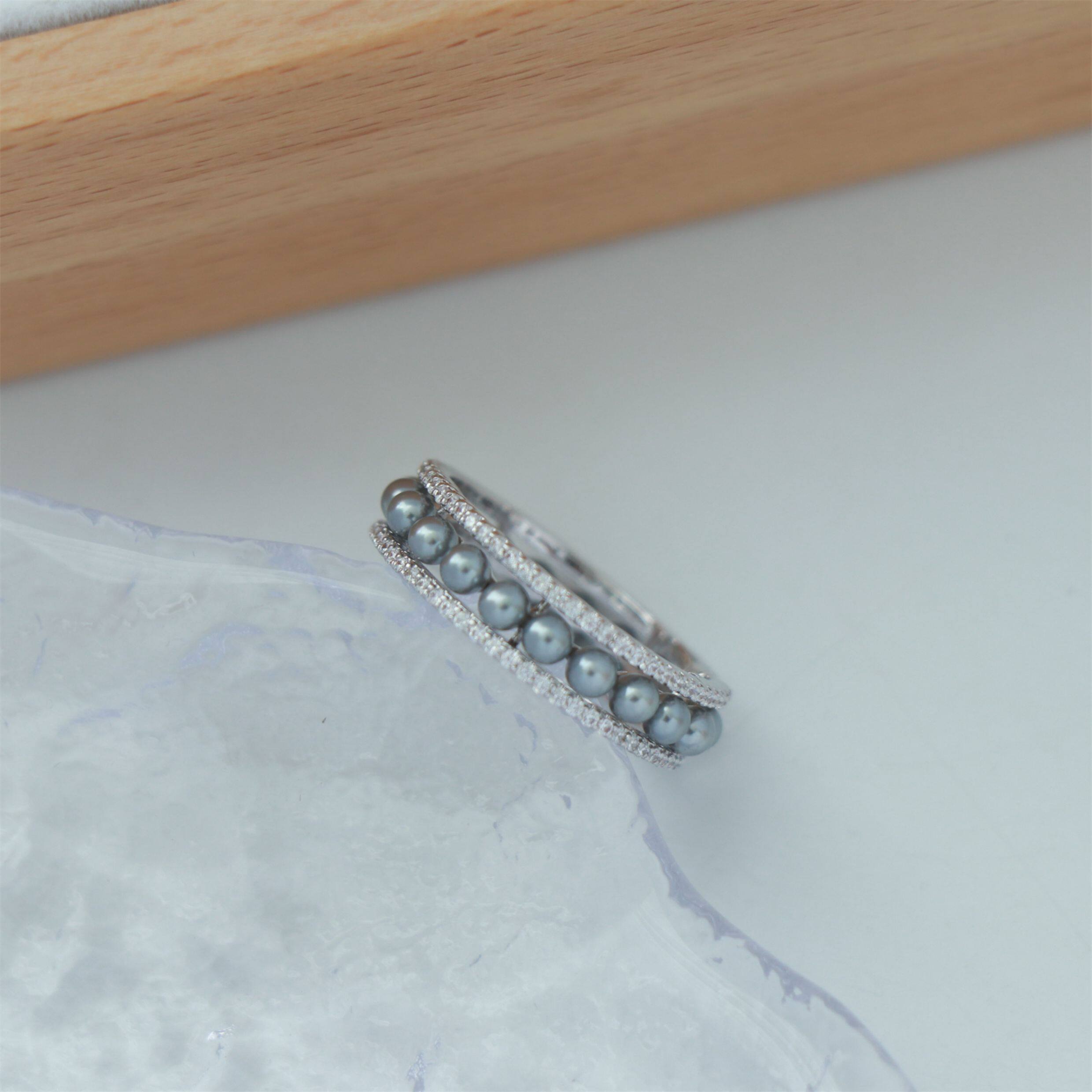 因缺斯汀「法式浪漫」溫婉珍珠相間戒指開口可調節指環女小衆