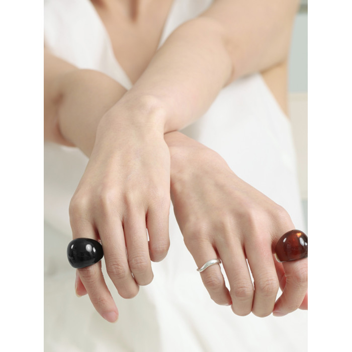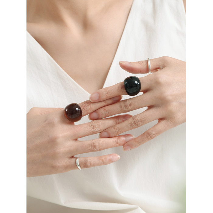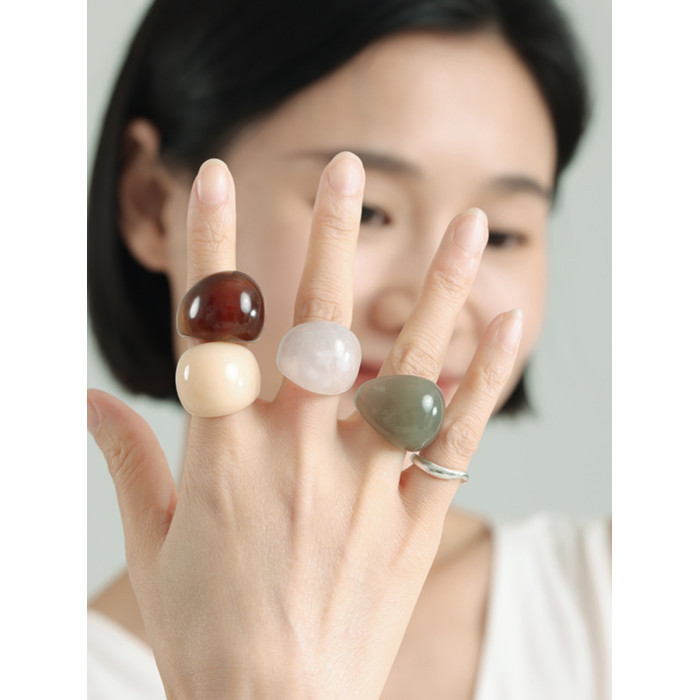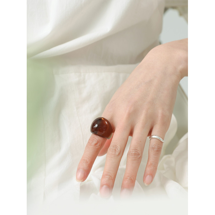 慕陽MUYANG戒指女小衆設計樹脂輕奢高級感爆款食指復古戒2025新款