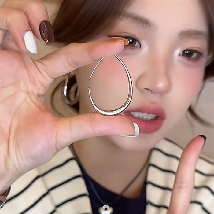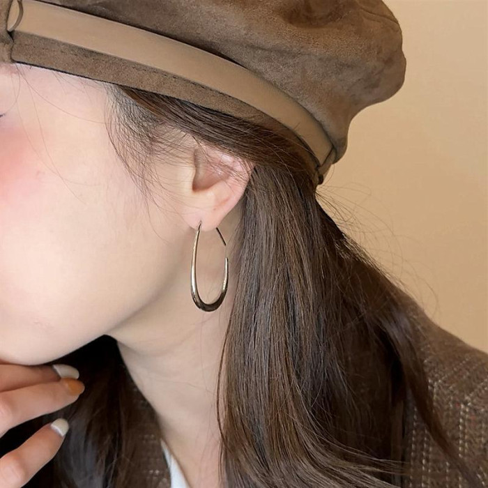 韓國【設計師】S925銀針橢圓水滴耳圈簡約氣質誇張耳飾長款顯瘦