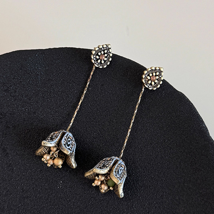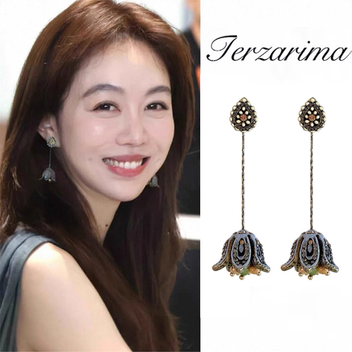 中餐廳薑妍同款花朵耳環波西米亞民族風耳夾長款耳釘流蘇復古耳飾