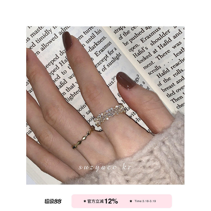suzyacc kr超閃水鑽開口戒指2025年新款潮小衆設計食指戒時尚個性
