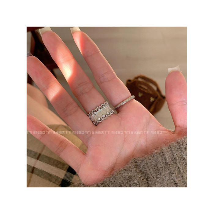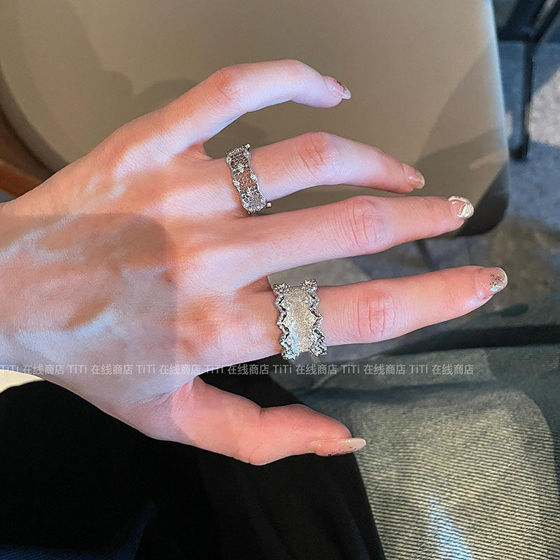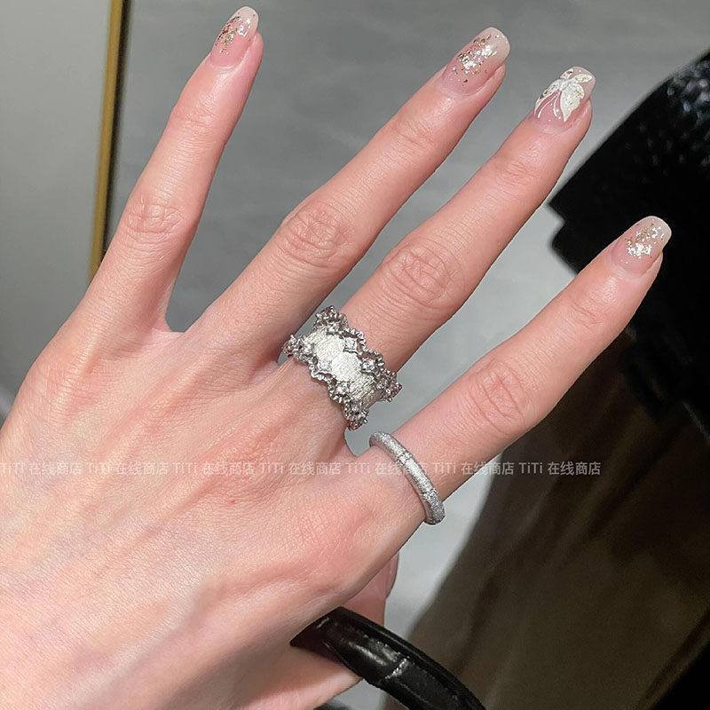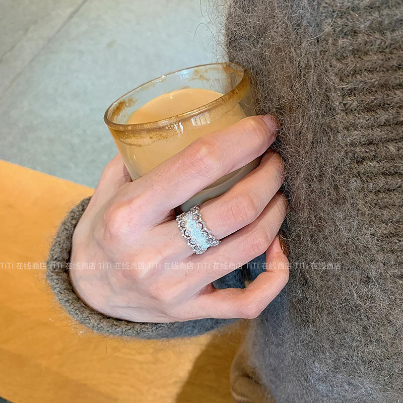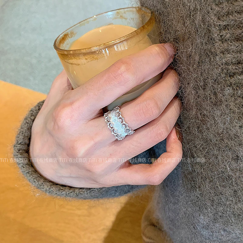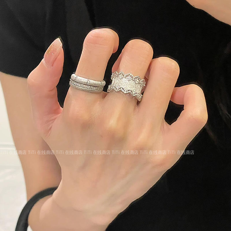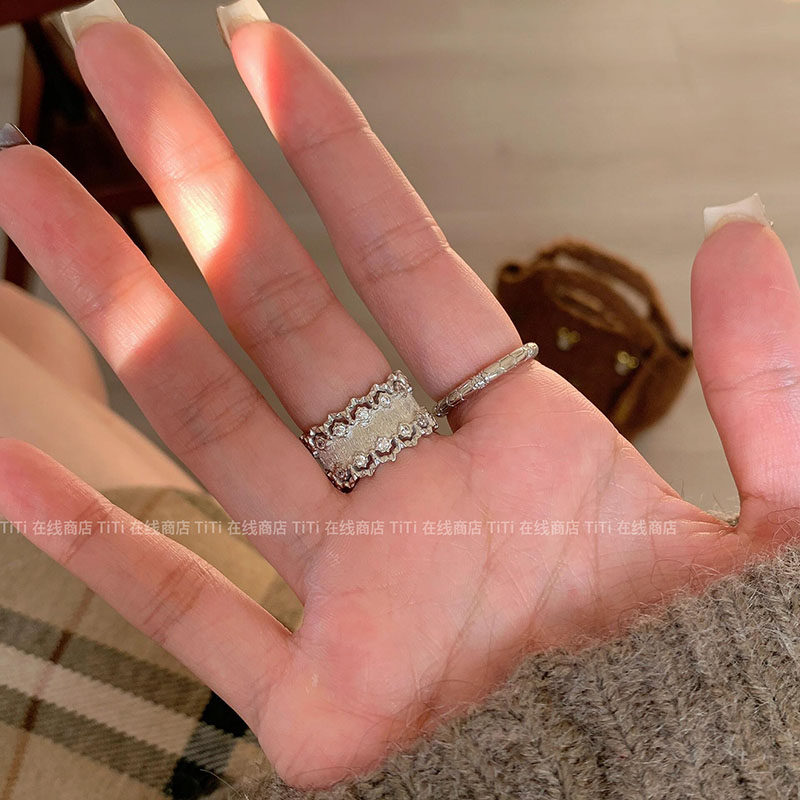 TiTi 復古輕奢重工鏤空蕾絲拉絲鑲鑽戒指個性百搭高級感精緻指環