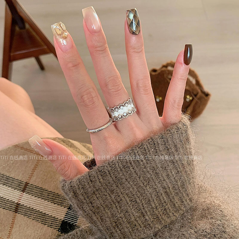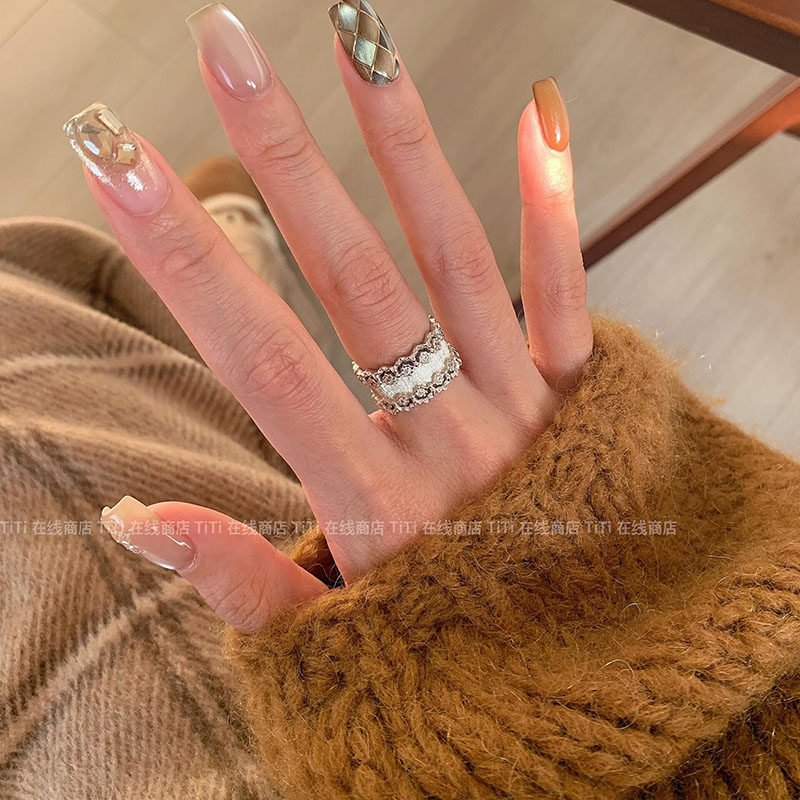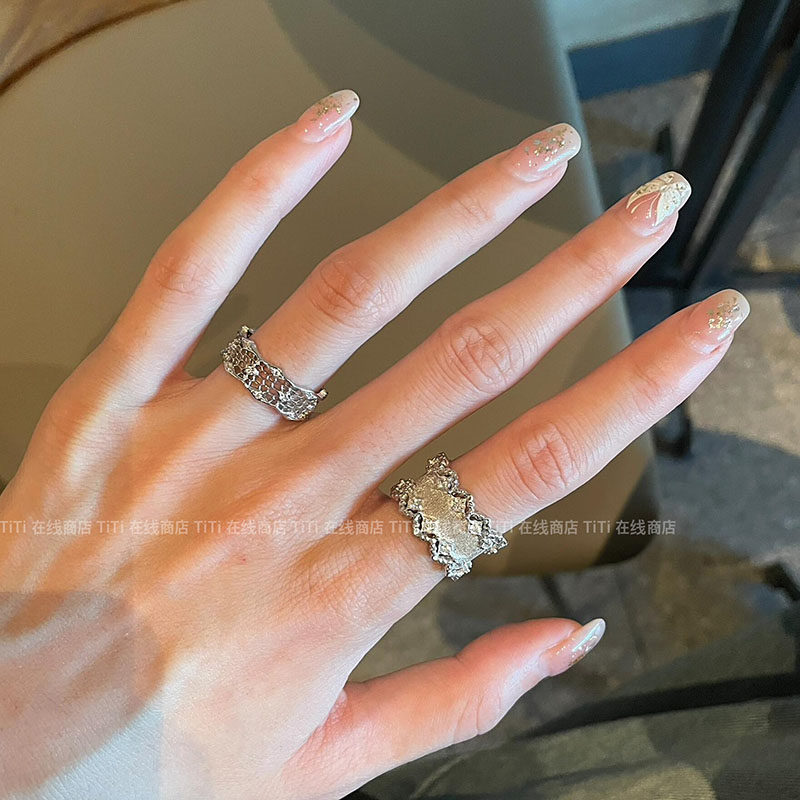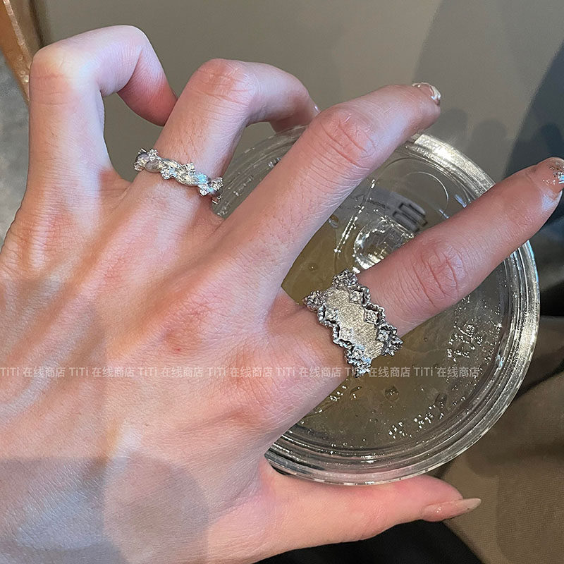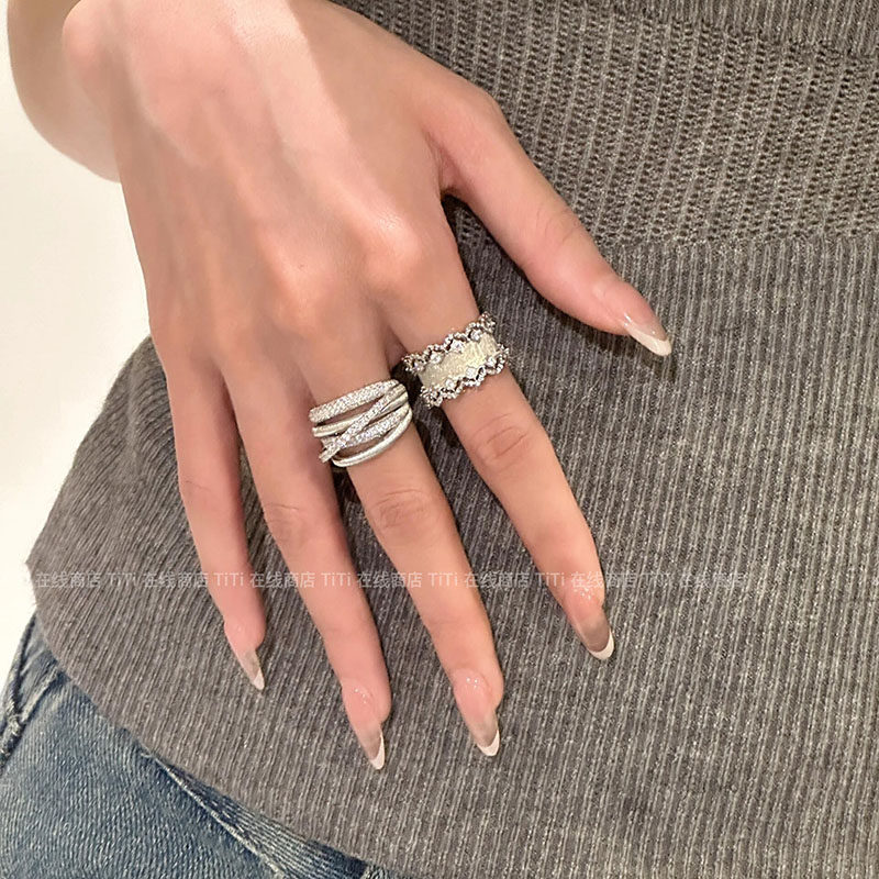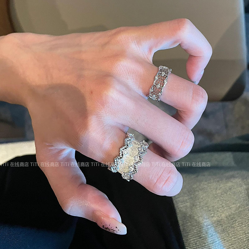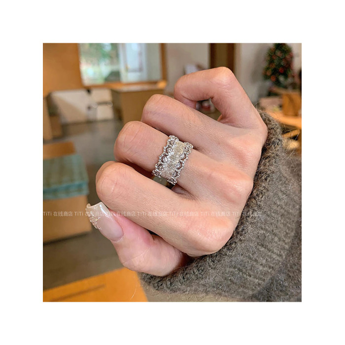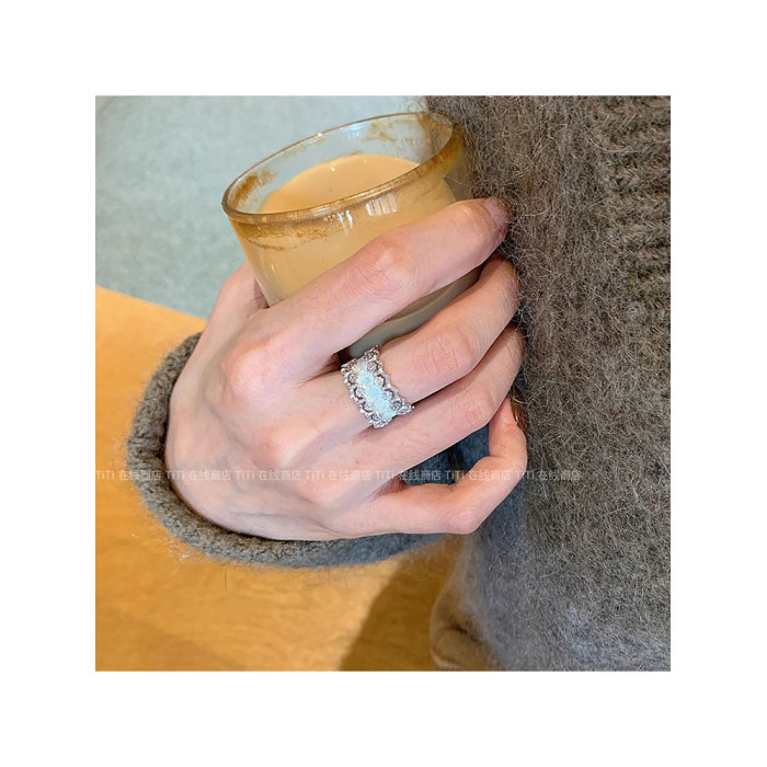 TiTi 復古輕奢重工鏤空蕾絲拉絲鑲鑽戒指個性百搭高級感精緻指環
