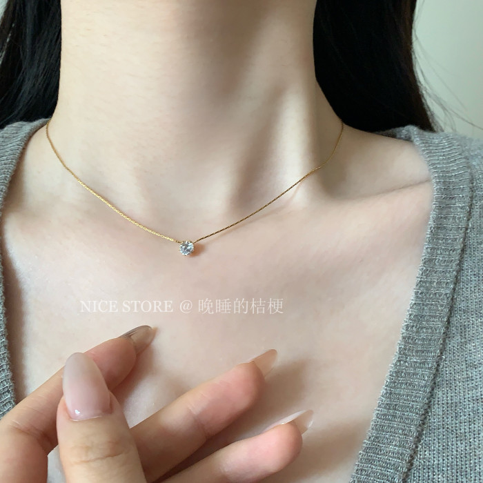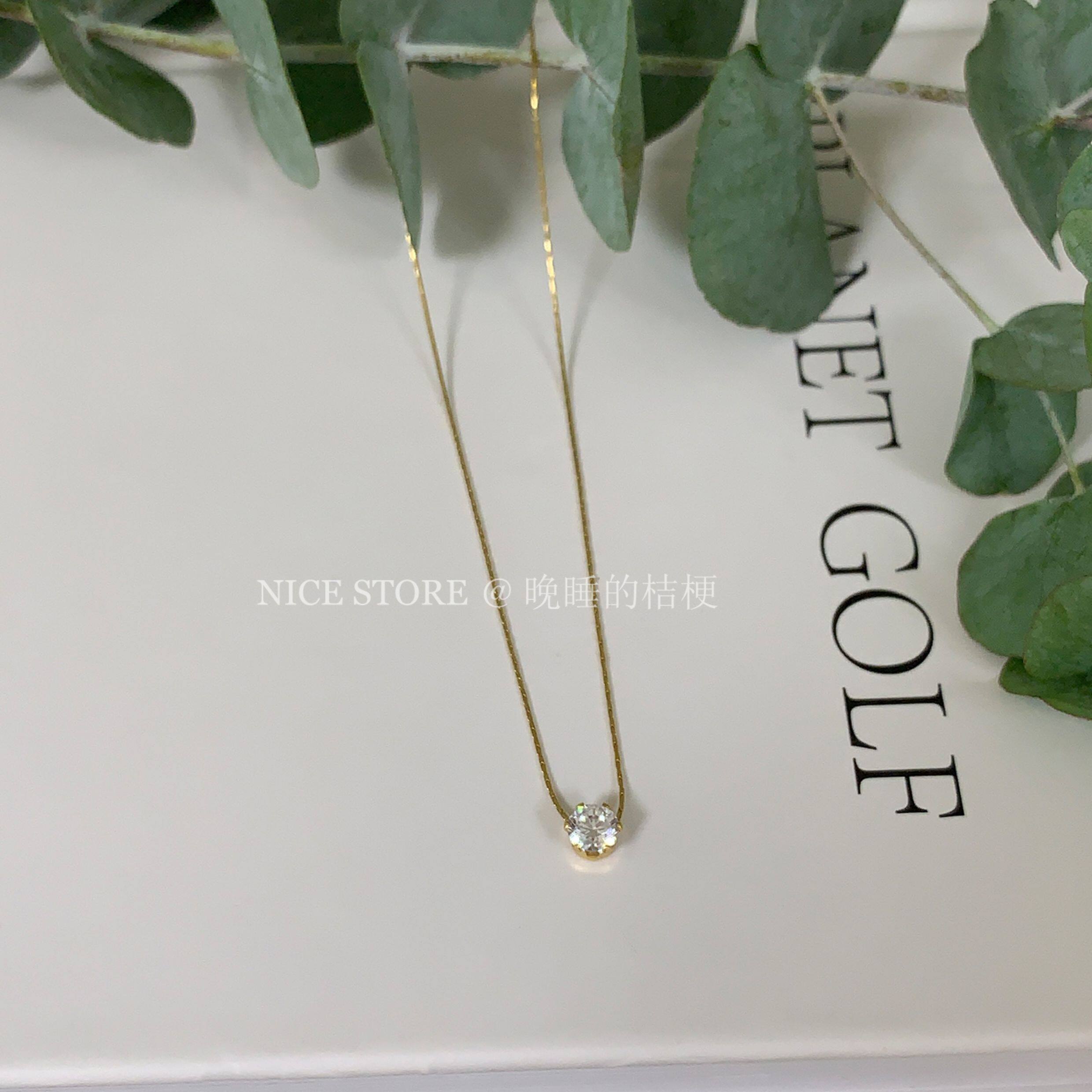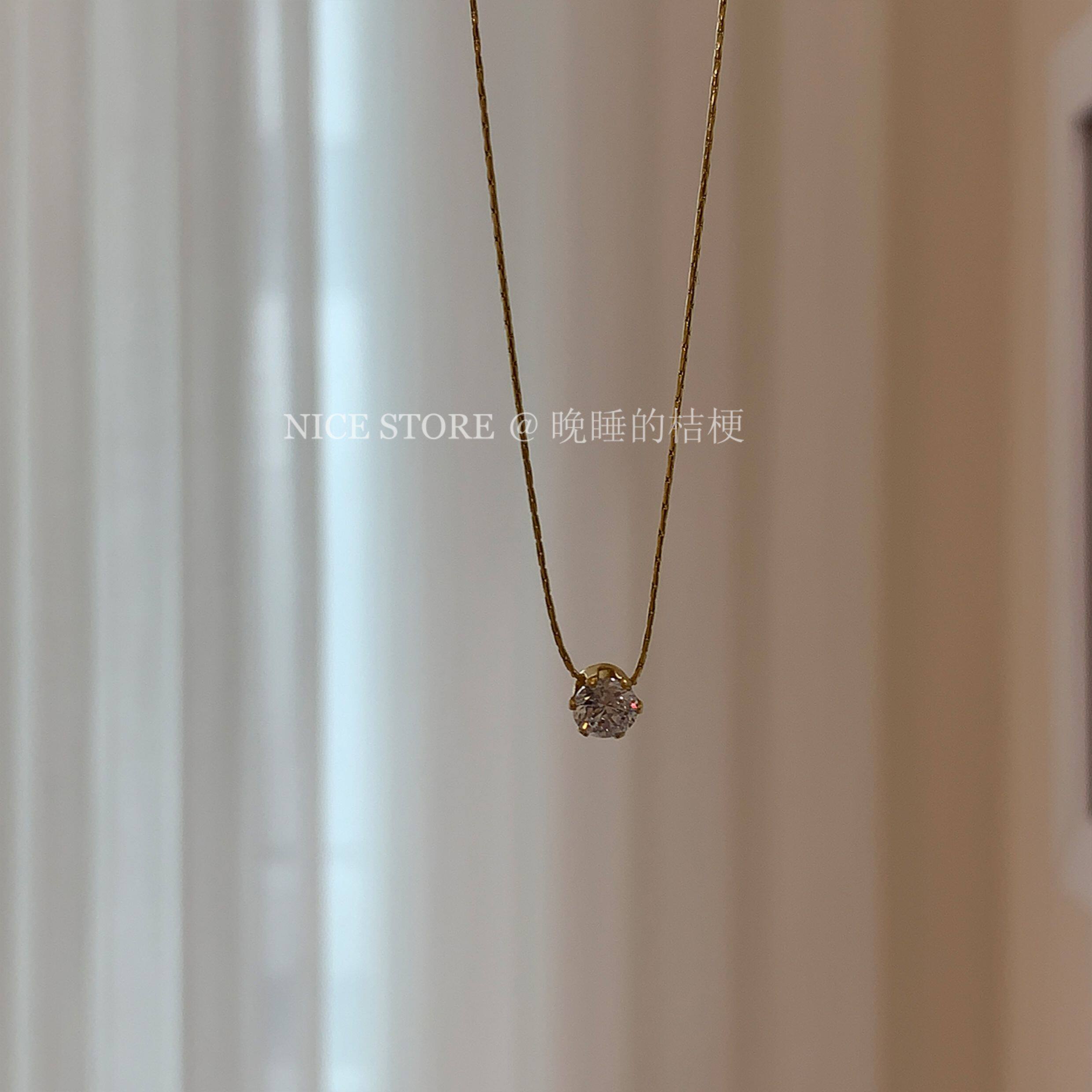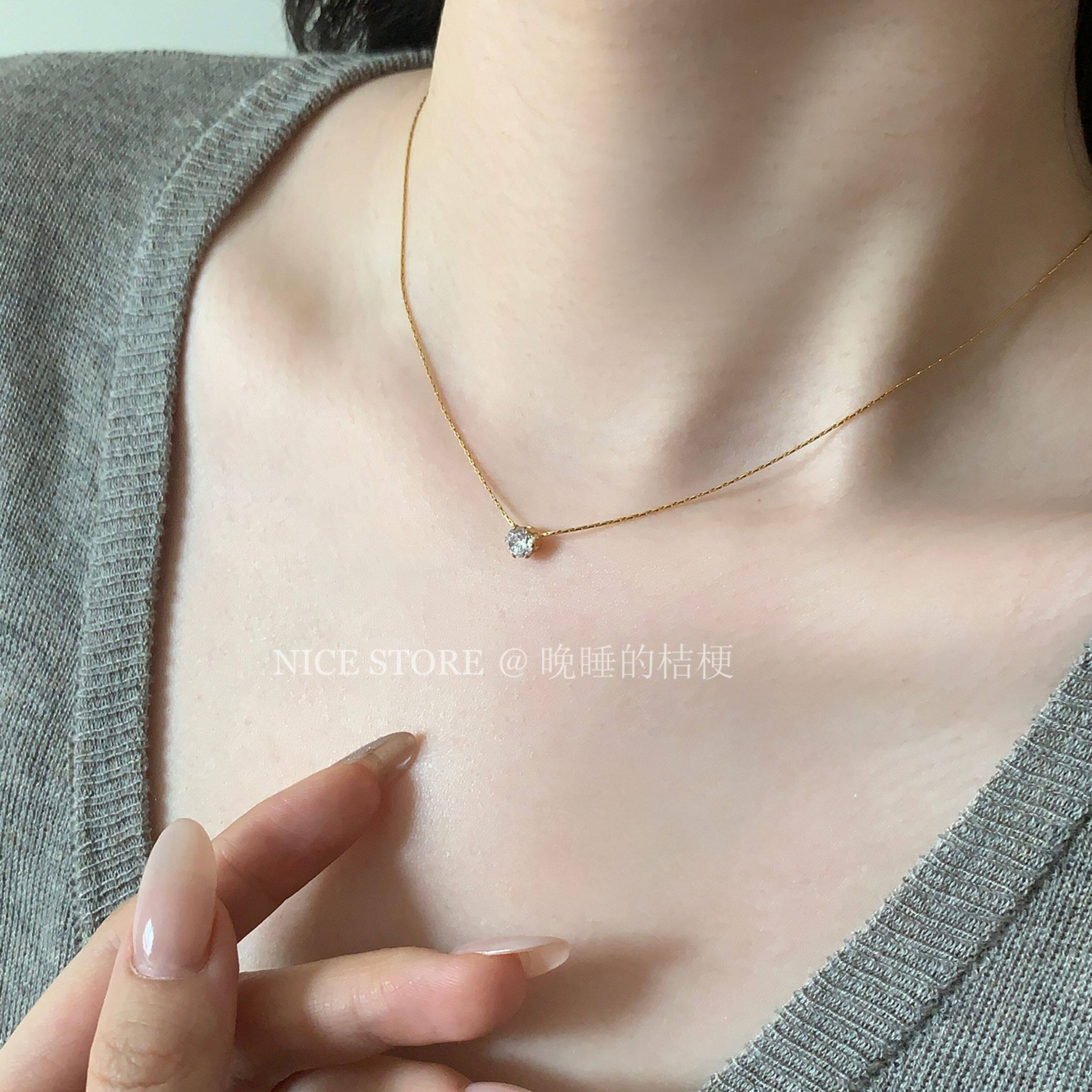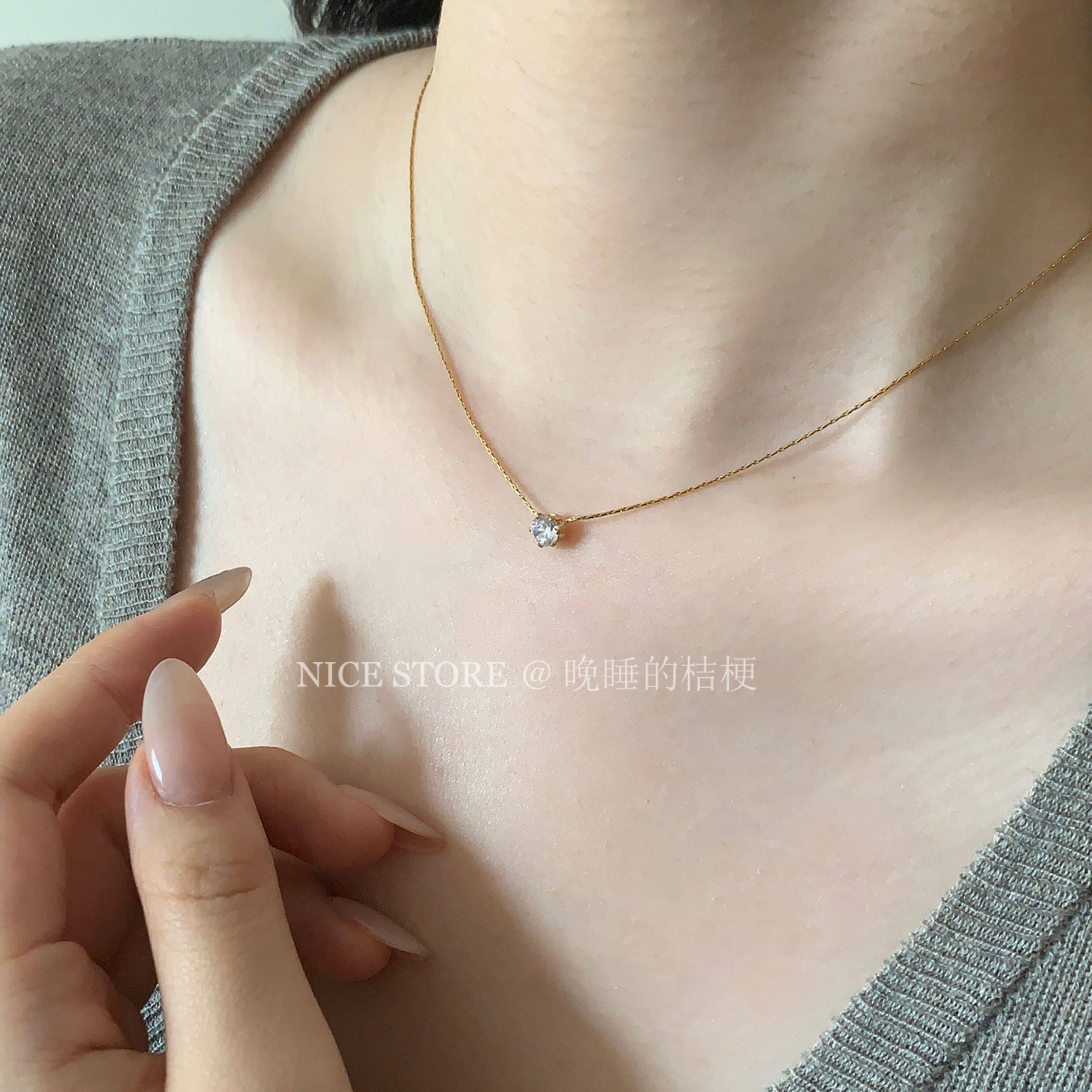 晚睡的桔梗「恒星」韓系ins風一顆鋯石鈦鋼項鍊mini隱形鎖骨鍊女