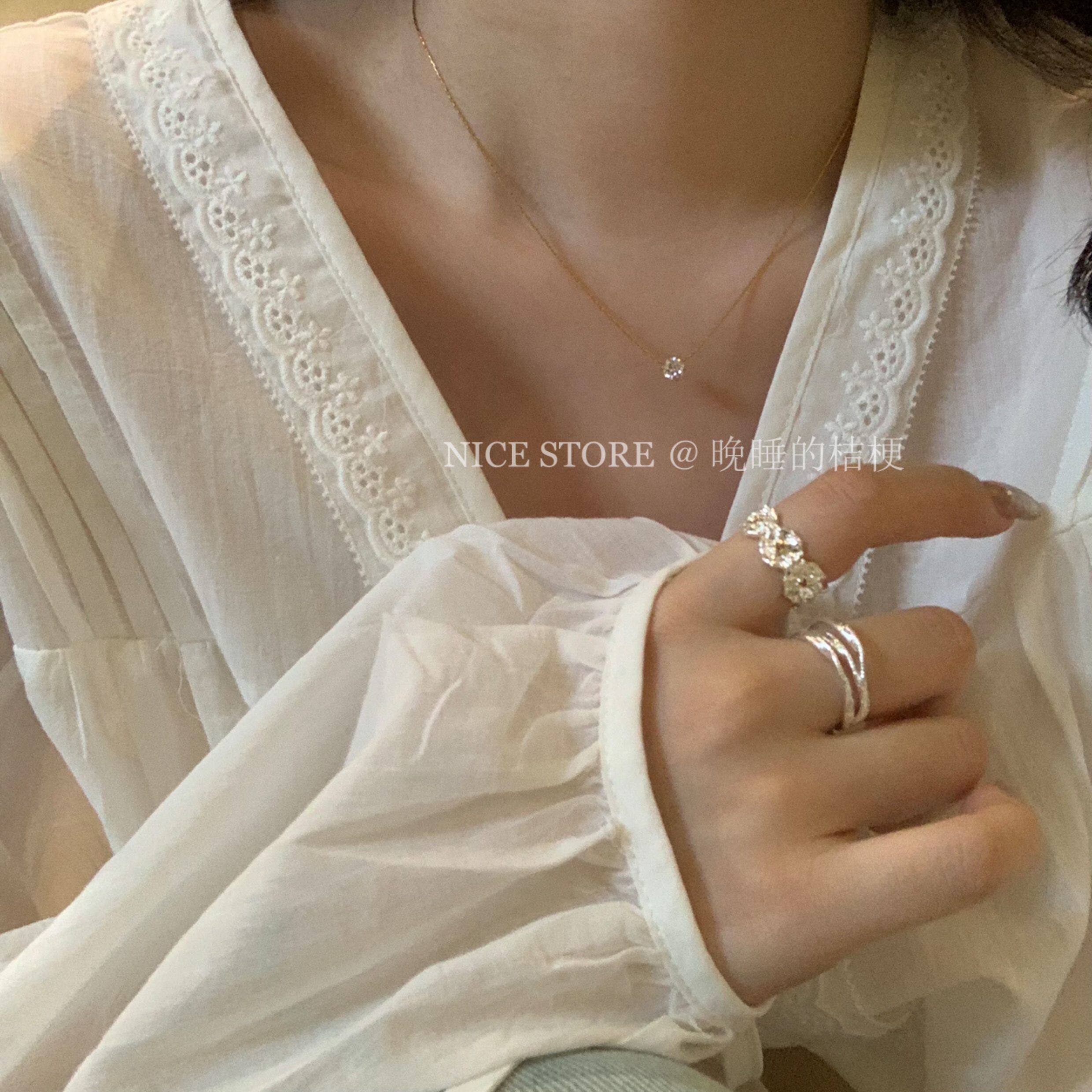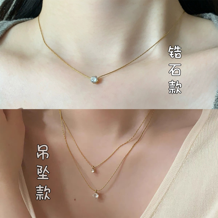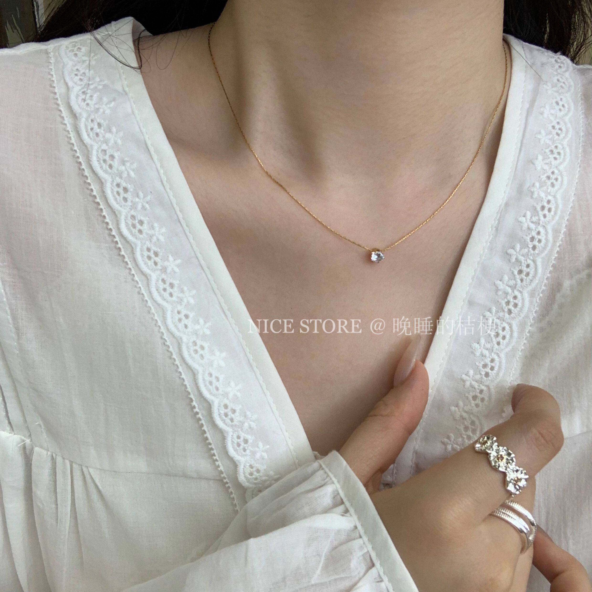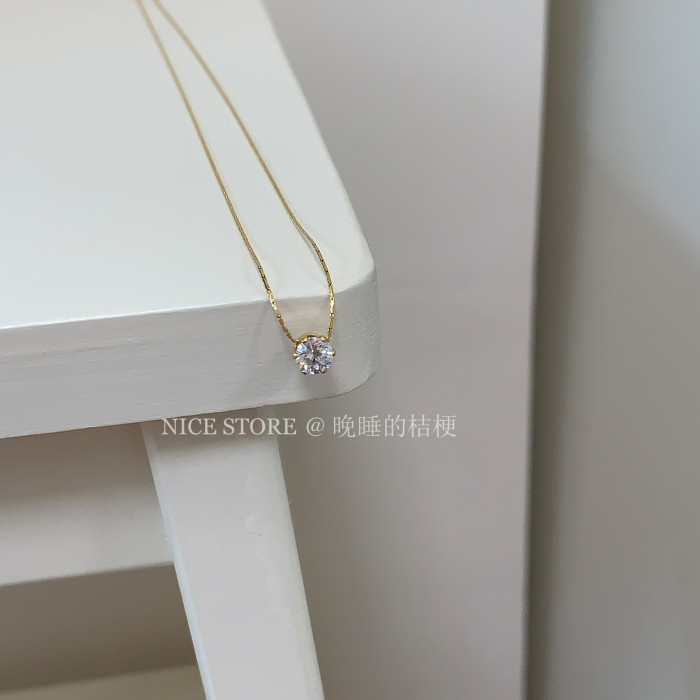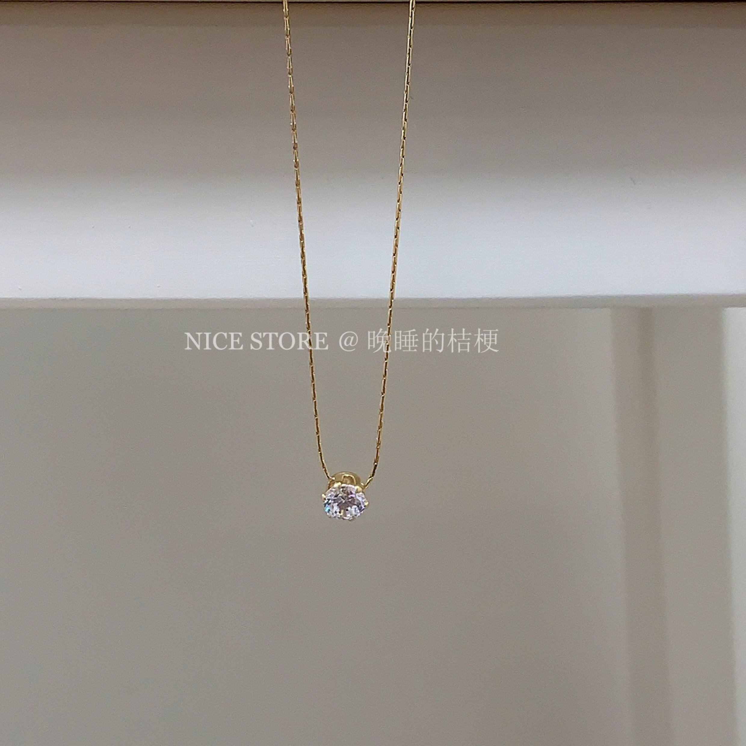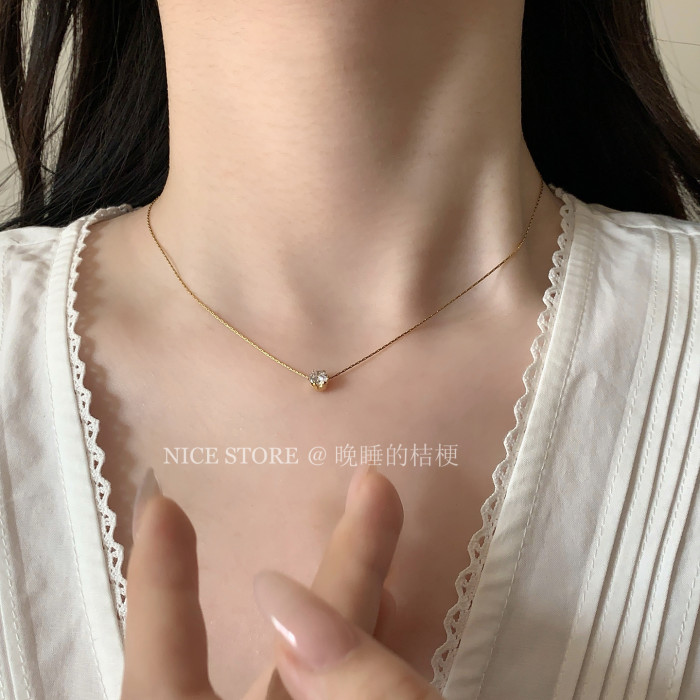 晚睡的桔梗「恒星」韓系ins風一顆鋯石鈦鋼項鍊mini隱形鎖骨鍊女