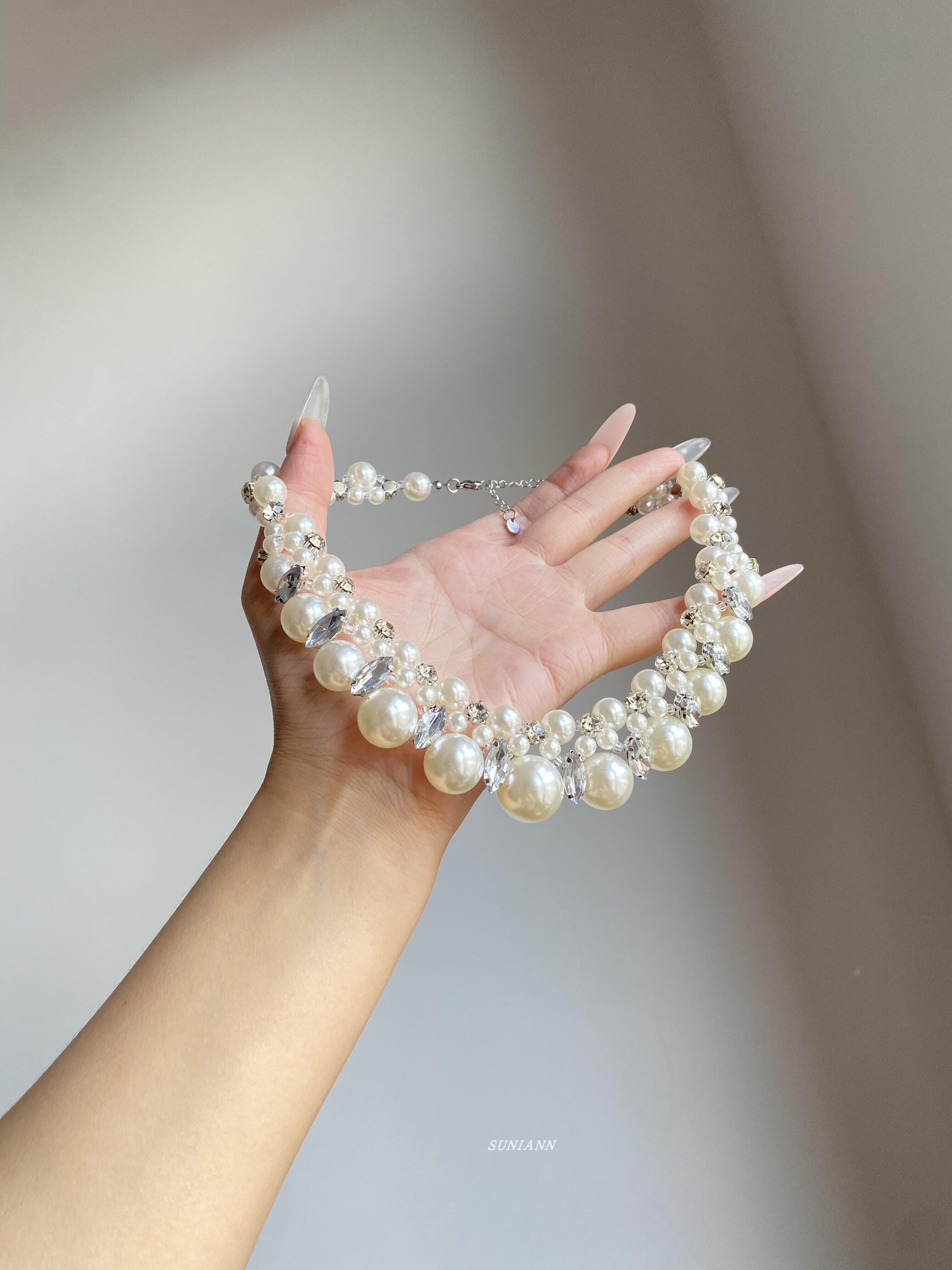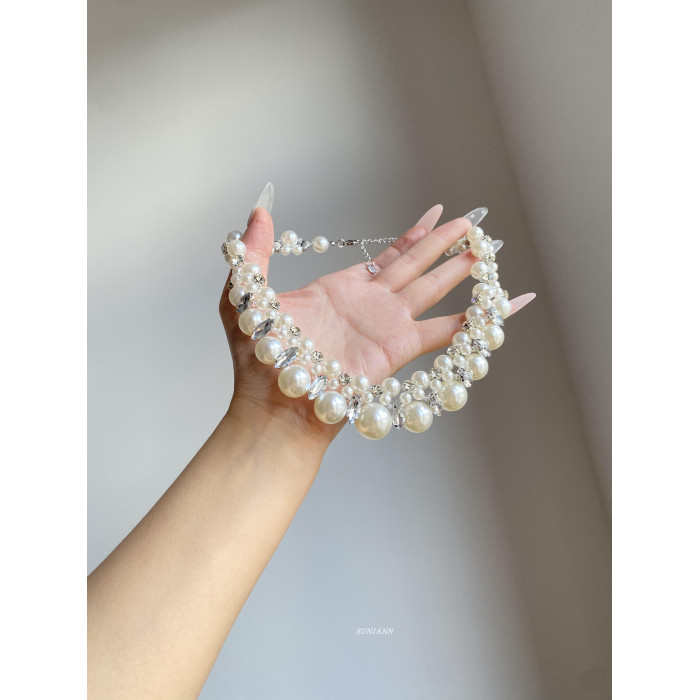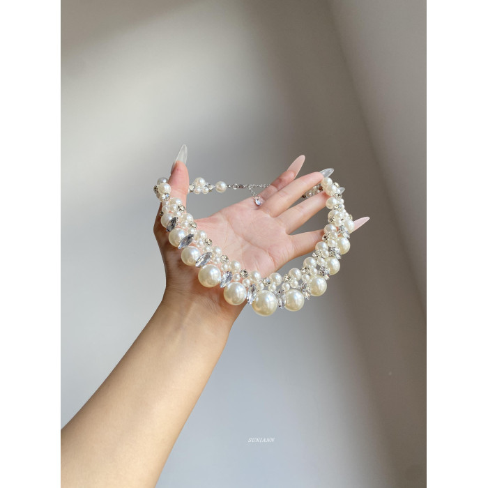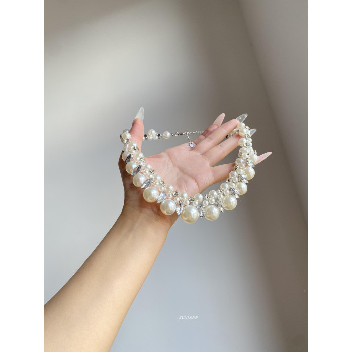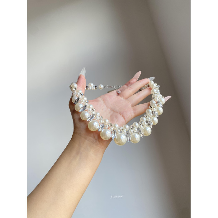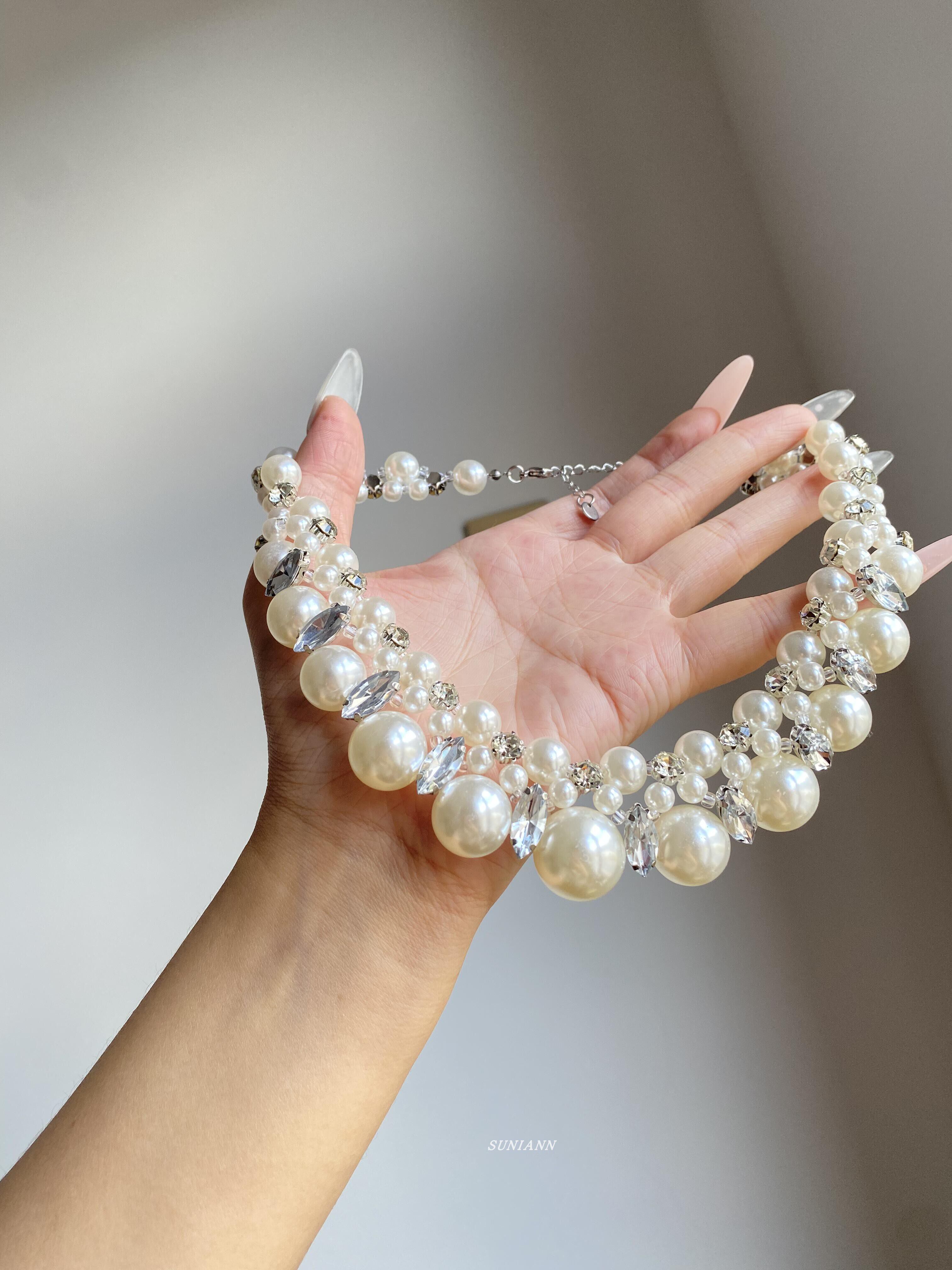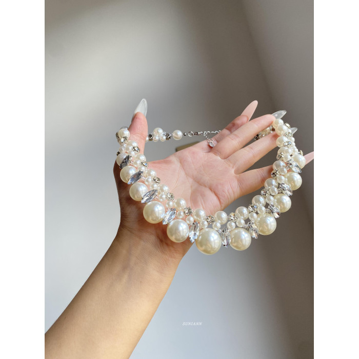 重工復古閃鑽珍珠choker項鍊女宮廷風鎖骨鍊輕奢高級感氣質頸鏈潮