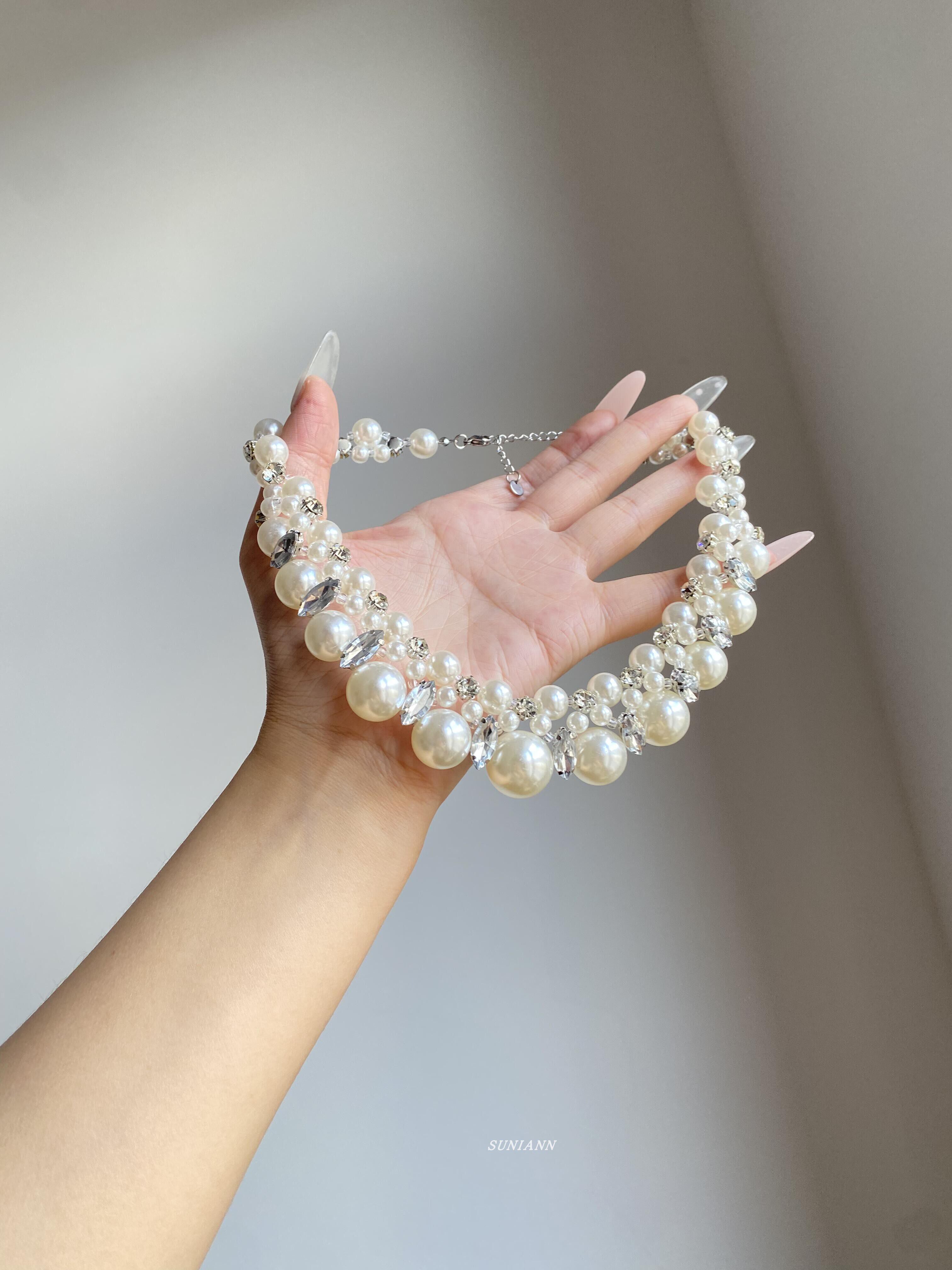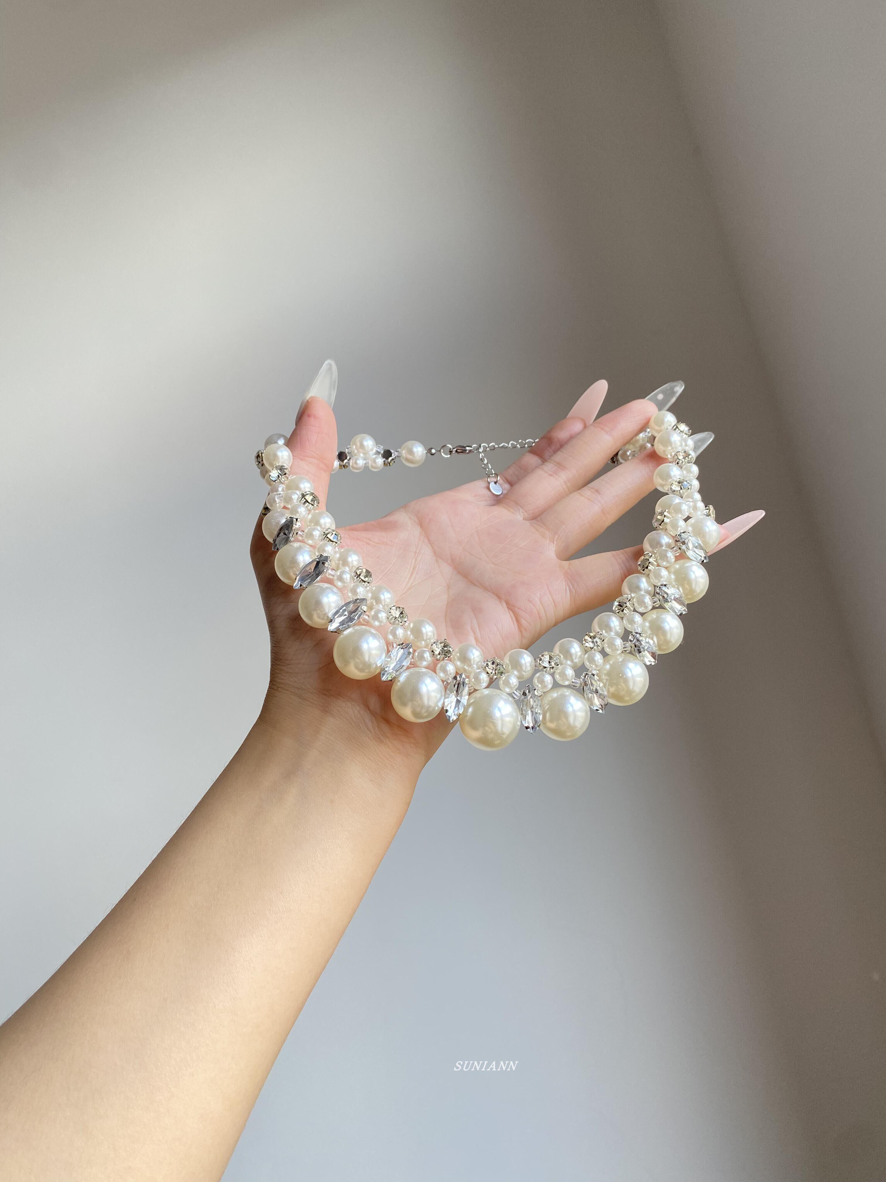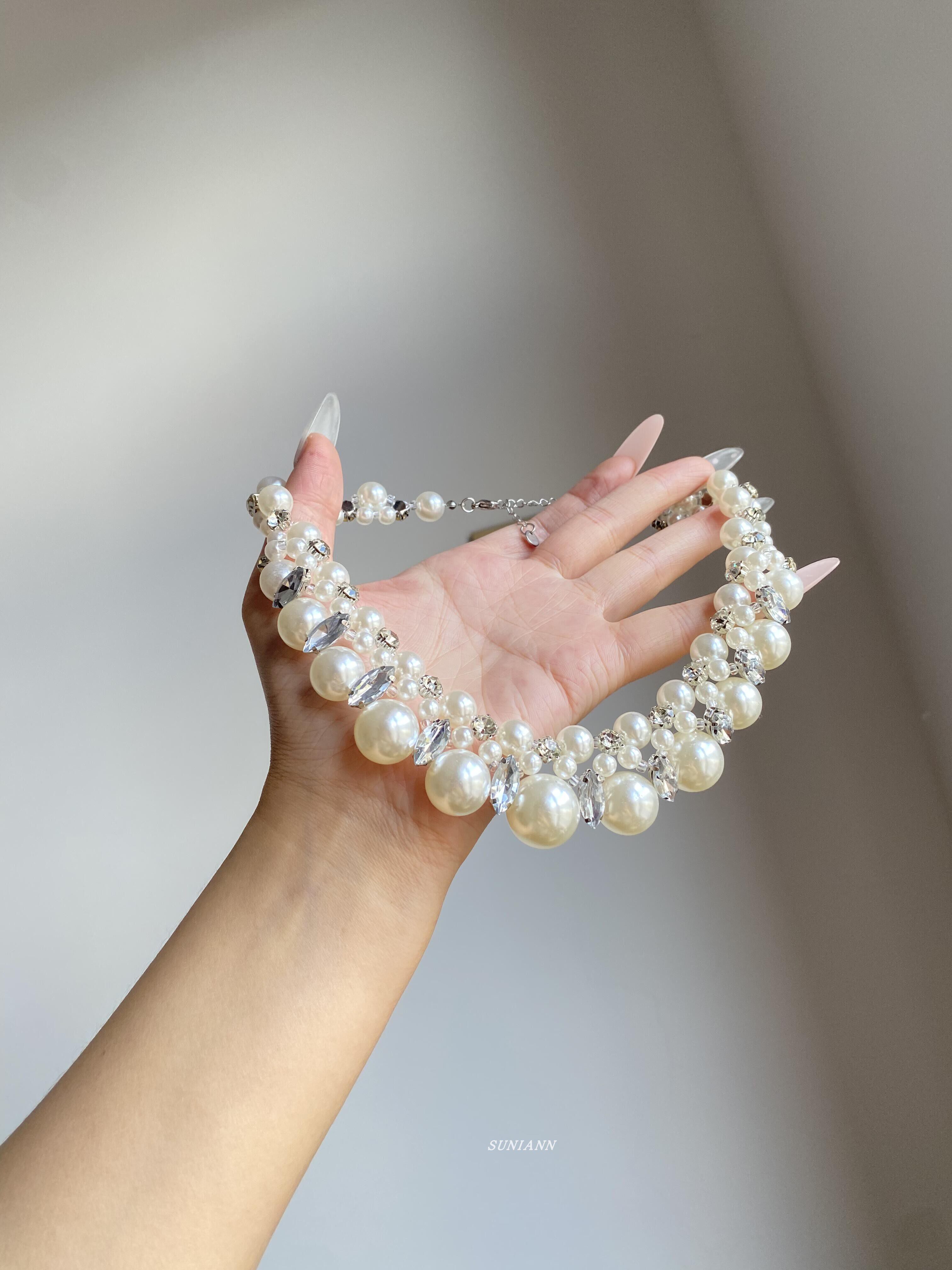 重工復古閃鑽珍珠choker項鍊女宮廷風鎖骨鍊輕奢高級感氣質頸鏈潮