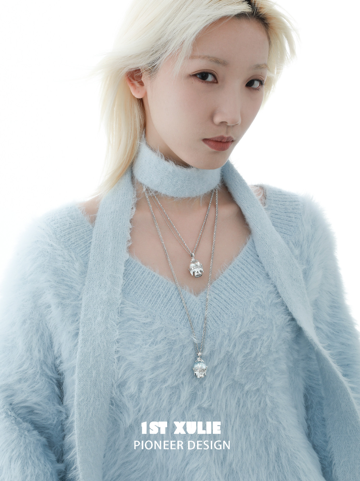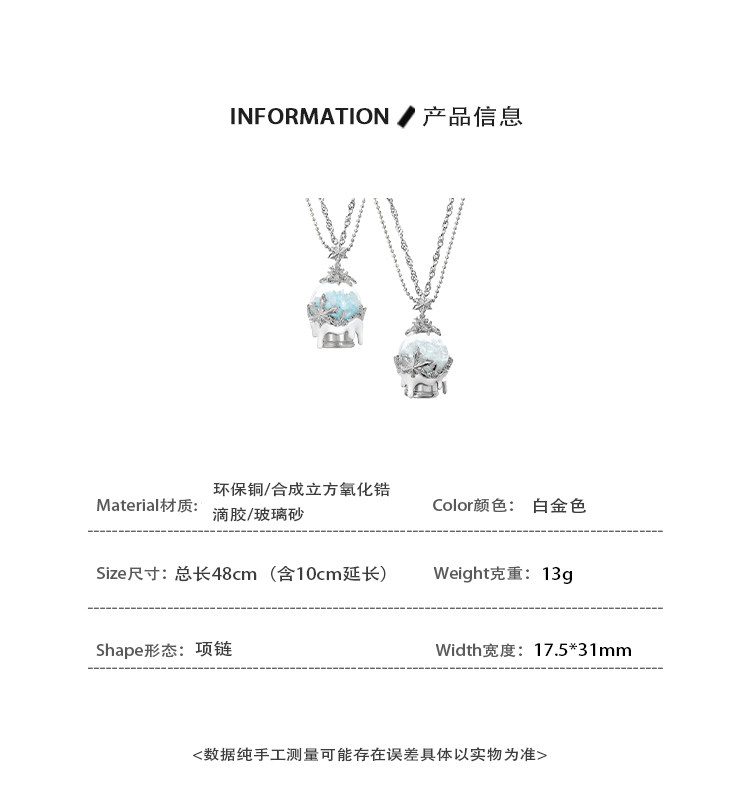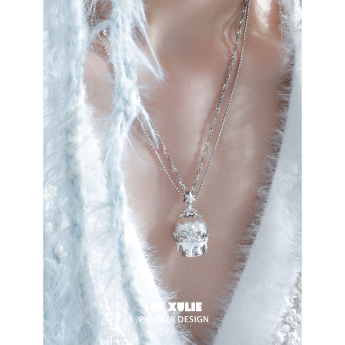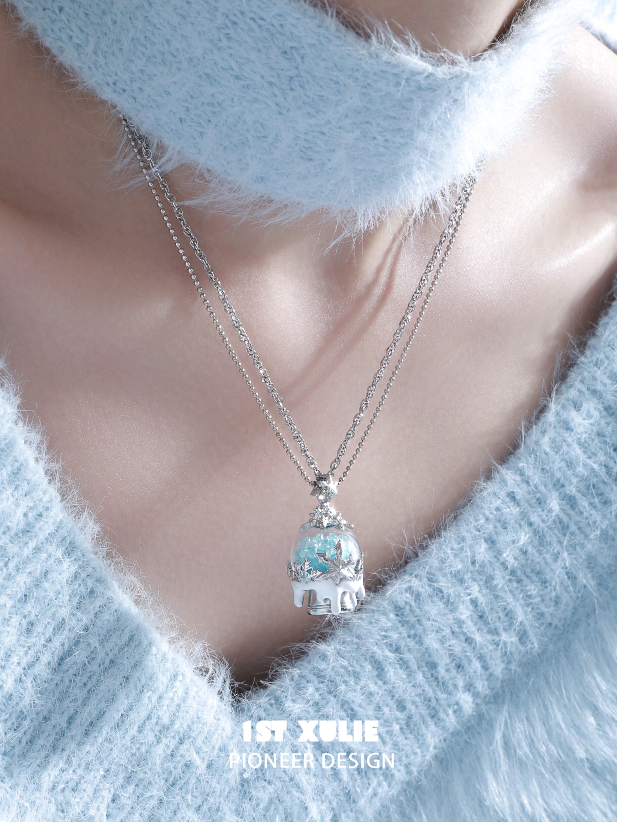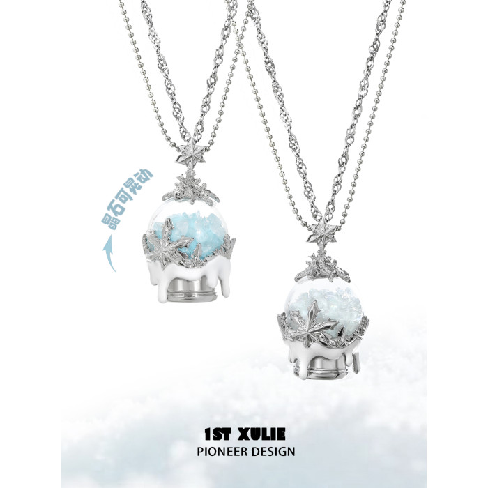 1STXULIE雪花水晶球情侶項鍊原創小衆設計高級感秋冬毛衣鏈鎖骨鍊