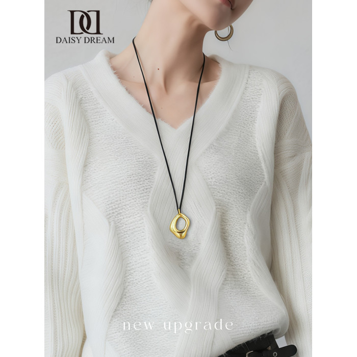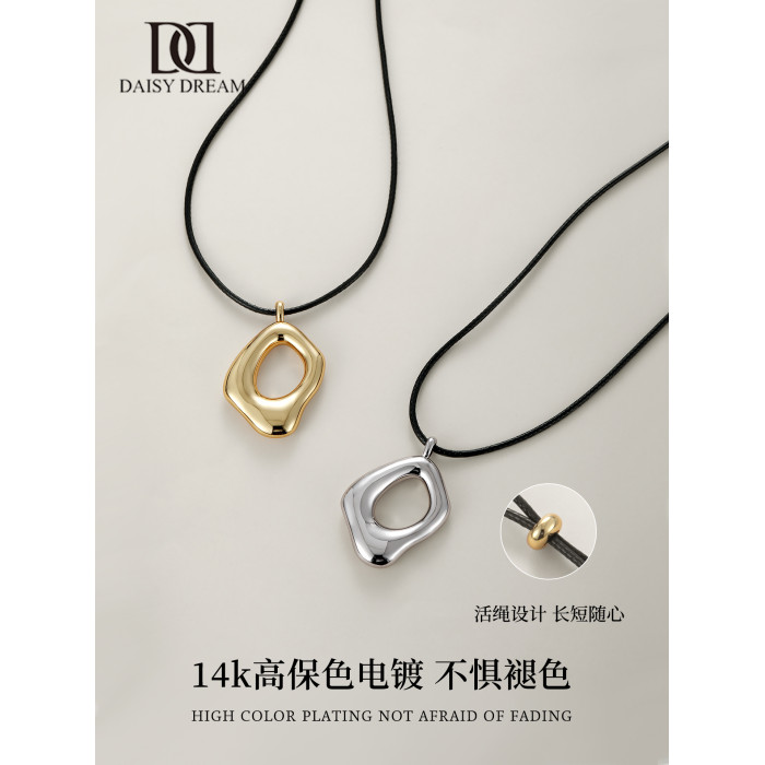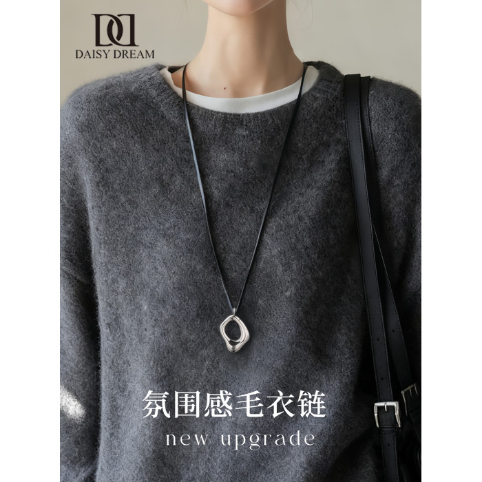 金屬吊墜黑繩項鍊女長款高級感可調節毛衣鏈2026新款輕奢小衆配飾