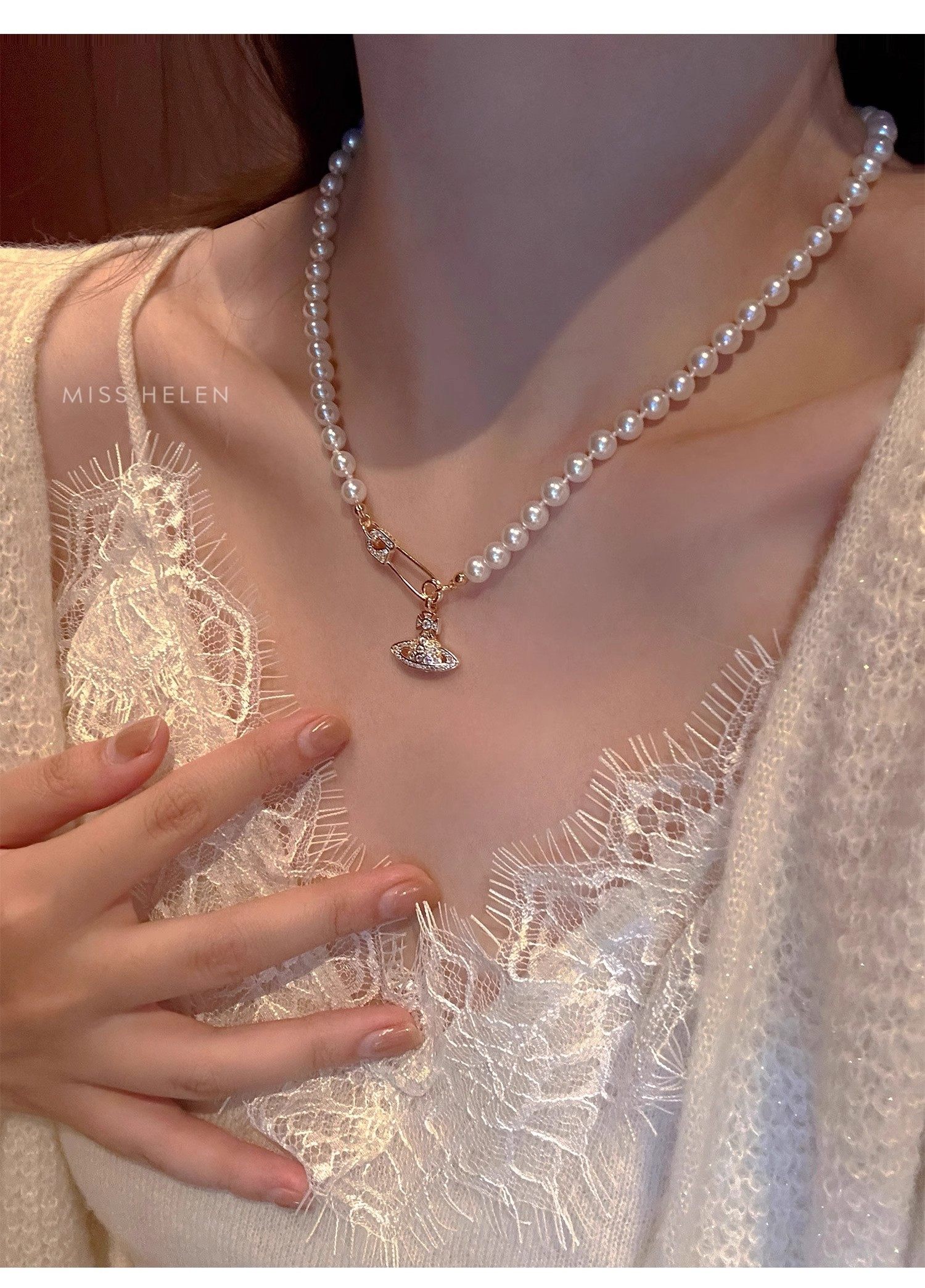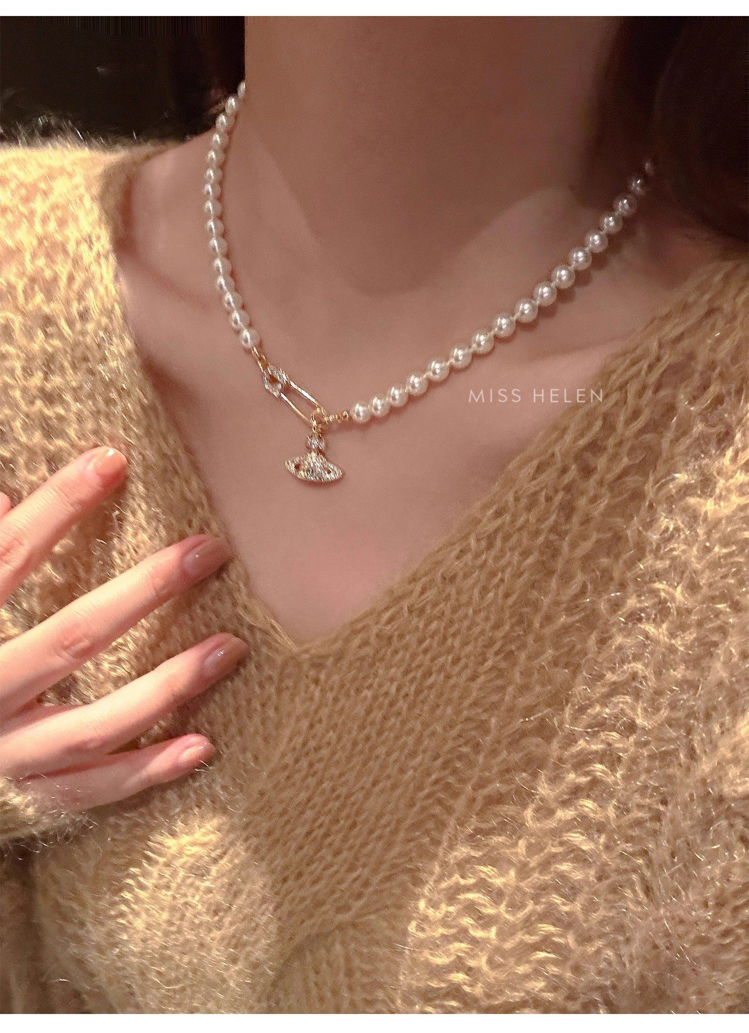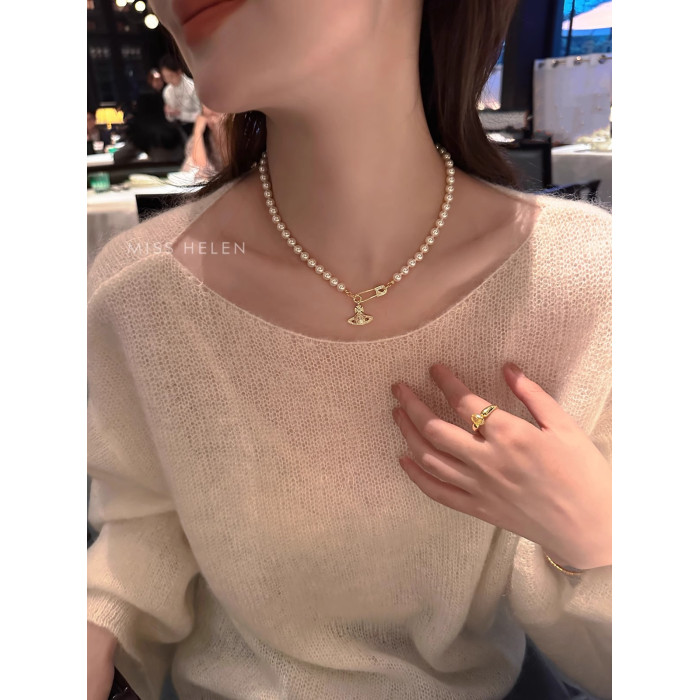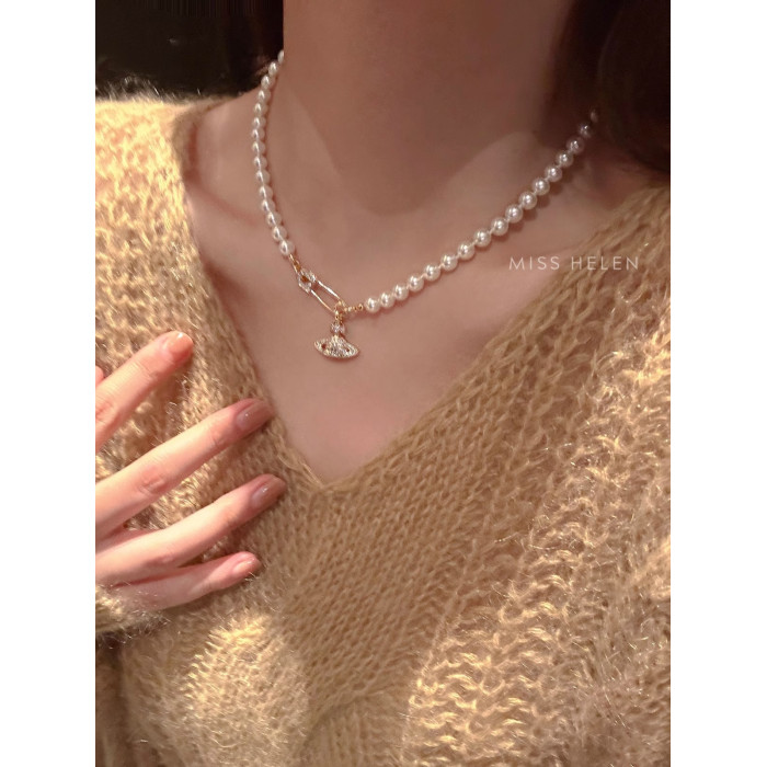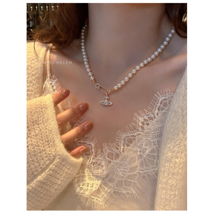 西太後土星珍珠項鍊女2026新款鎖骨鍊高級感輕奢小衆毛衣頸鏈配飾