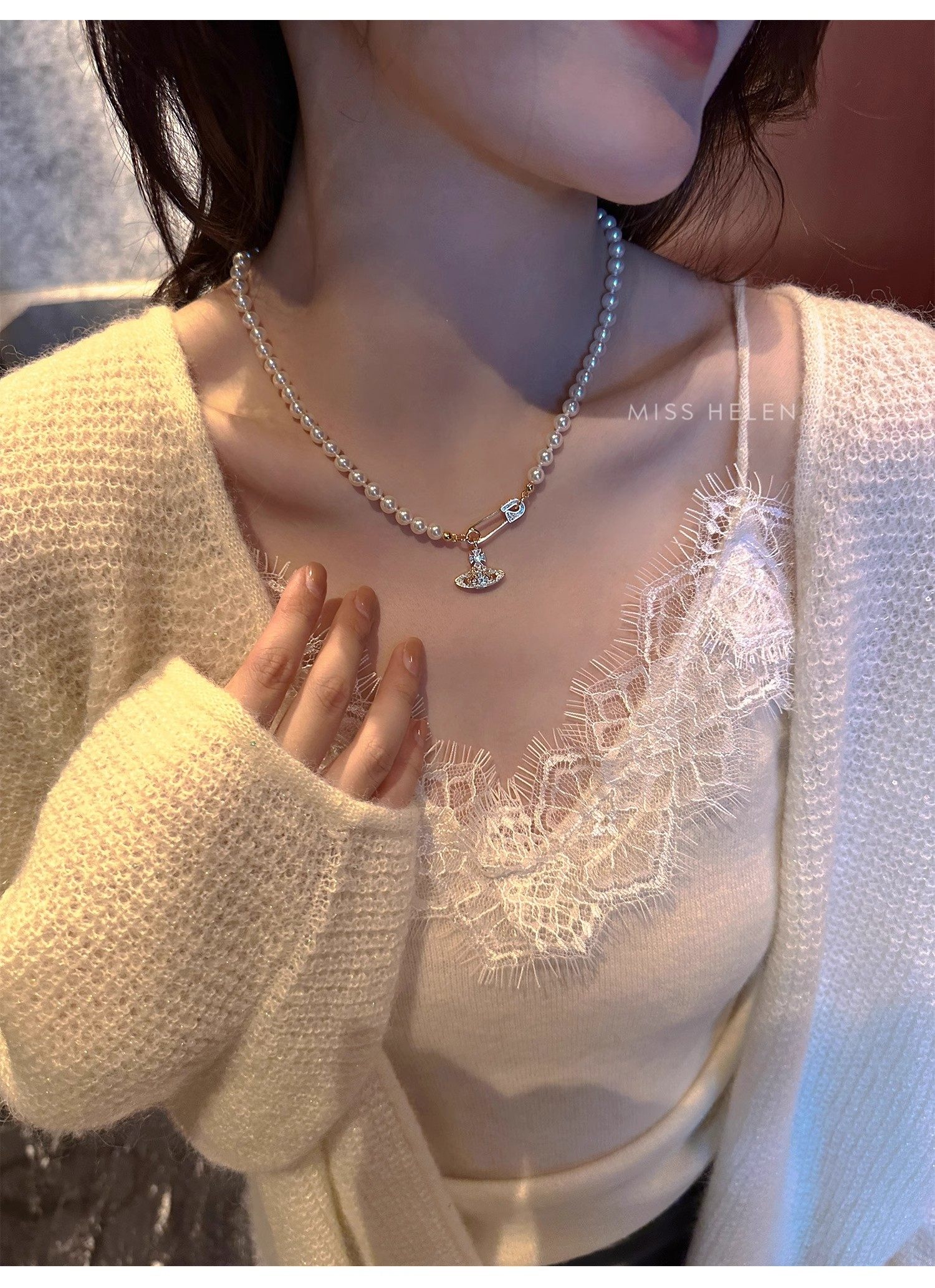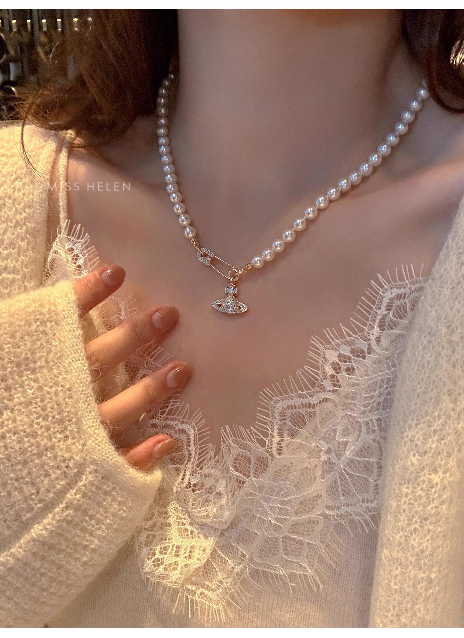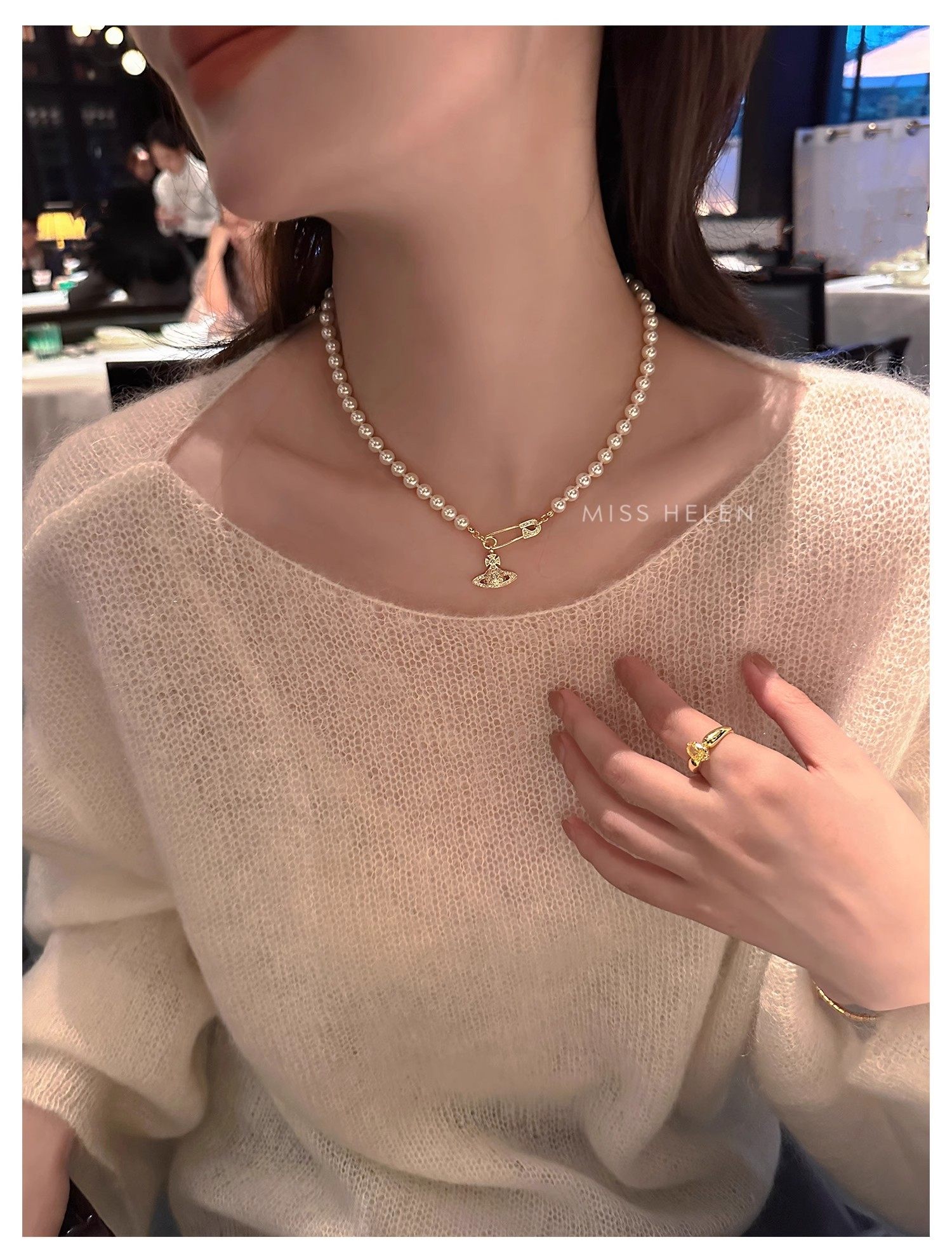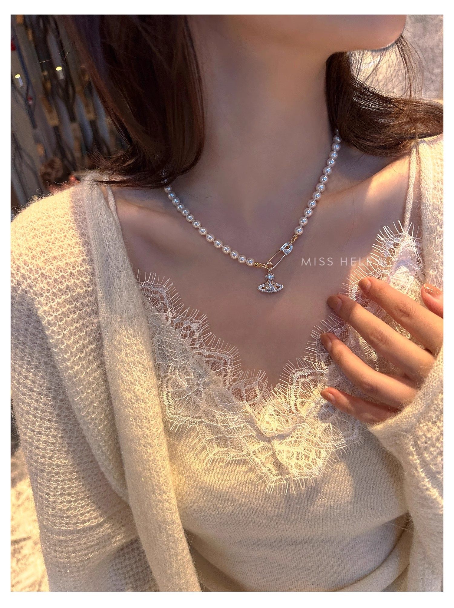 西太後土星珍珠項鍊女2026新款鎖骨鍊高級感輕奢小衆毛衣頸鏈配飾