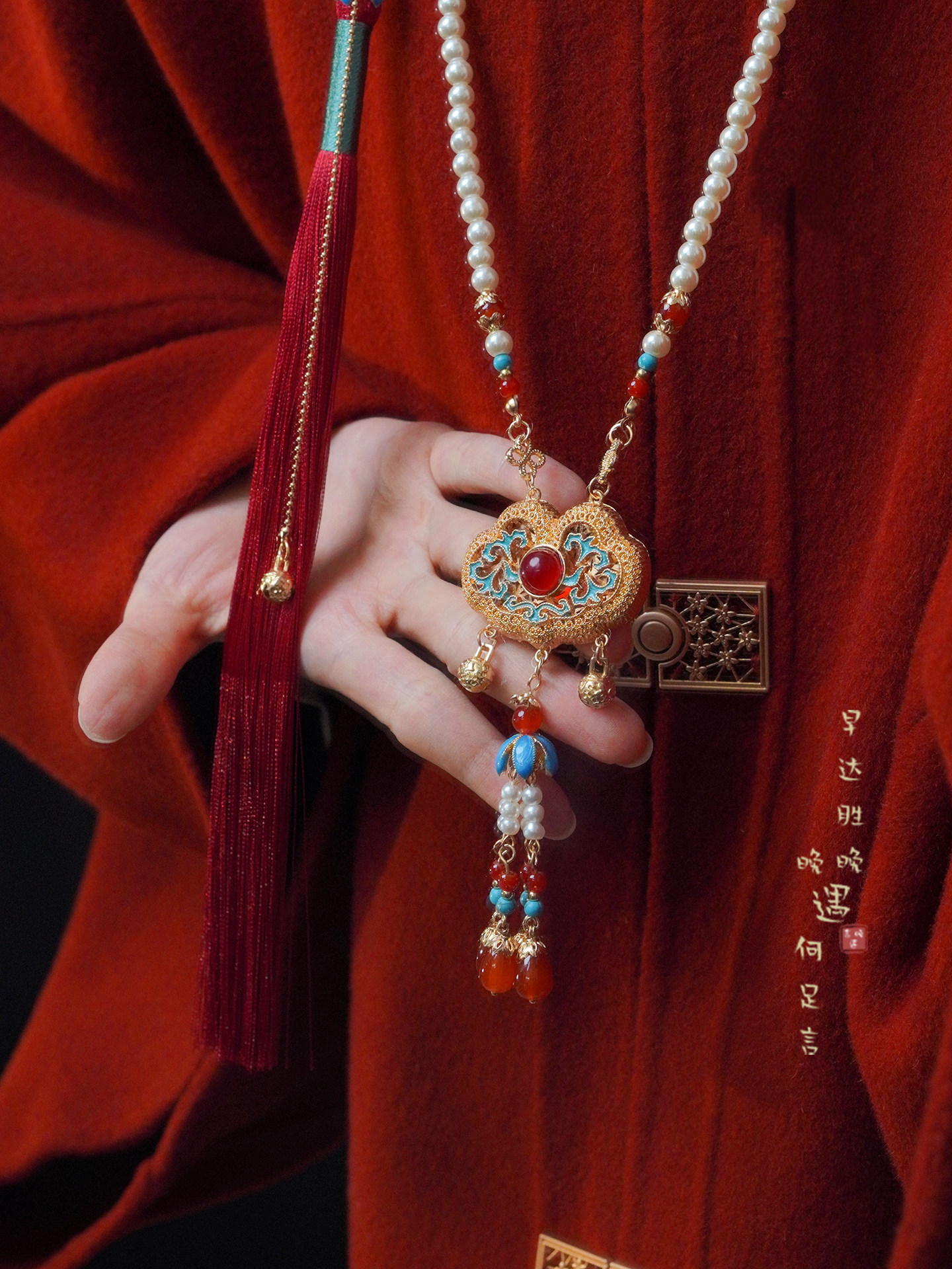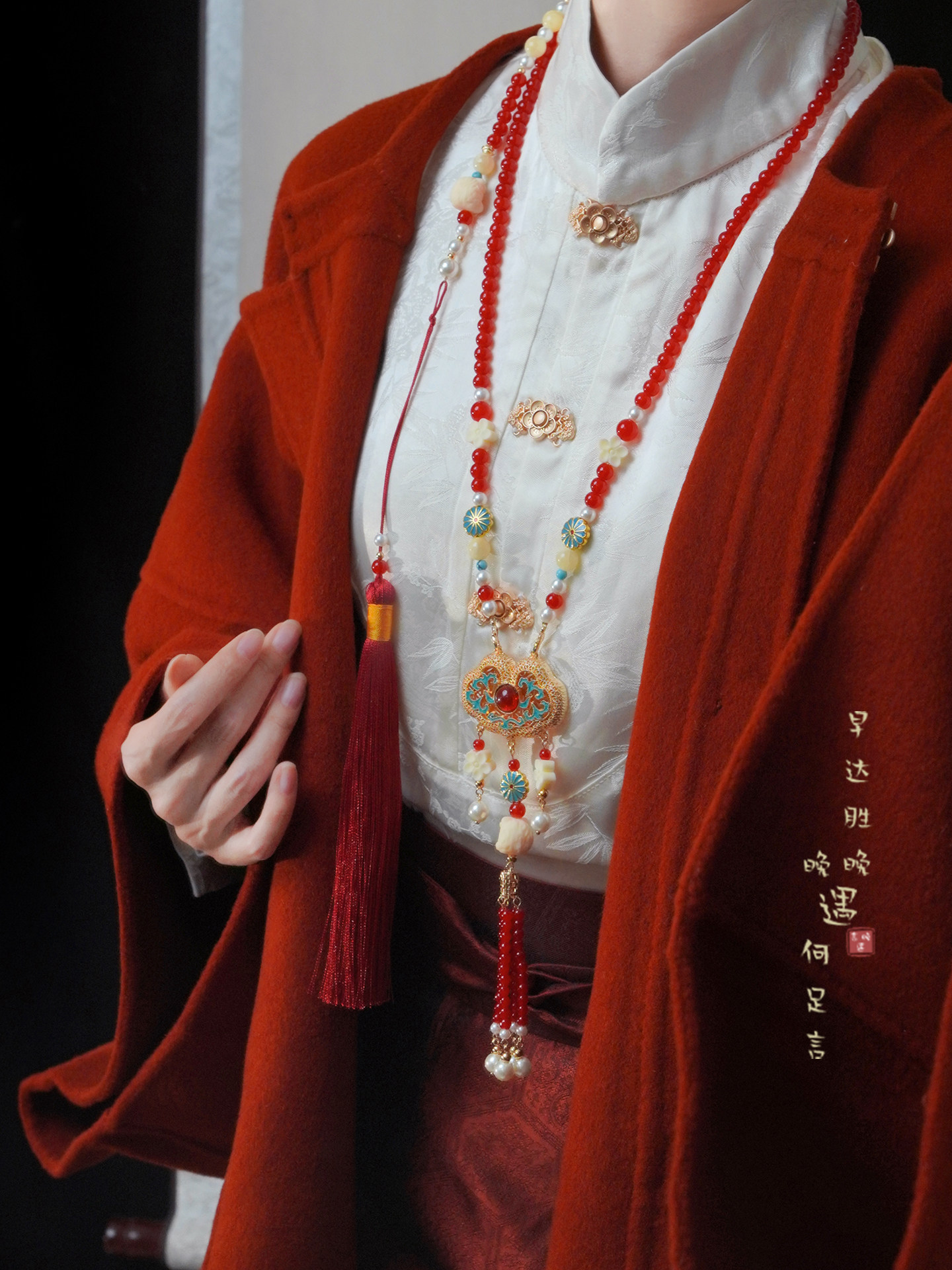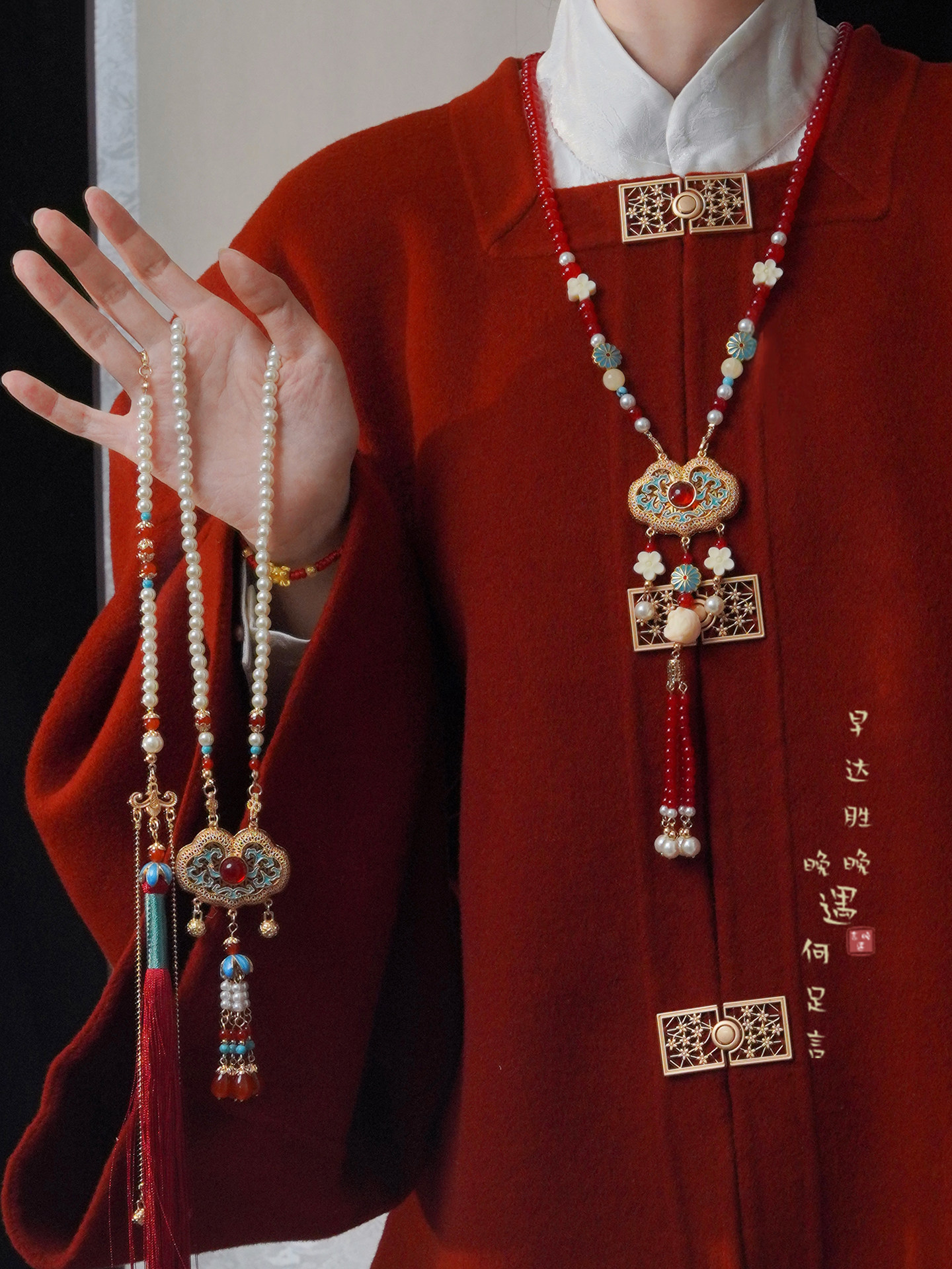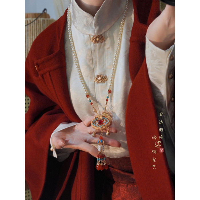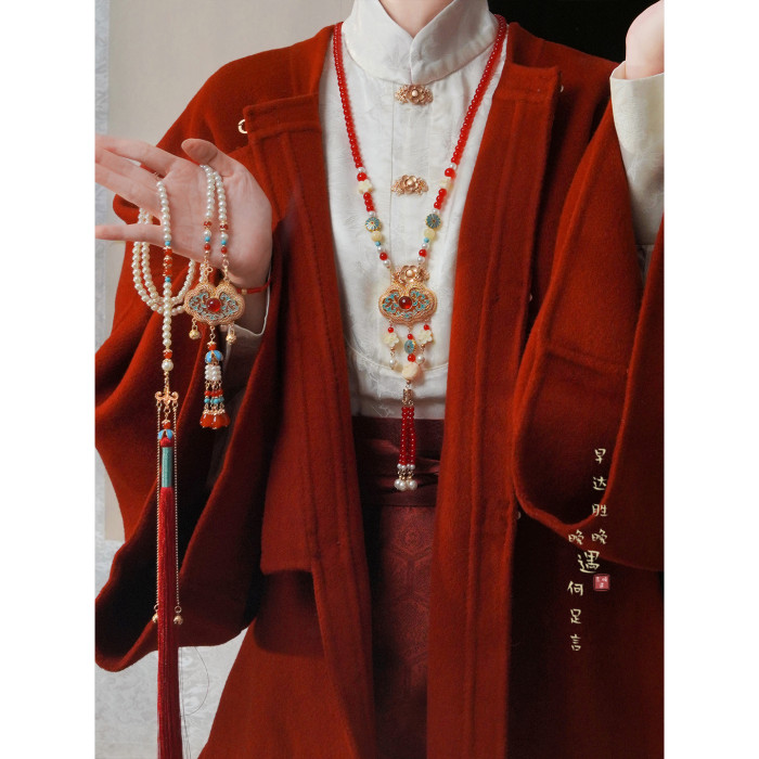 「情長久」新中式紅色瓔珞背雲國風串珠流蘇項鍊女漢服馬面裙配飾