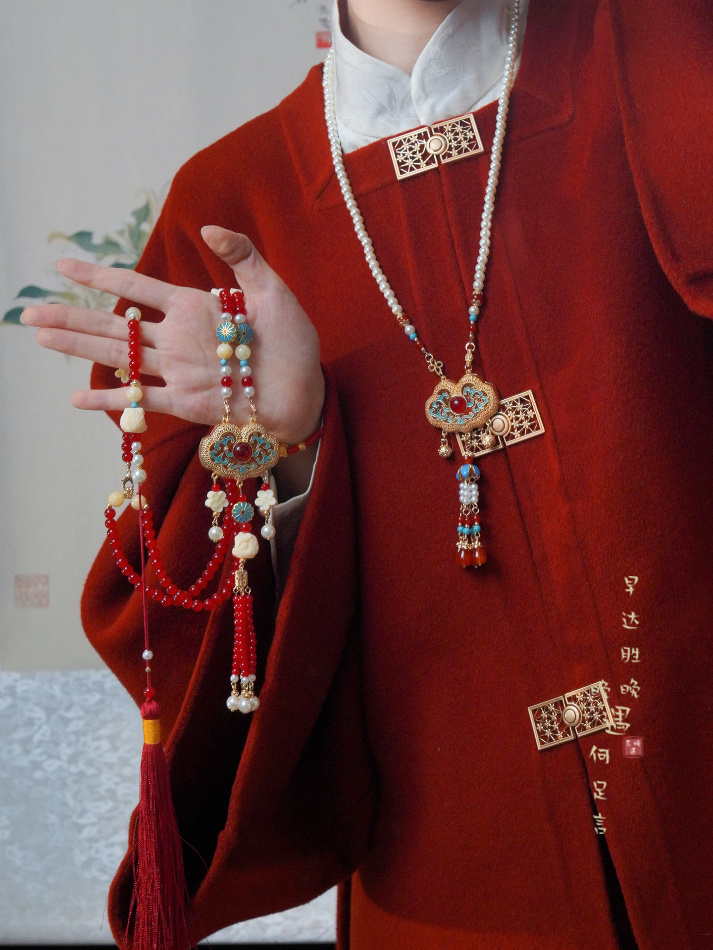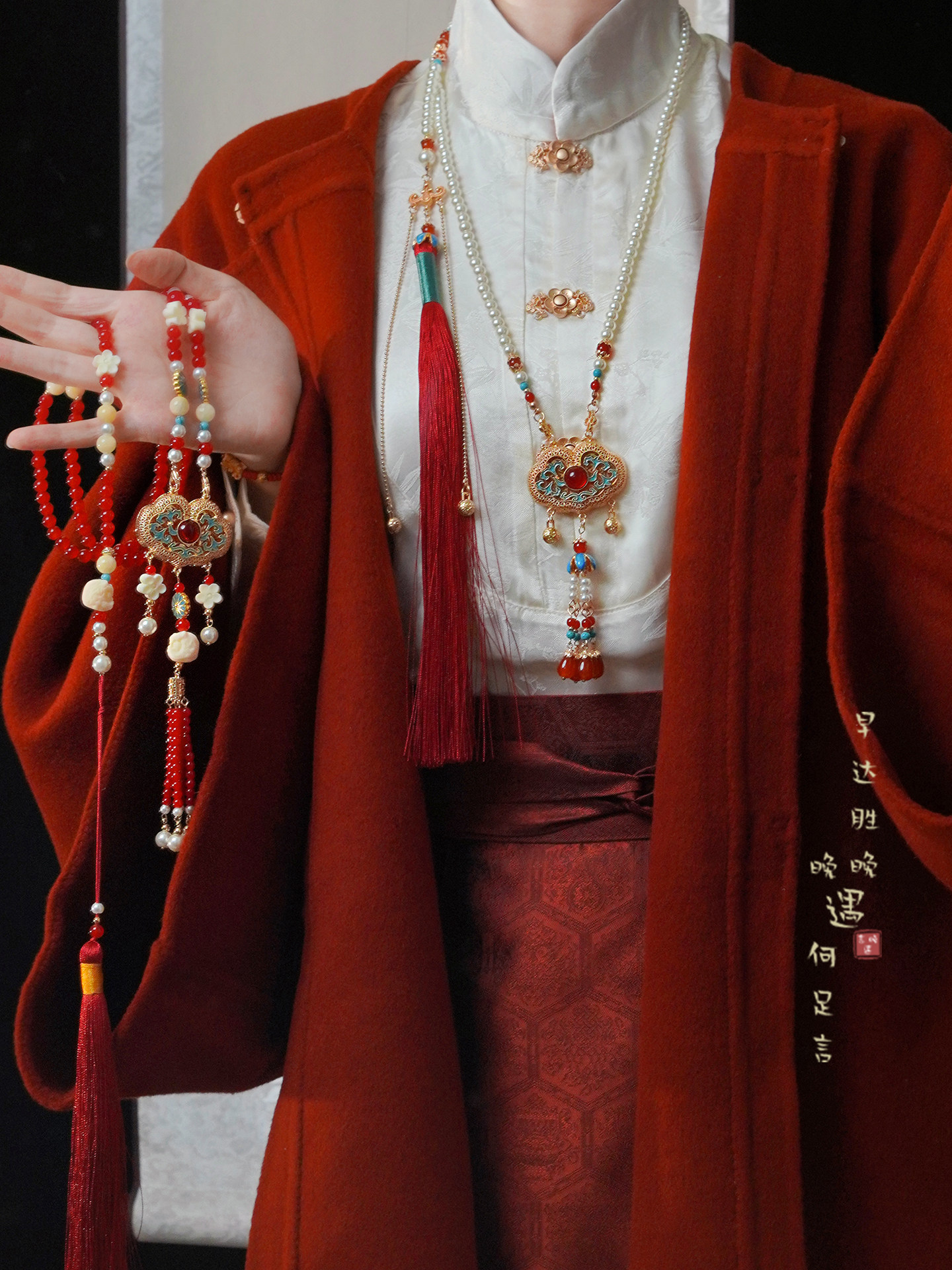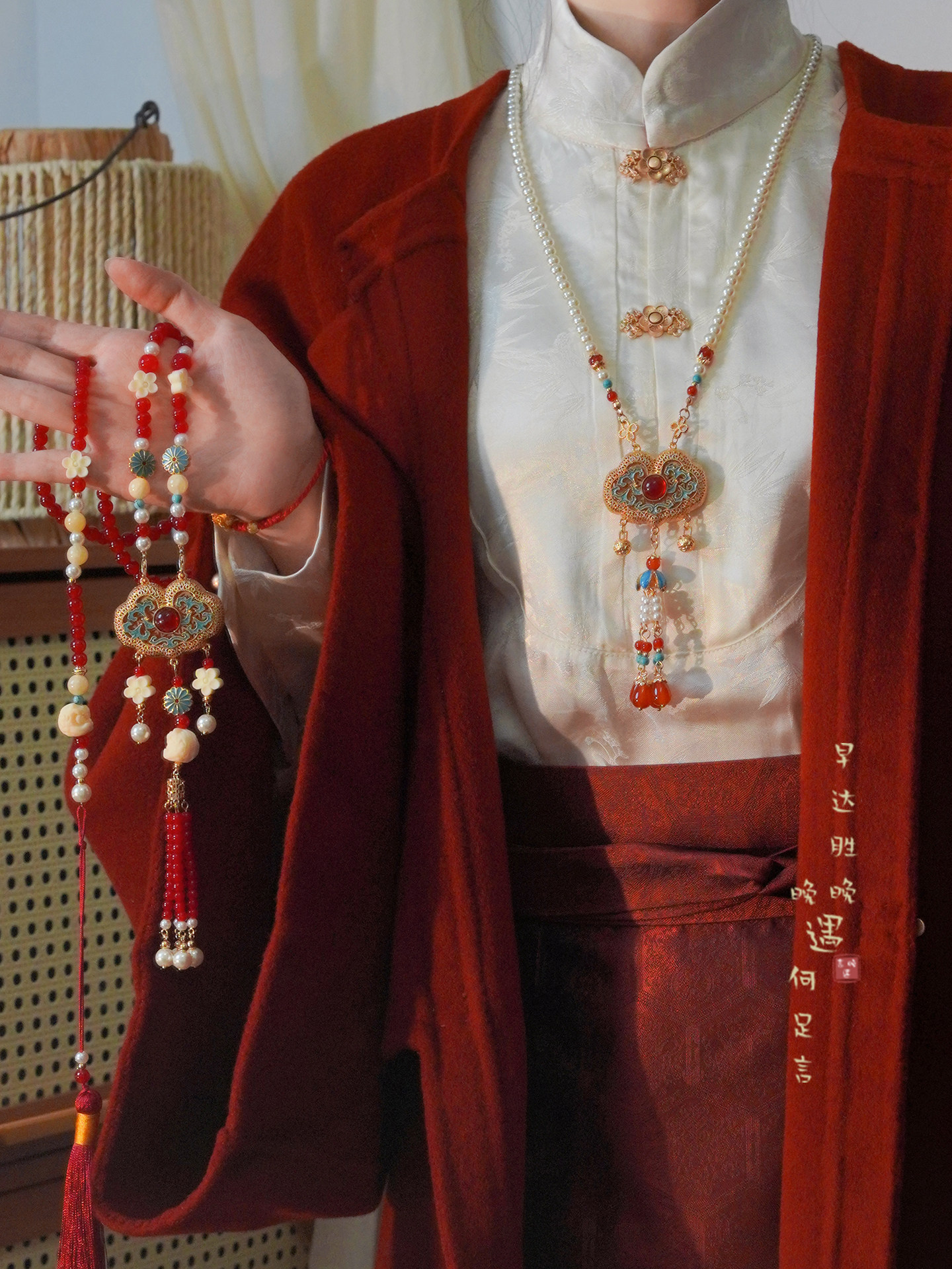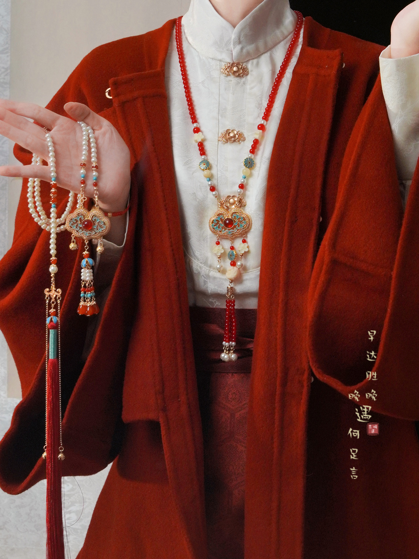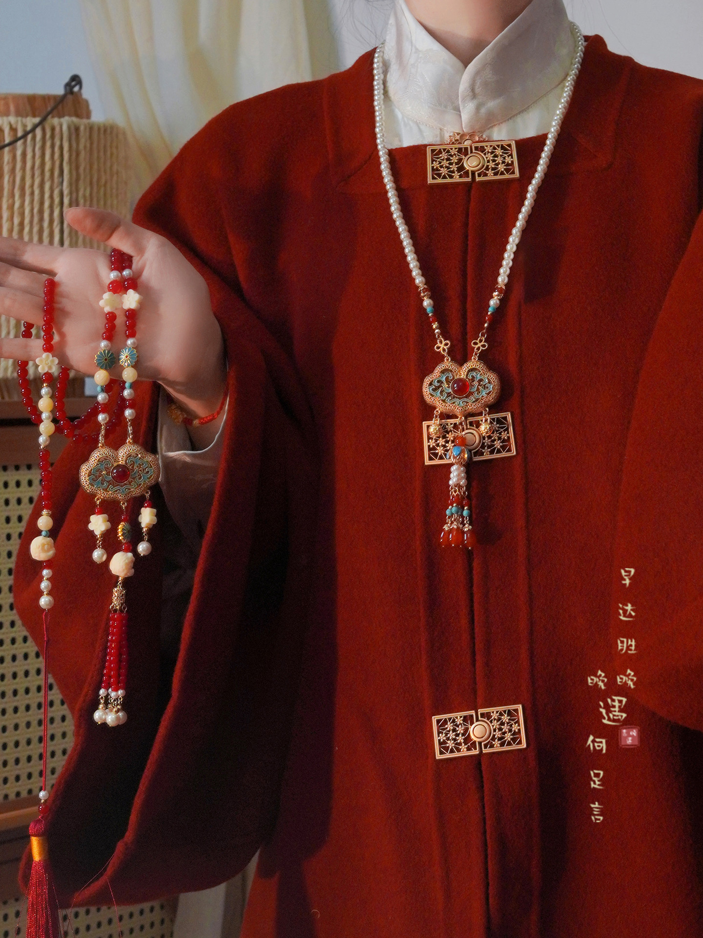 「情長久」新中式紅色瓔珞背雲國風串珠流蘇項鍊女漢服馬面裙配飾