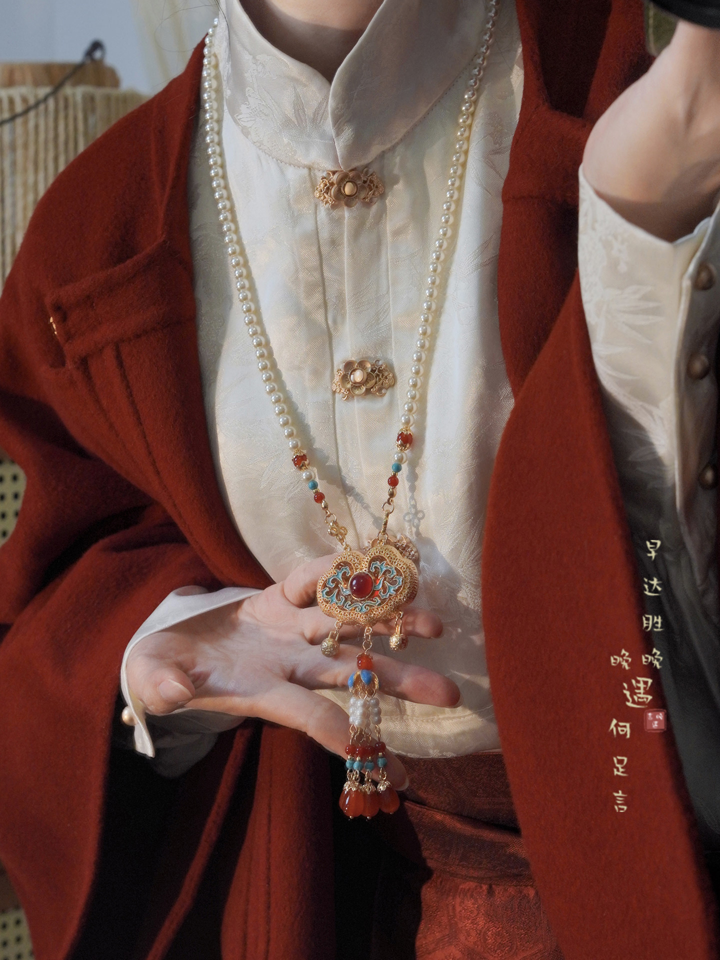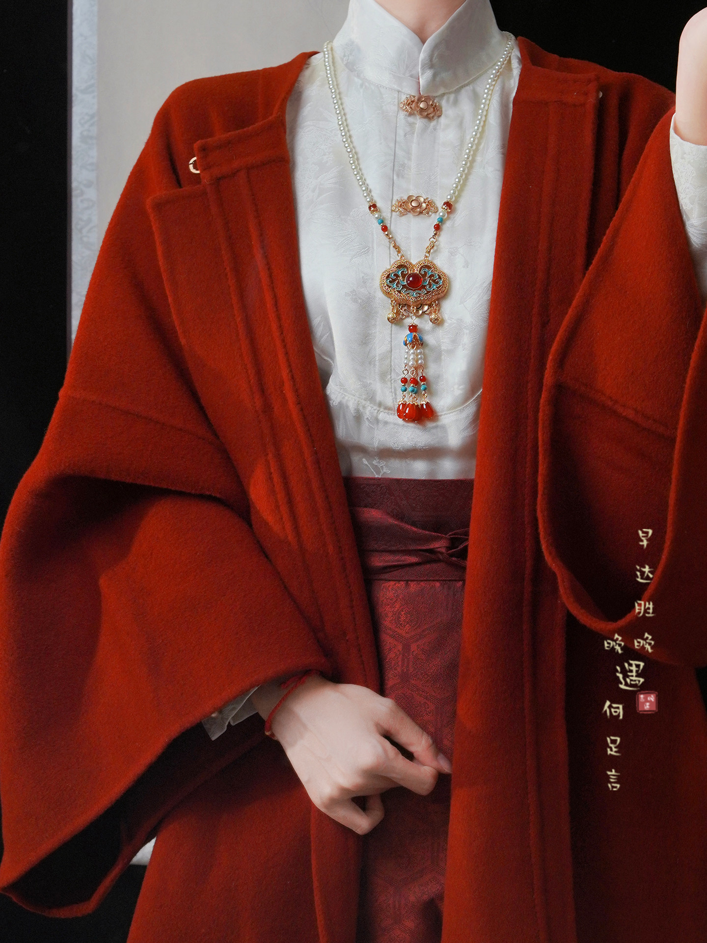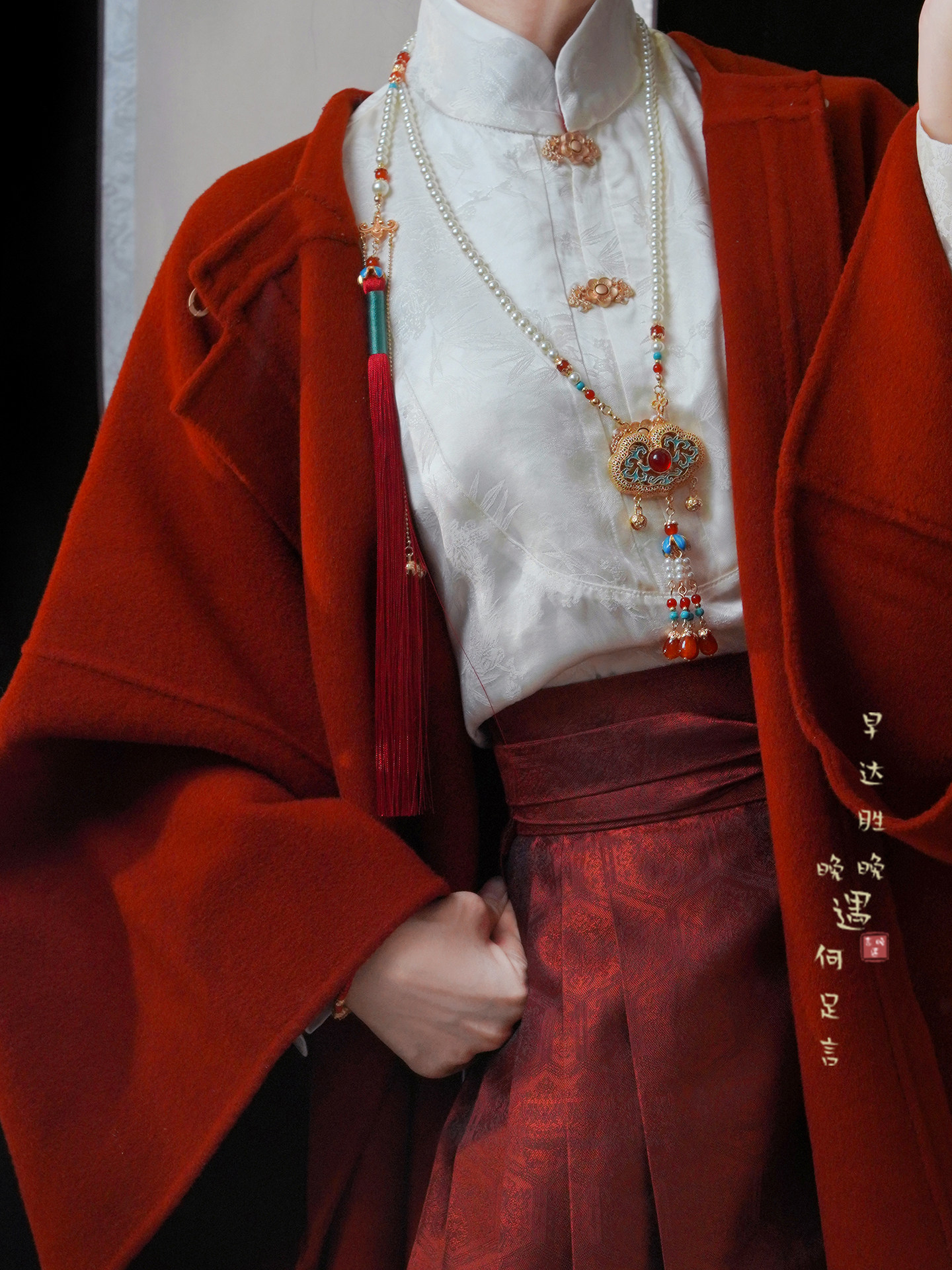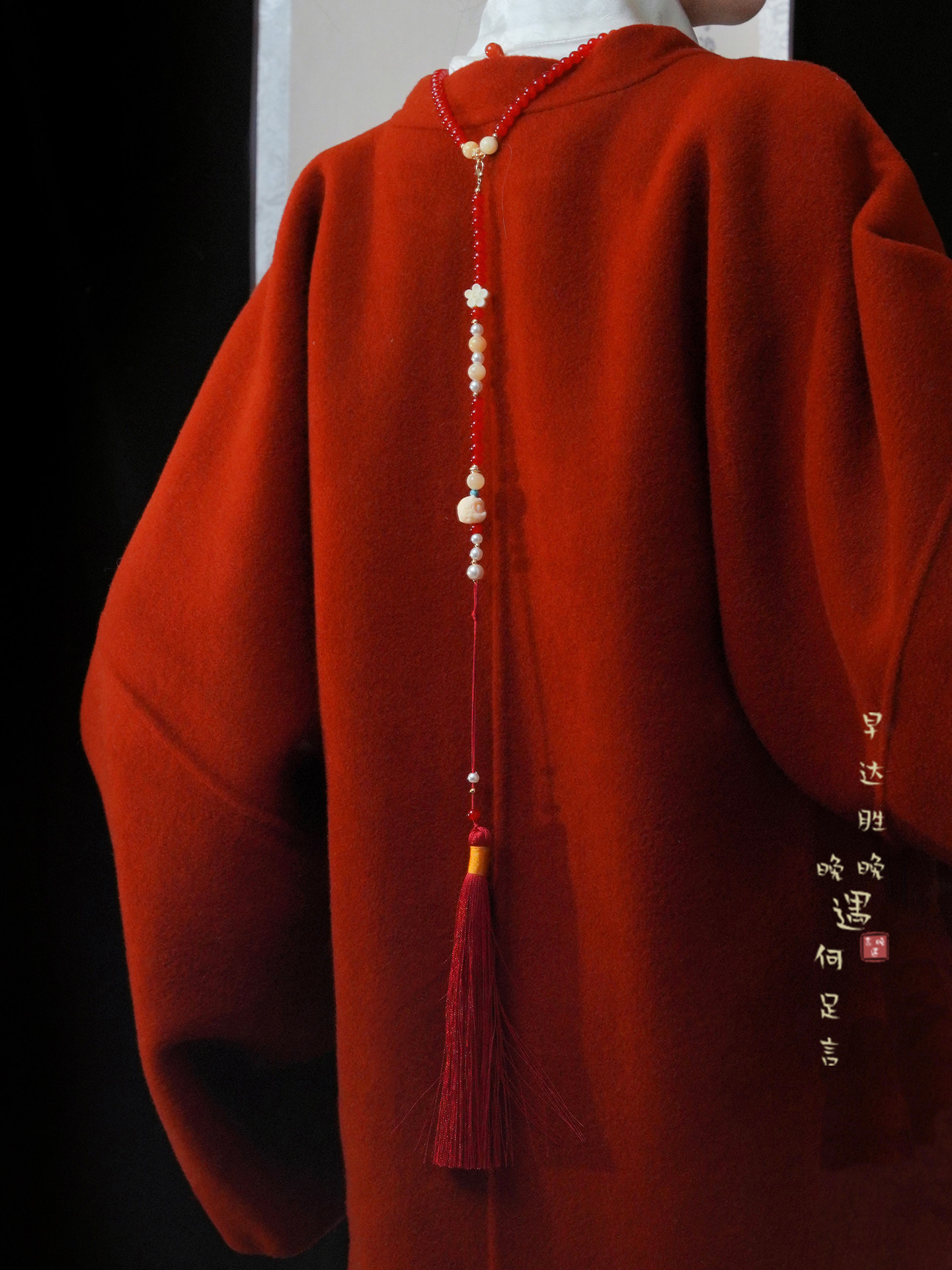 「情長久」新中式紅色瓔珞背雲國風串珠流蘇項鍊女漢服馬面裙配飾