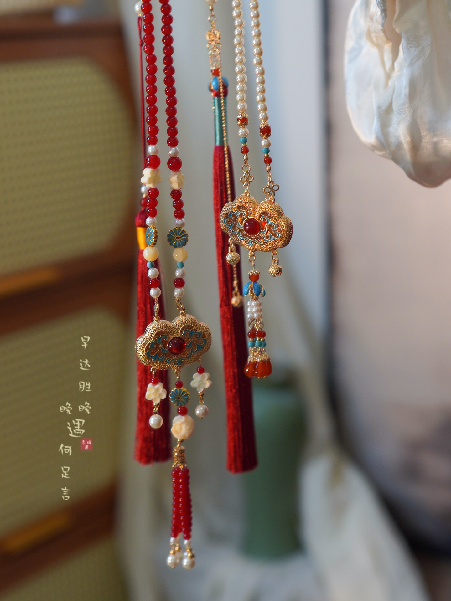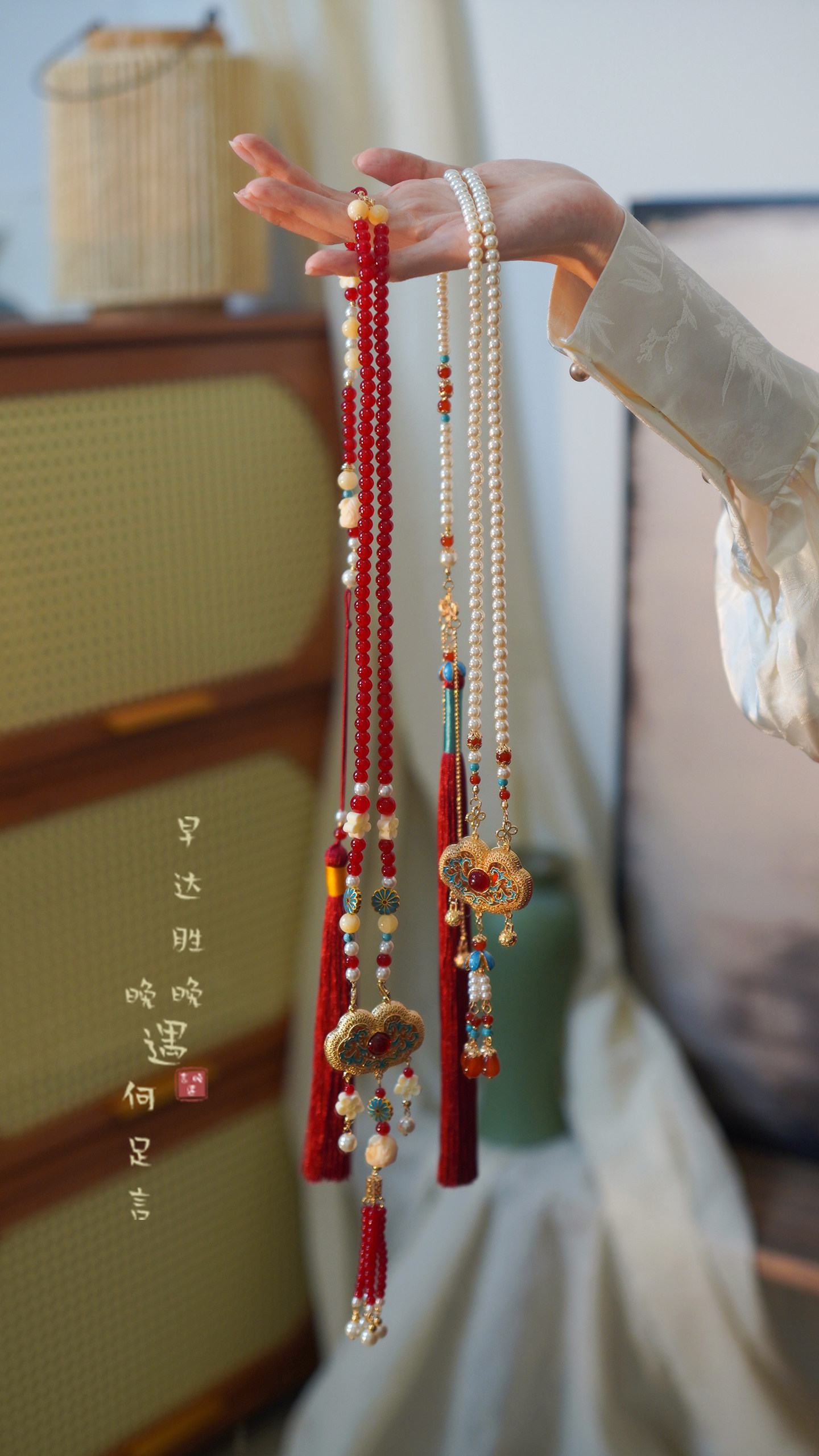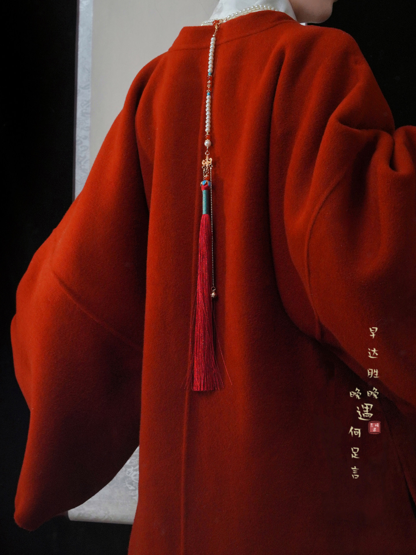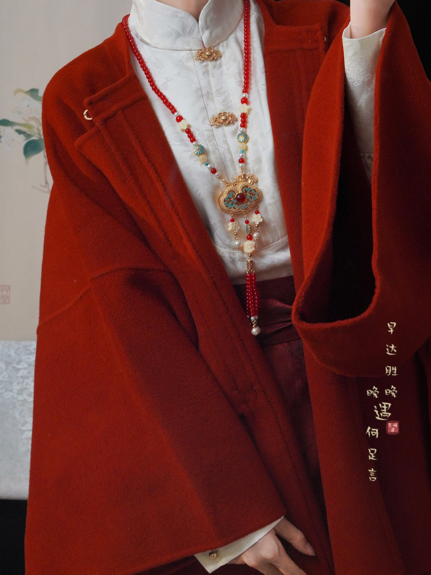 「情長久」新中式紅色瓔珞背雲國風串珠流蘇項鍊女漢服馬面裙配飾